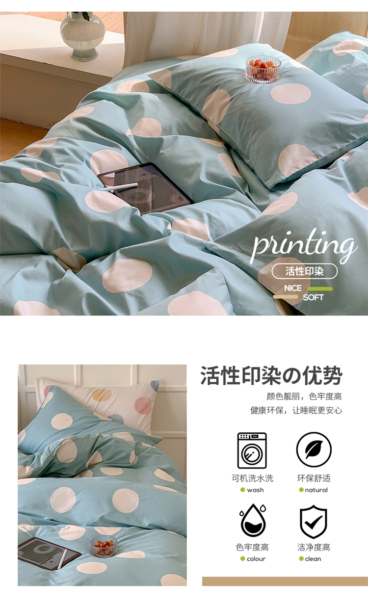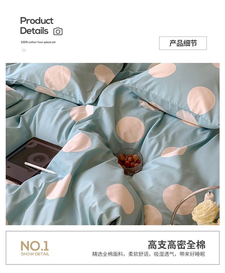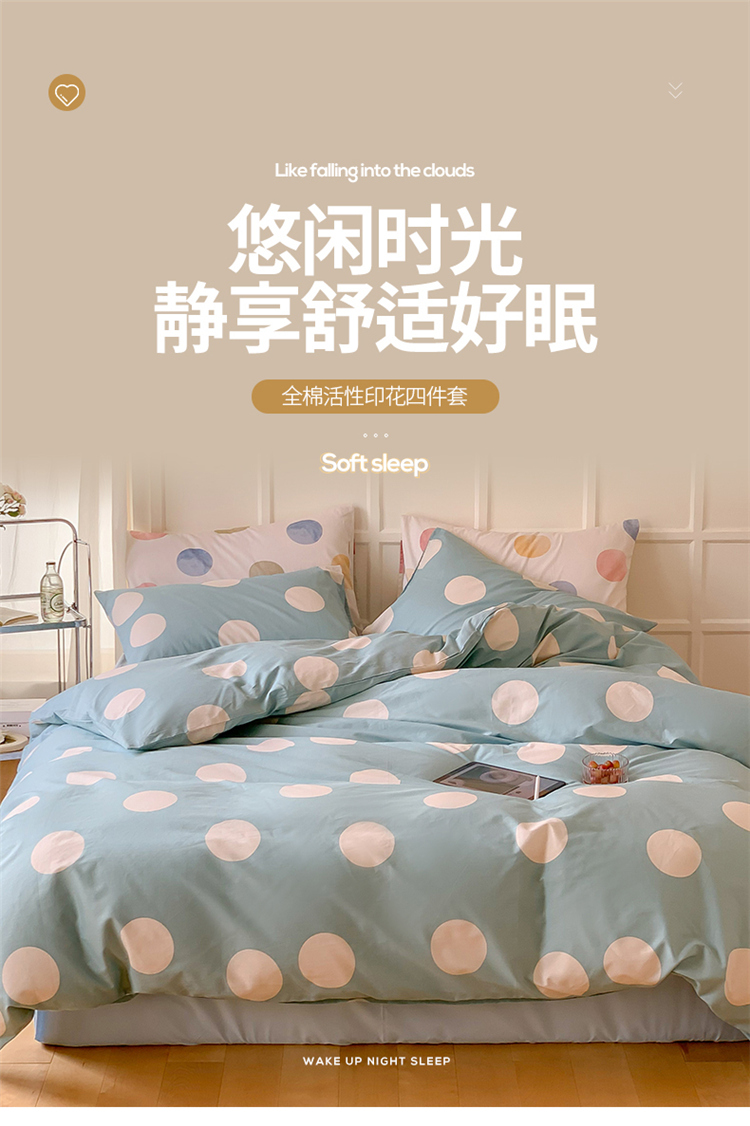 商品名称:窝米2023新款13370全棉四件套卡通简约款 拉卡蓝