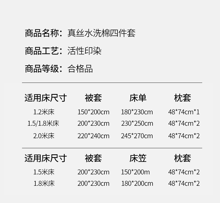 1.8m床笠四件套被套2x2.3m