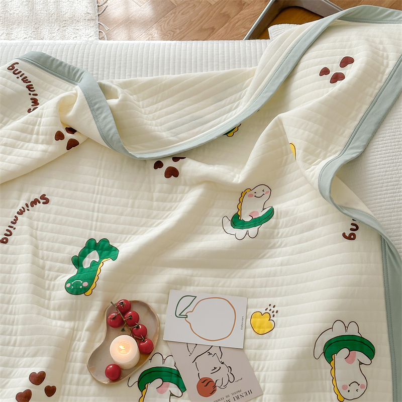爱丽丝 A类针织莫代尔超柔空气凉感卡通夏被 萌萌小恐龙(绿)