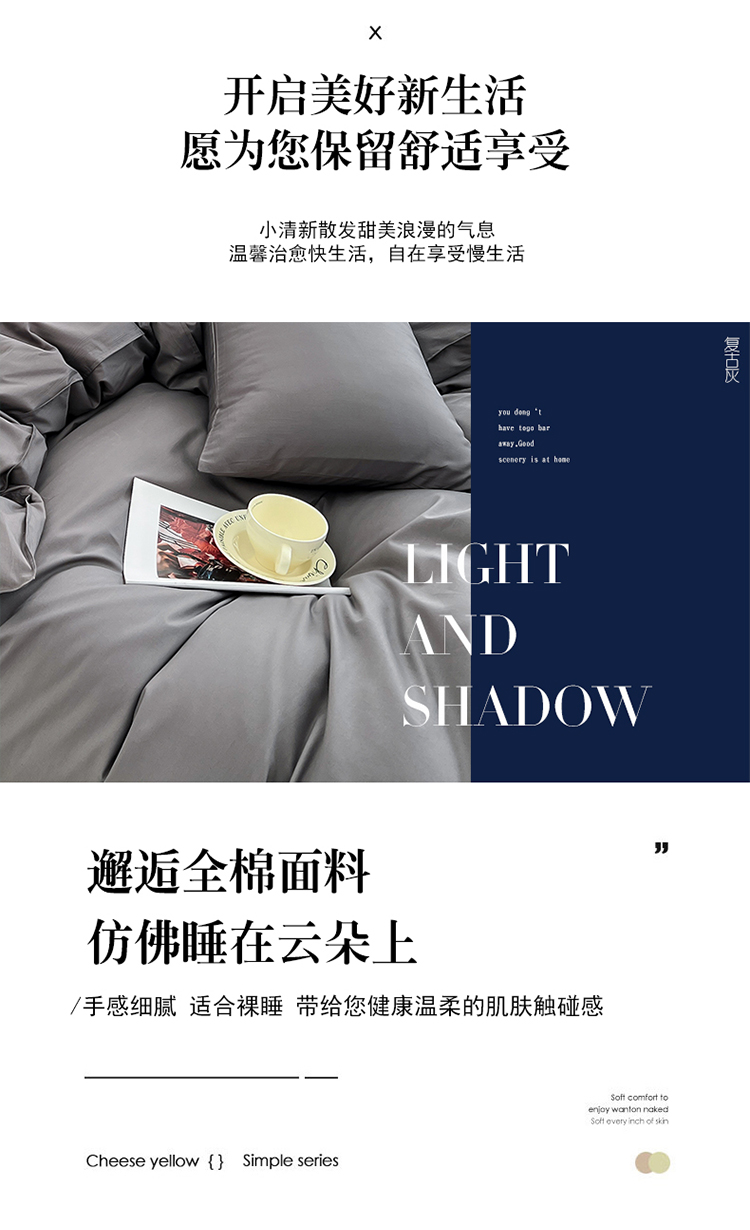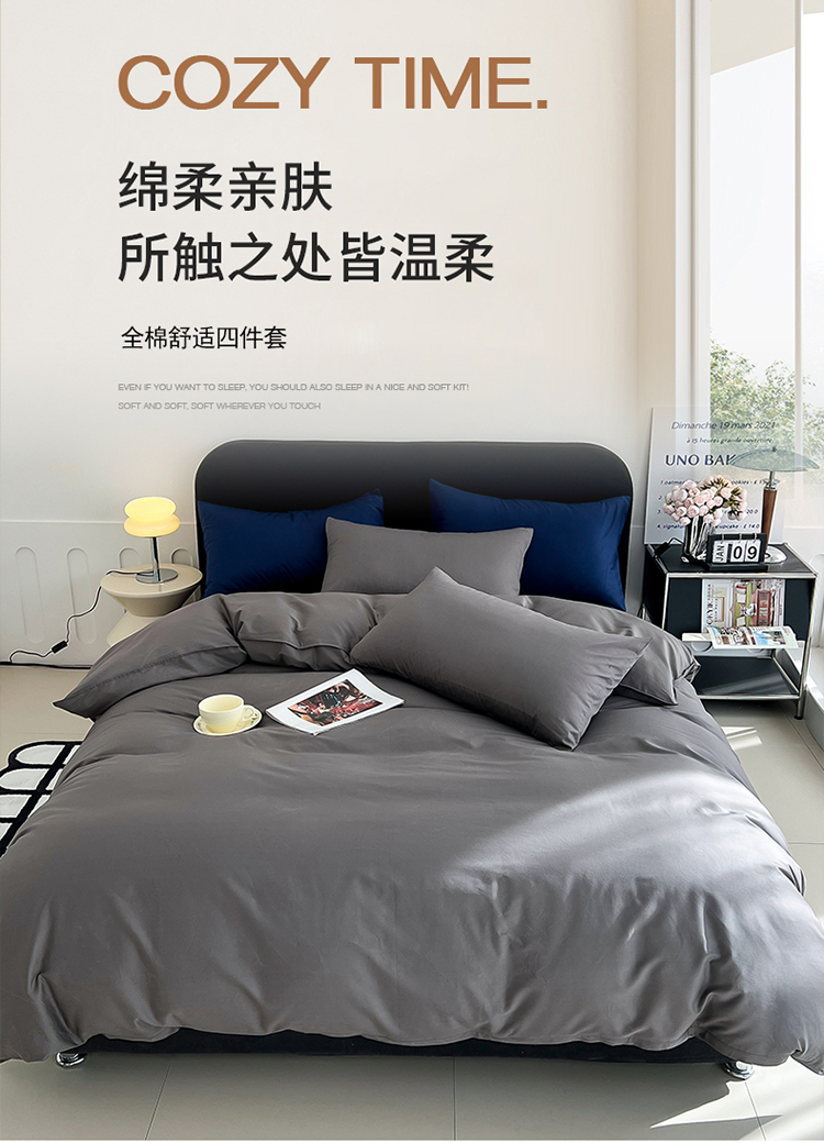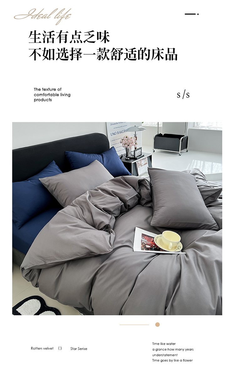 当前位置: 91家纺网 > 商品网购 > 床品套件 > 四件套 > 全棉普通四件套 > 恩和 2024新款全棉13374全棉ins纯色拼色四件套 复古灰