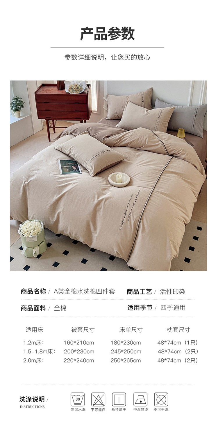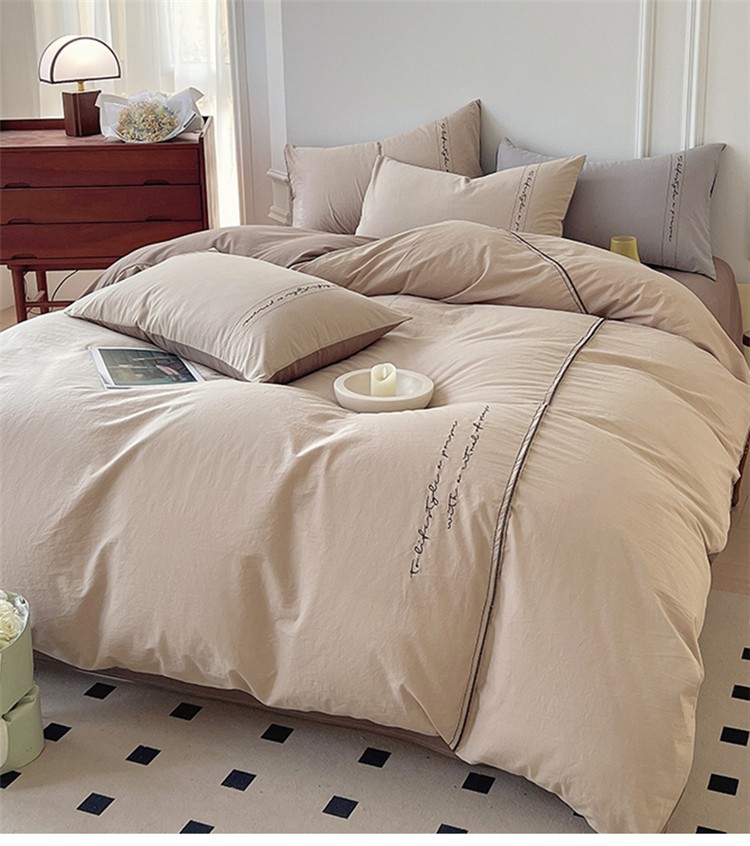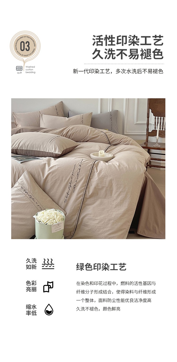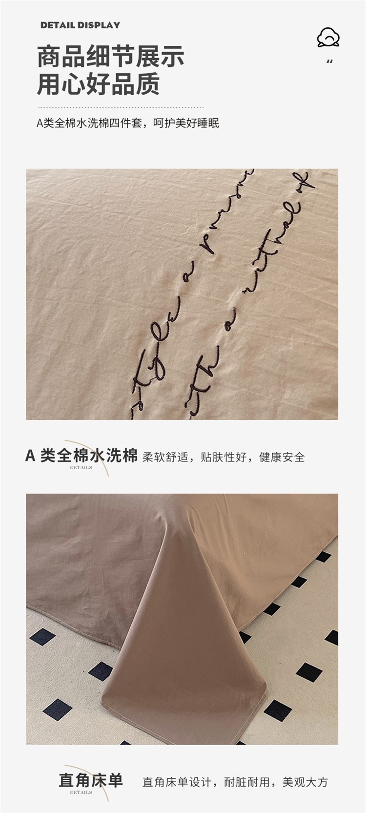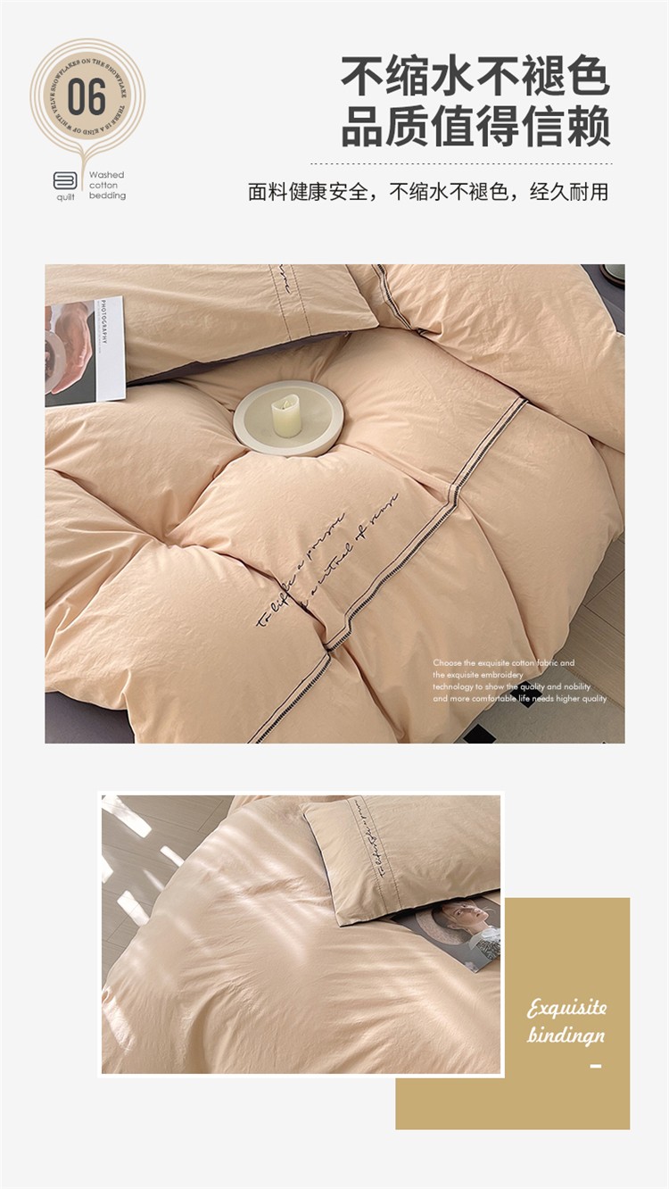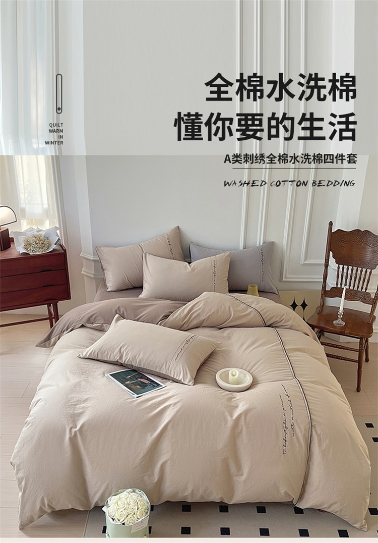 (总)拼社家纺 2025新款母婴及全棉水洗棉刺绣四件套纯棉床上用品,艾玛绿+卡其,繁星蓝+卡其,繁星蓝+玫瑰粉,红豆沙+雅灰,迷雾灰+玫瑰粉,蜜粉+雅灰,奶油白+卡其,奶油白+香橙,牛仔蓝+浅蓝,香橙+雅灰