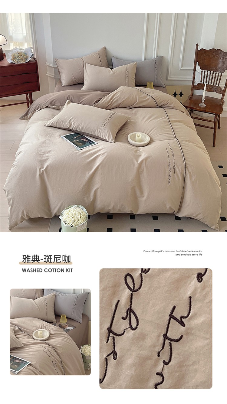 拼社 全棉水洗棉刺绣四件套纯棉床上用品 雅典-斑尼咖