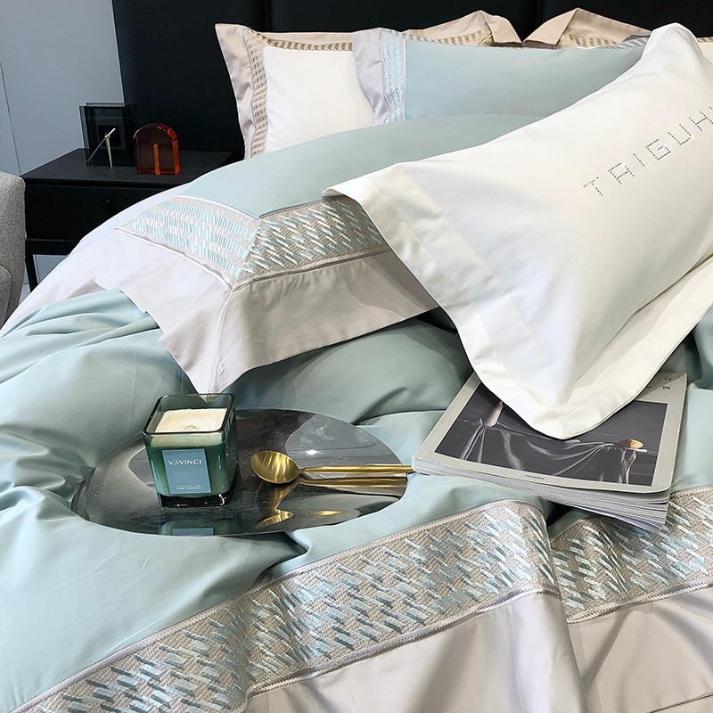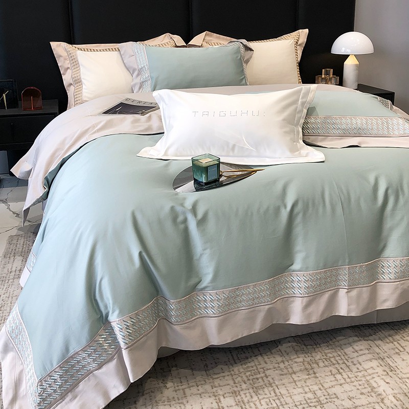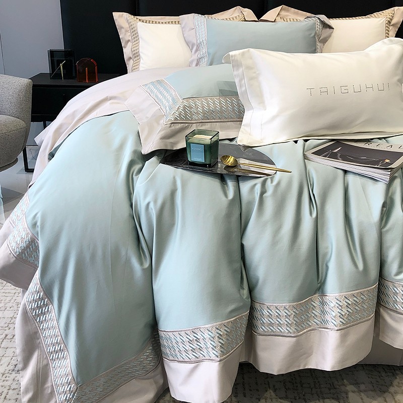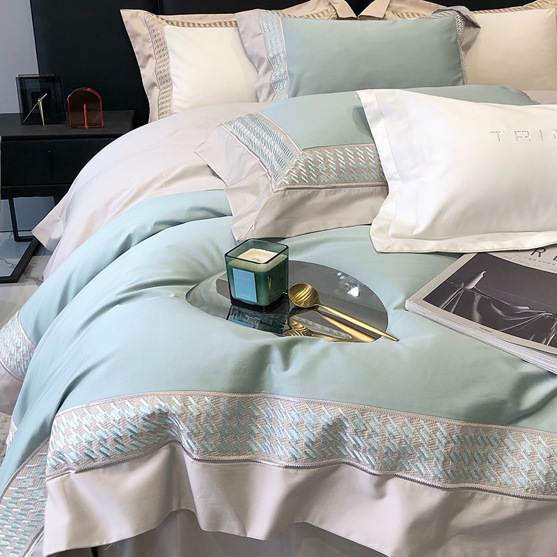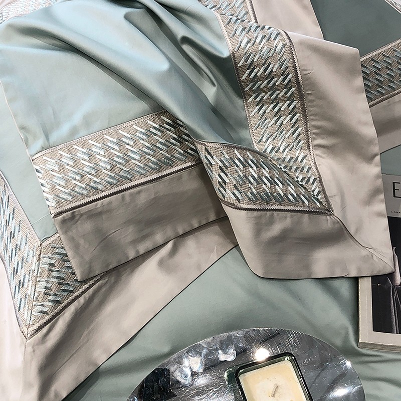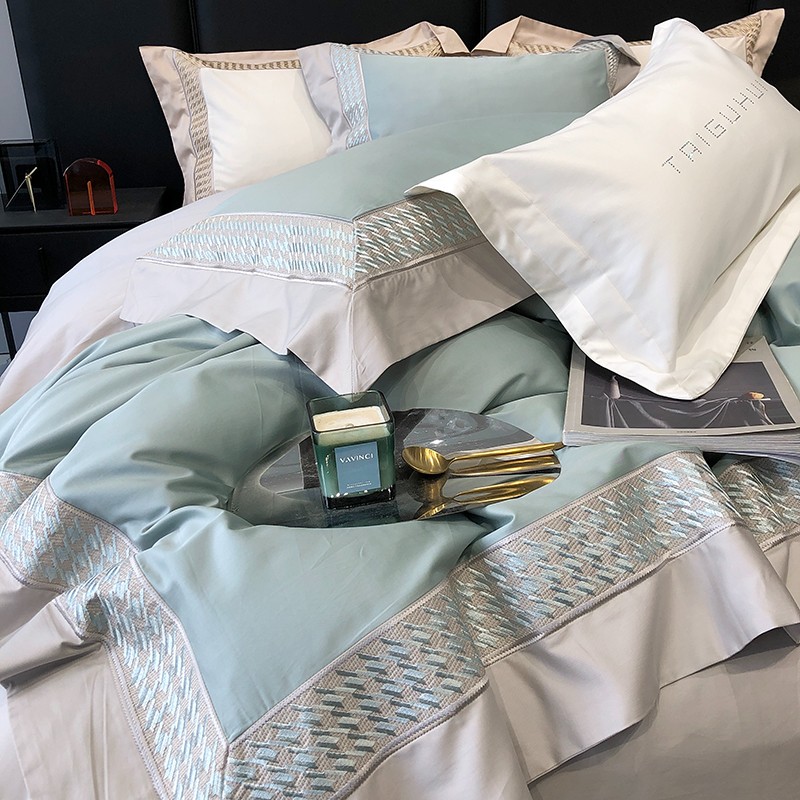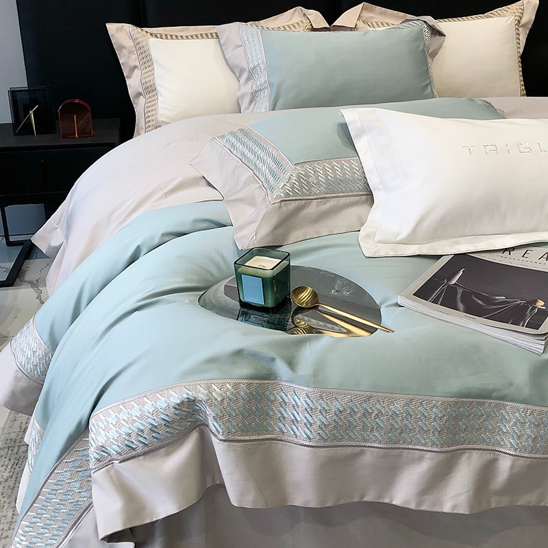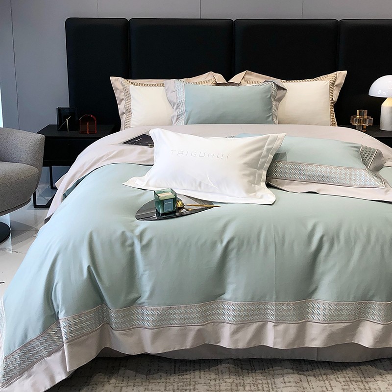 商品名称:太古汇 2023新款A类长绒棉刺绣千鸟格四件套-格伦格系列 长绒棉格伦格-绿色