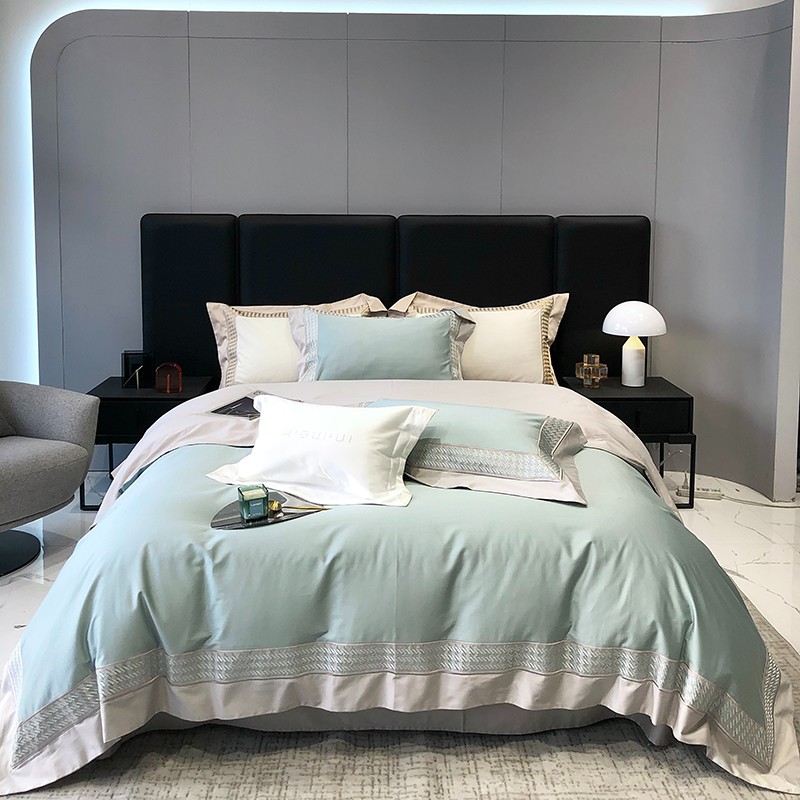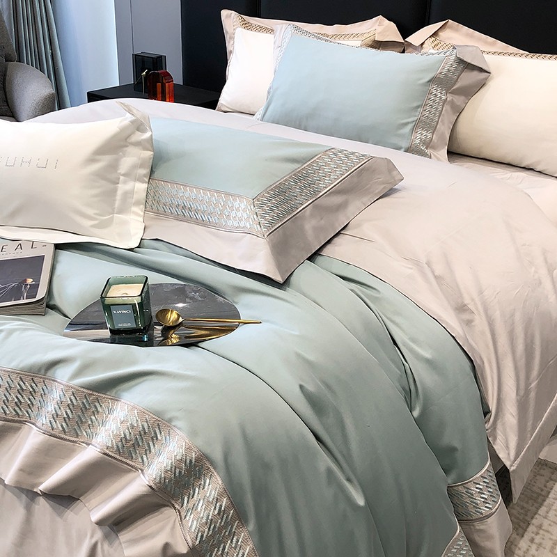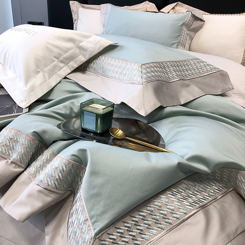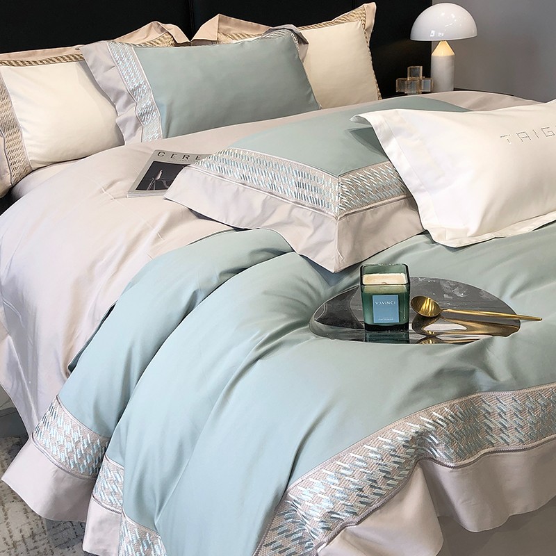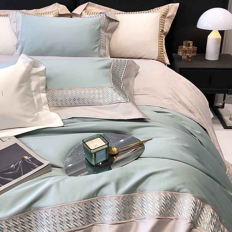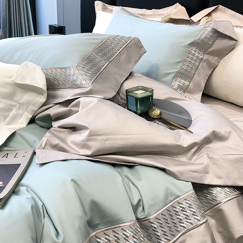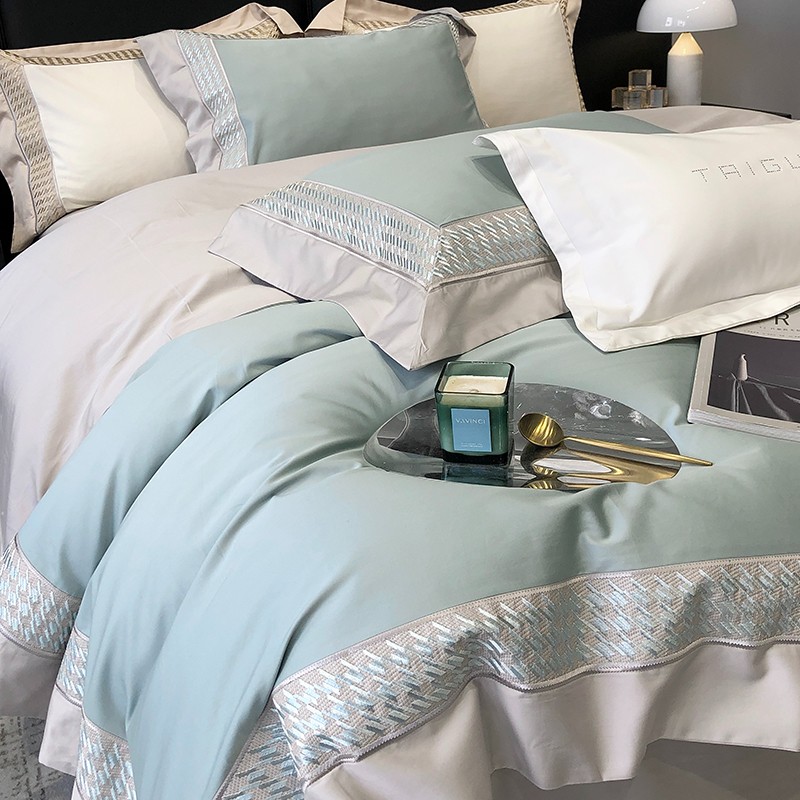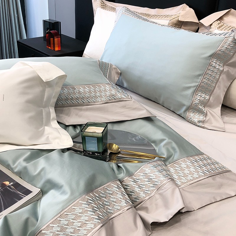 商品名称:太古汇 2023新款A类长绒棉刺绣千鸟格四件套-格伦格系列 长绒棉格伦格-绿色