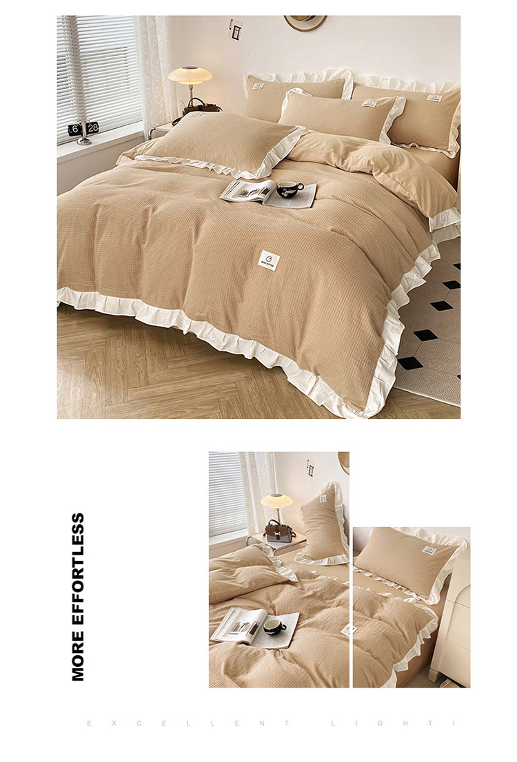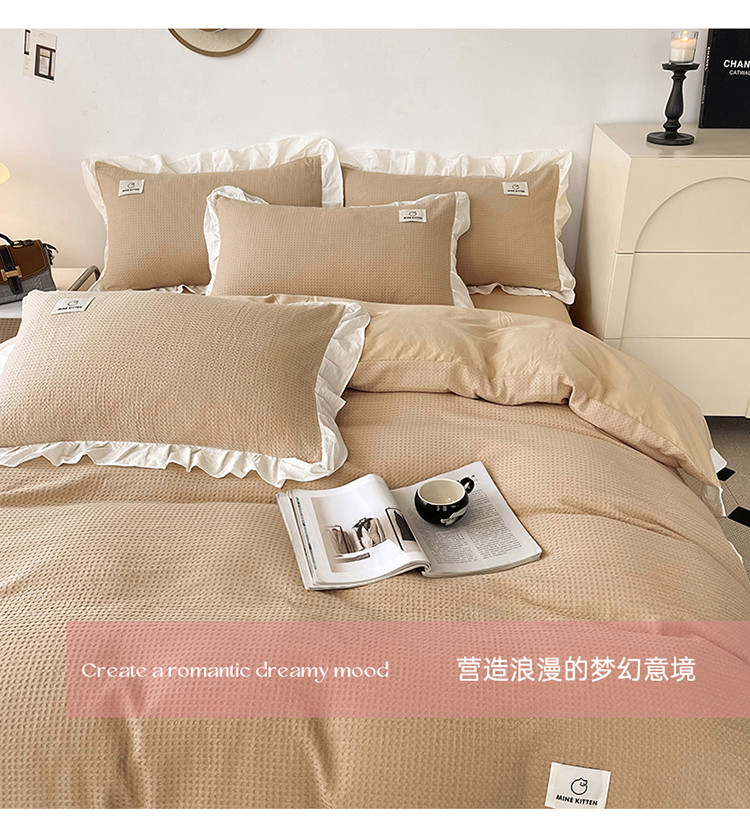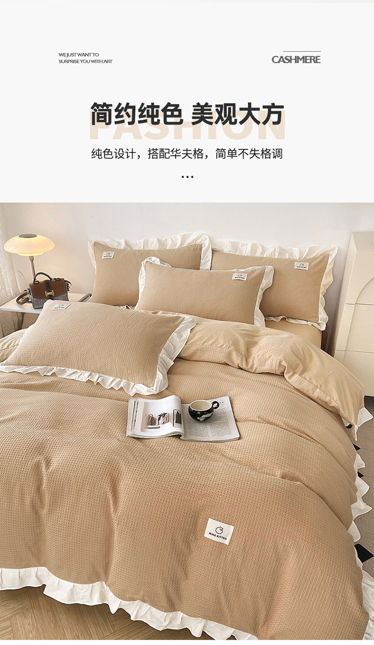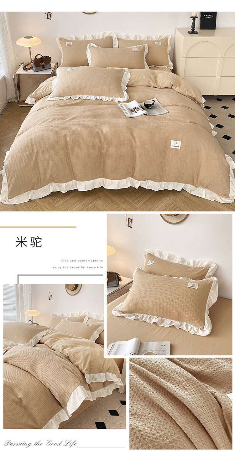 雅萱 2023新款华夫格四件套-花边款 米驼