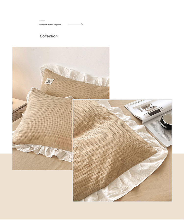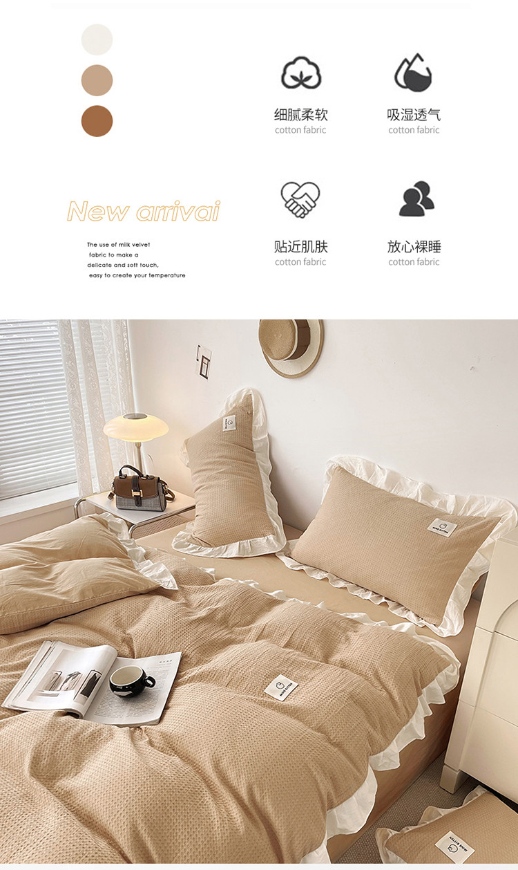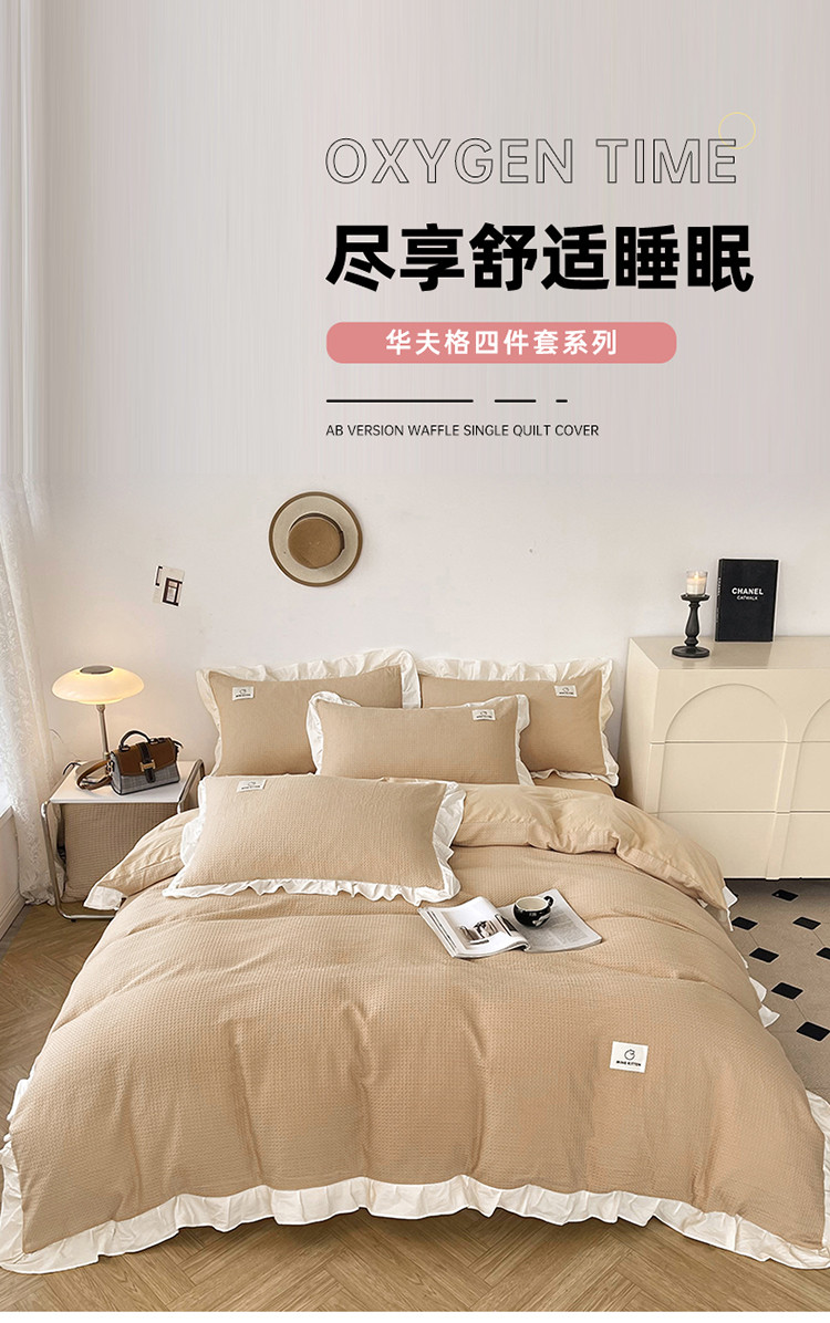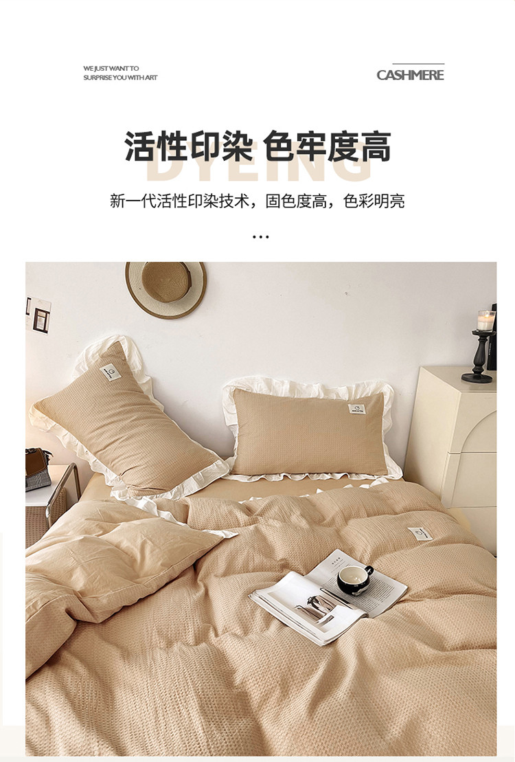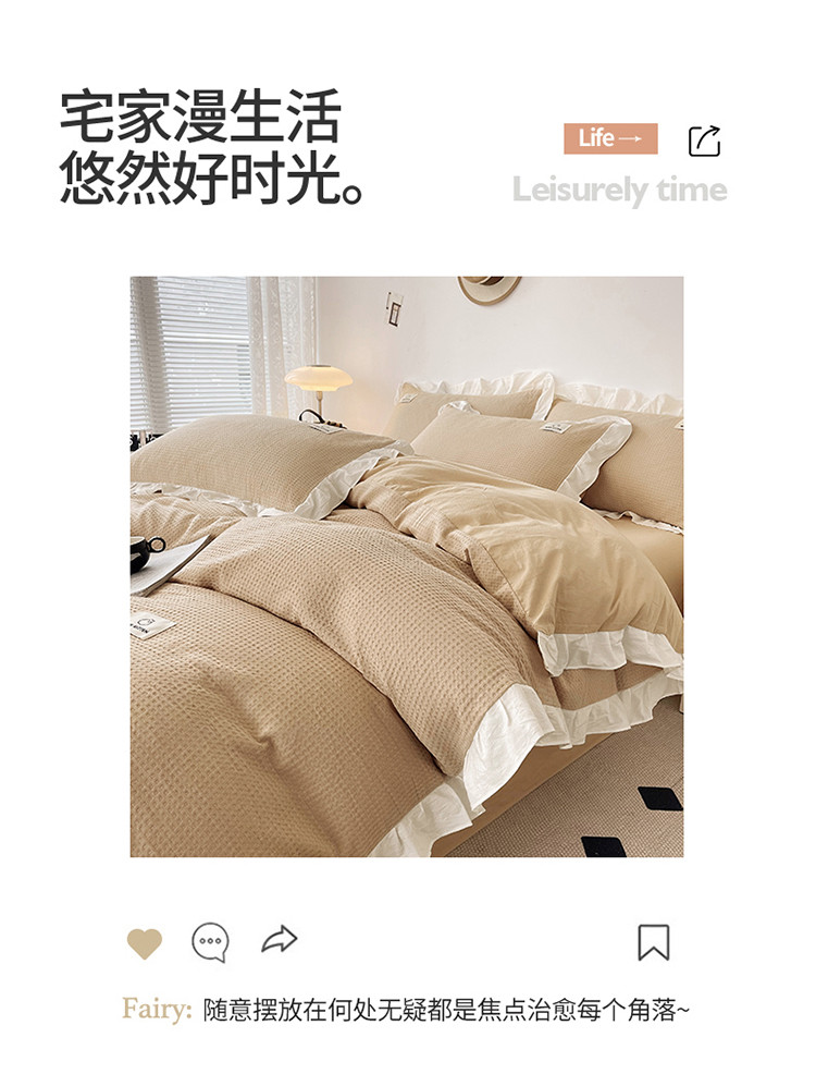 雅萱 2023新款华夫格四件套-花边款 米驼