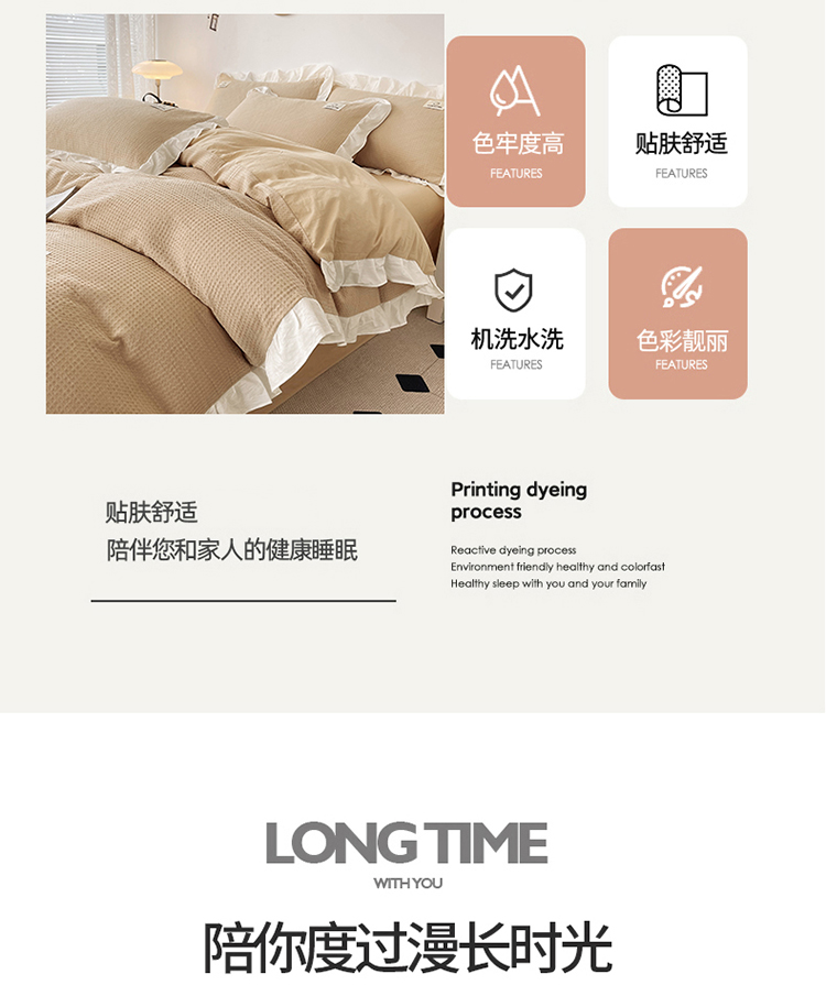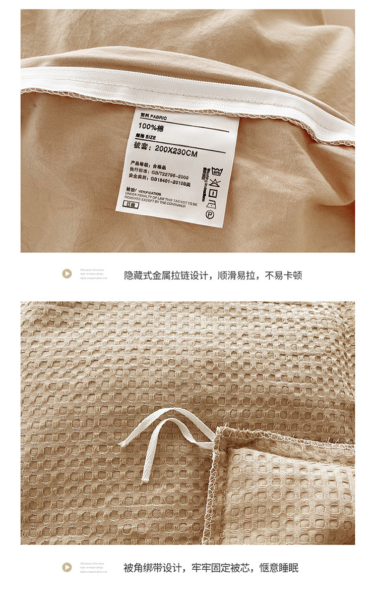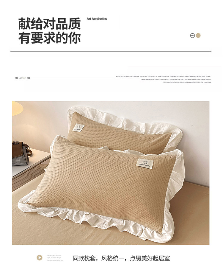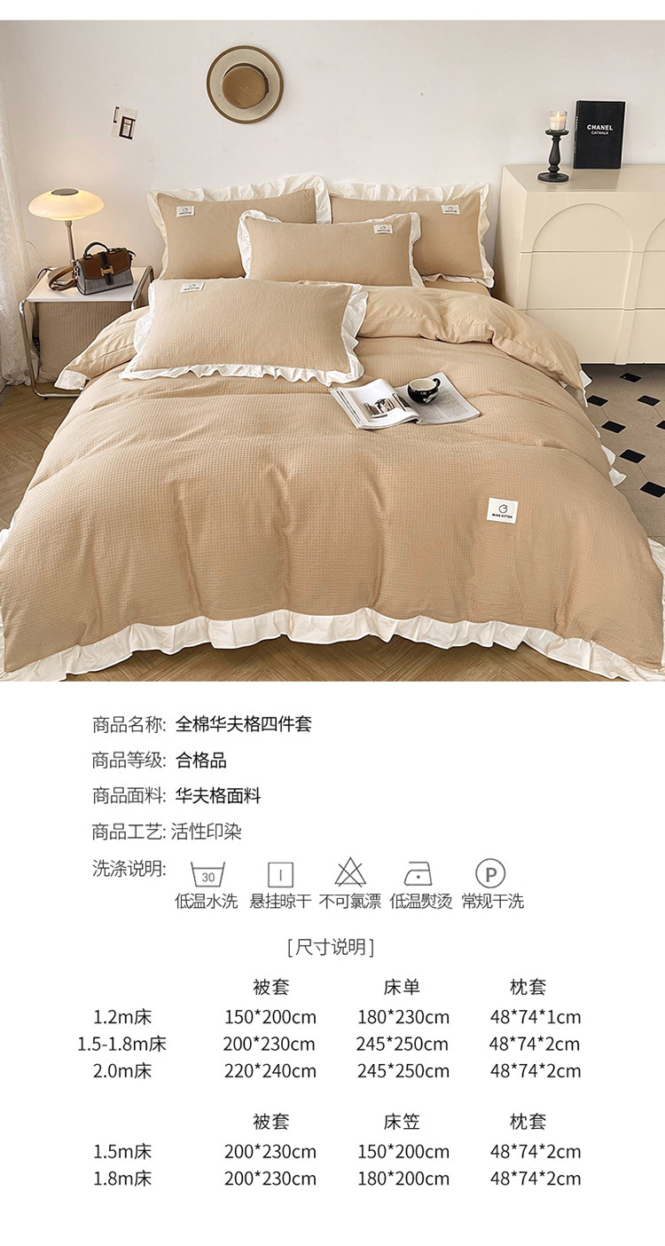 商品名称:雅萱 2023新款华夫格四件套-花边款 米驼