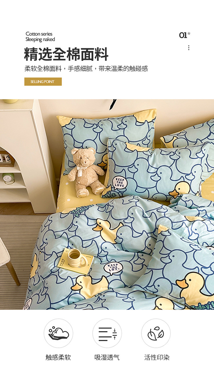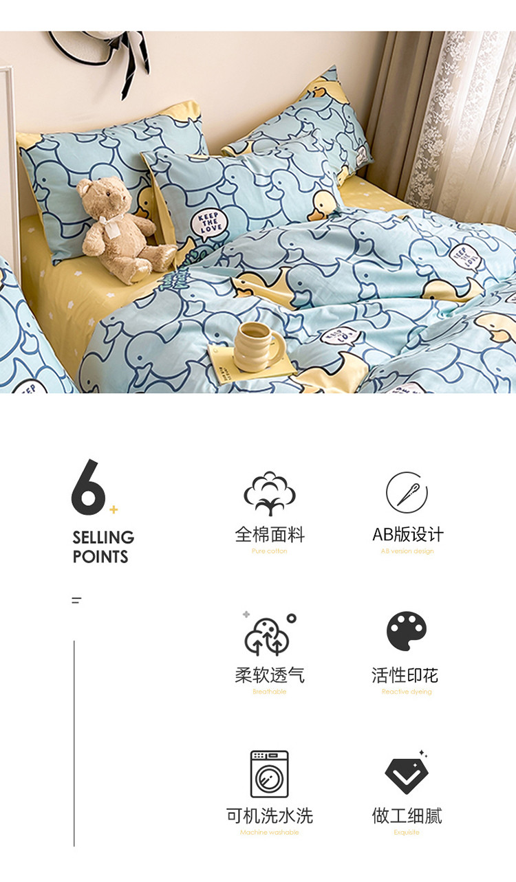 商品名称:惠居家 2023新款13372全棉小清新三件套四件套 嬉戏