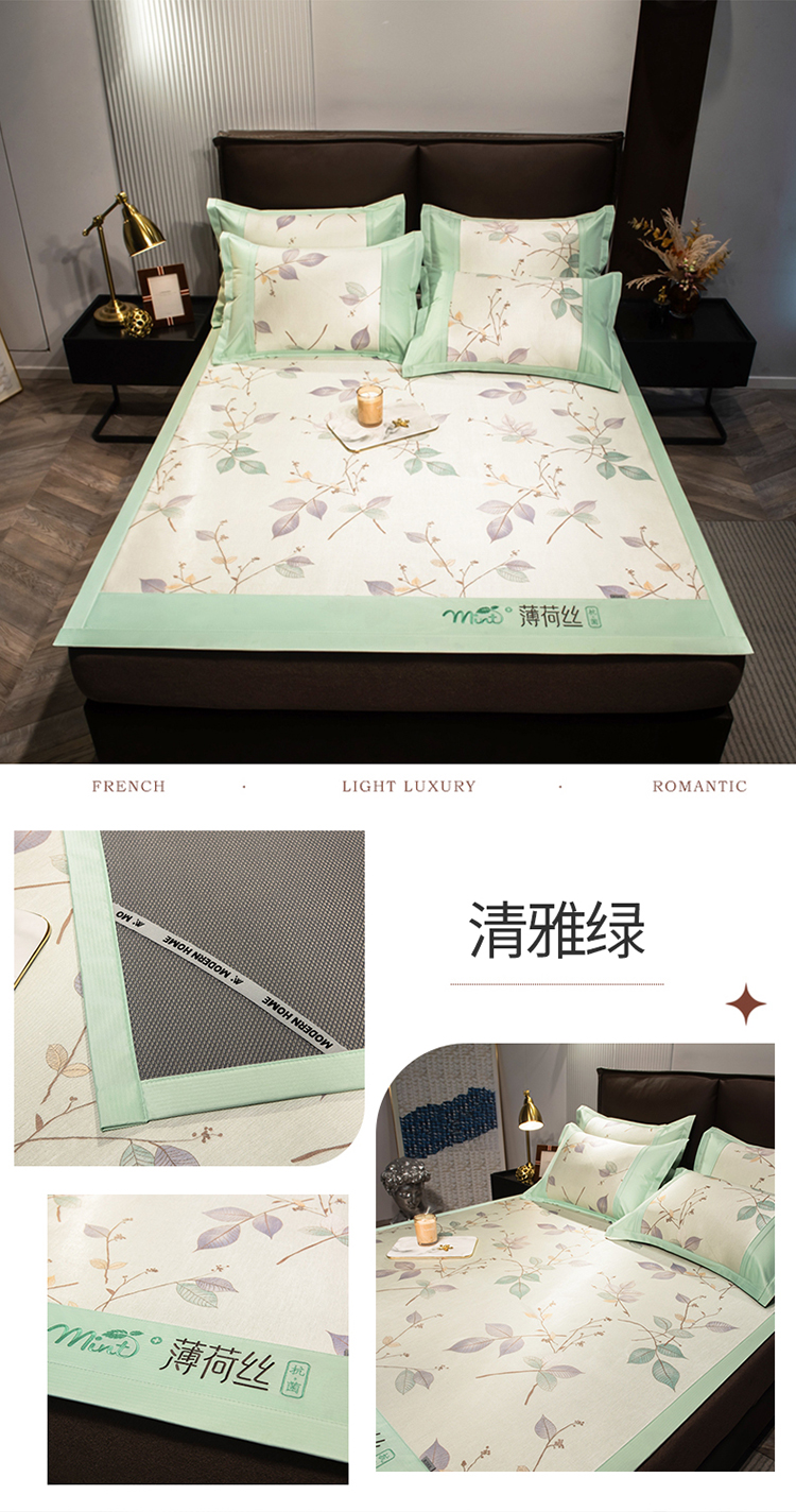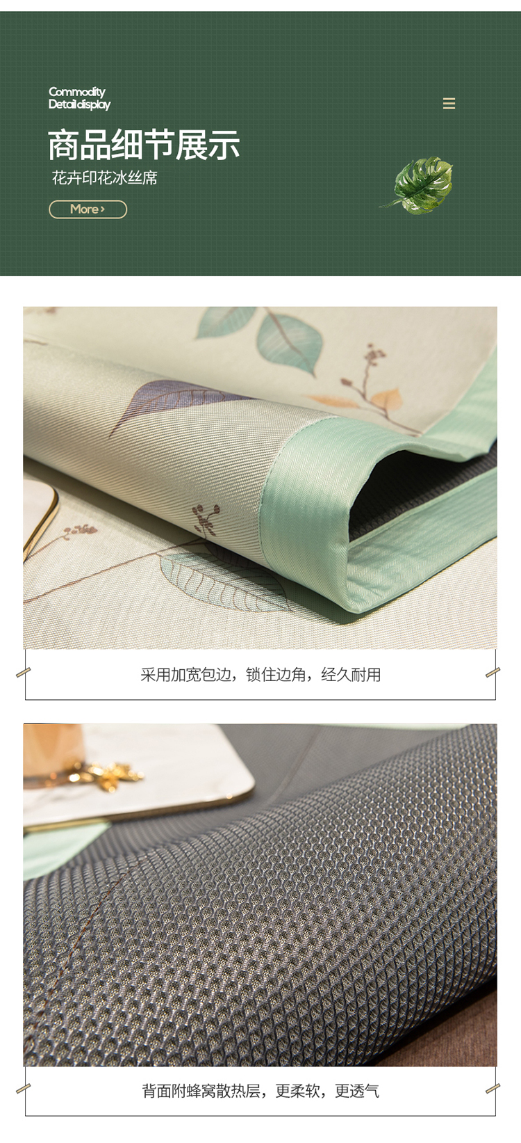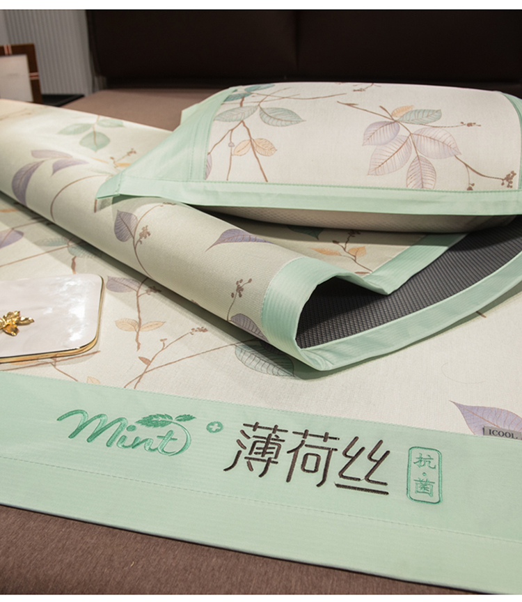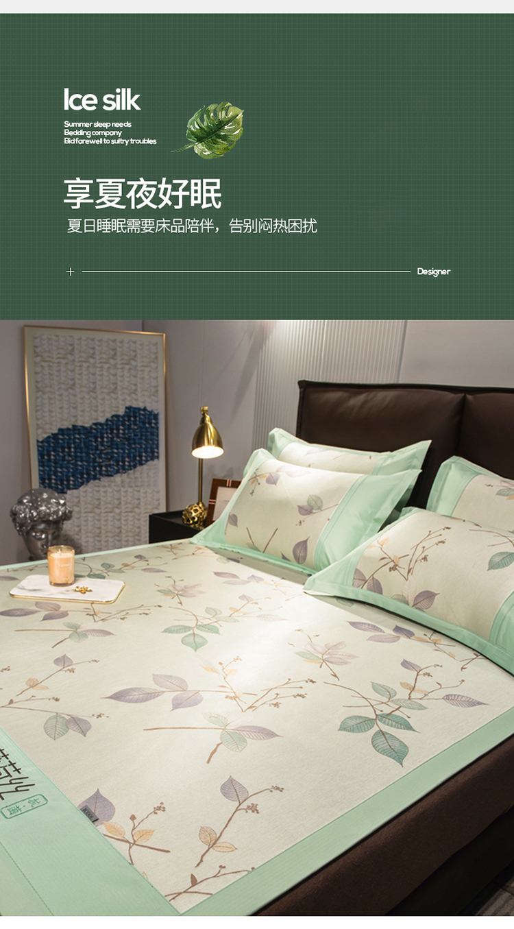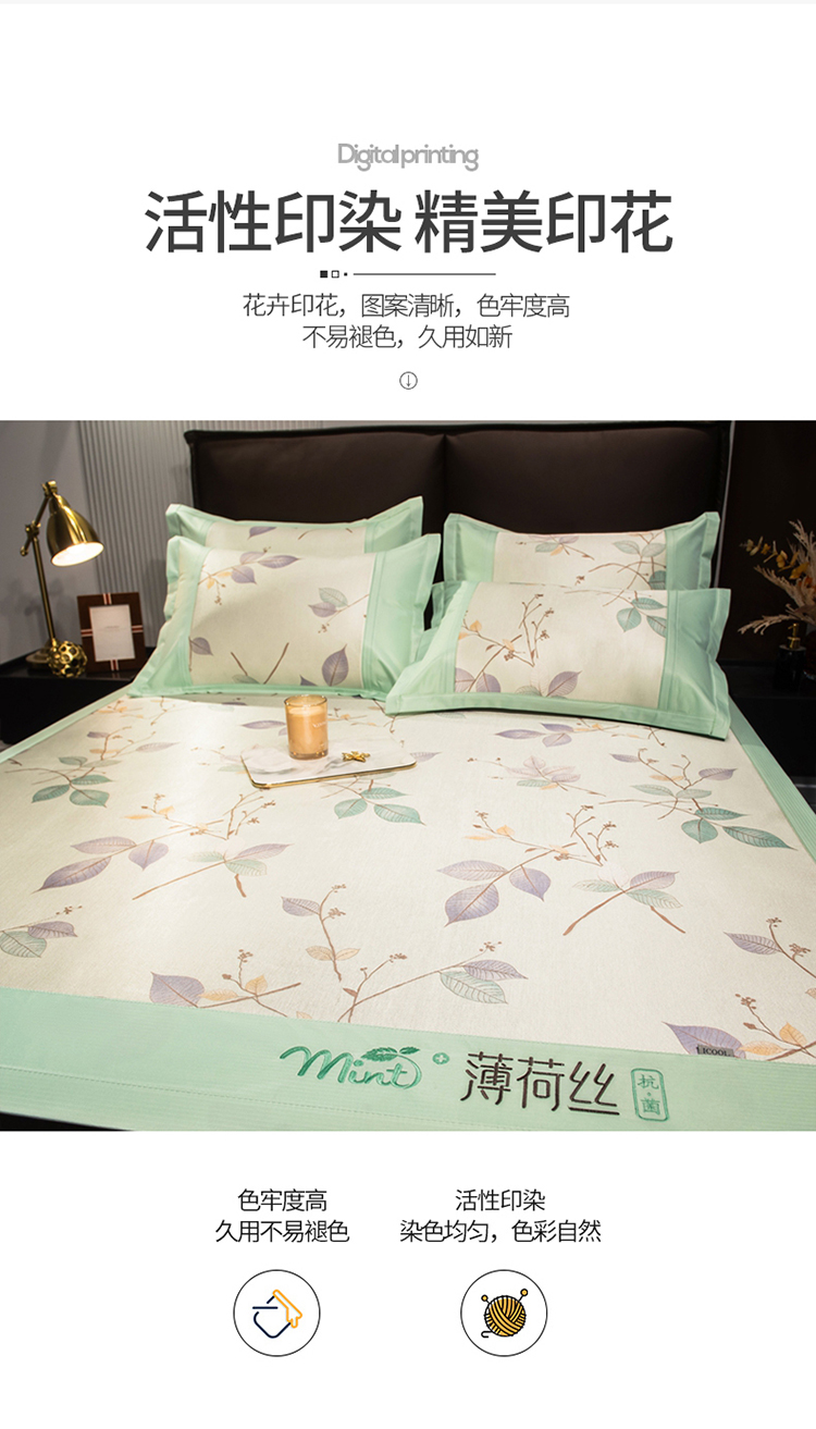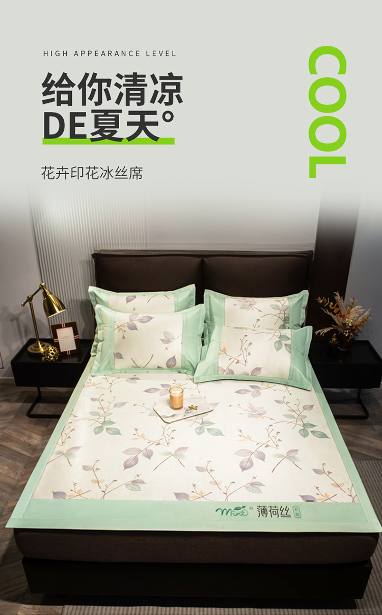 商品名称:全季家居2023年新款A类抗菌数码印花花卉系列冰丝席 清雅绿