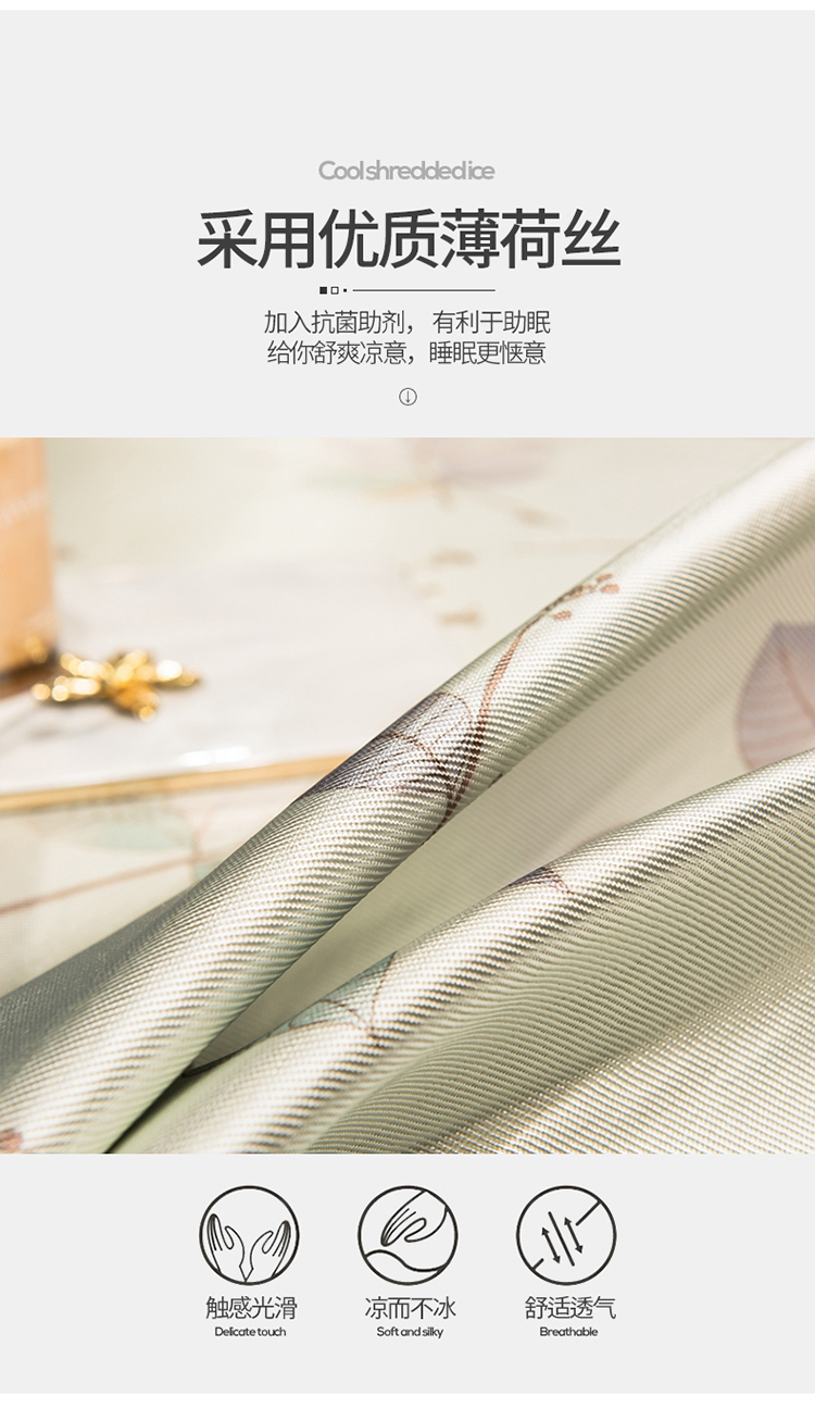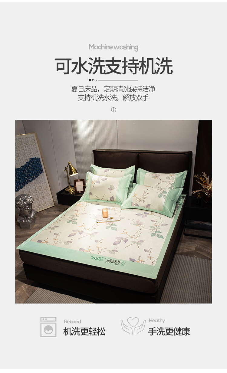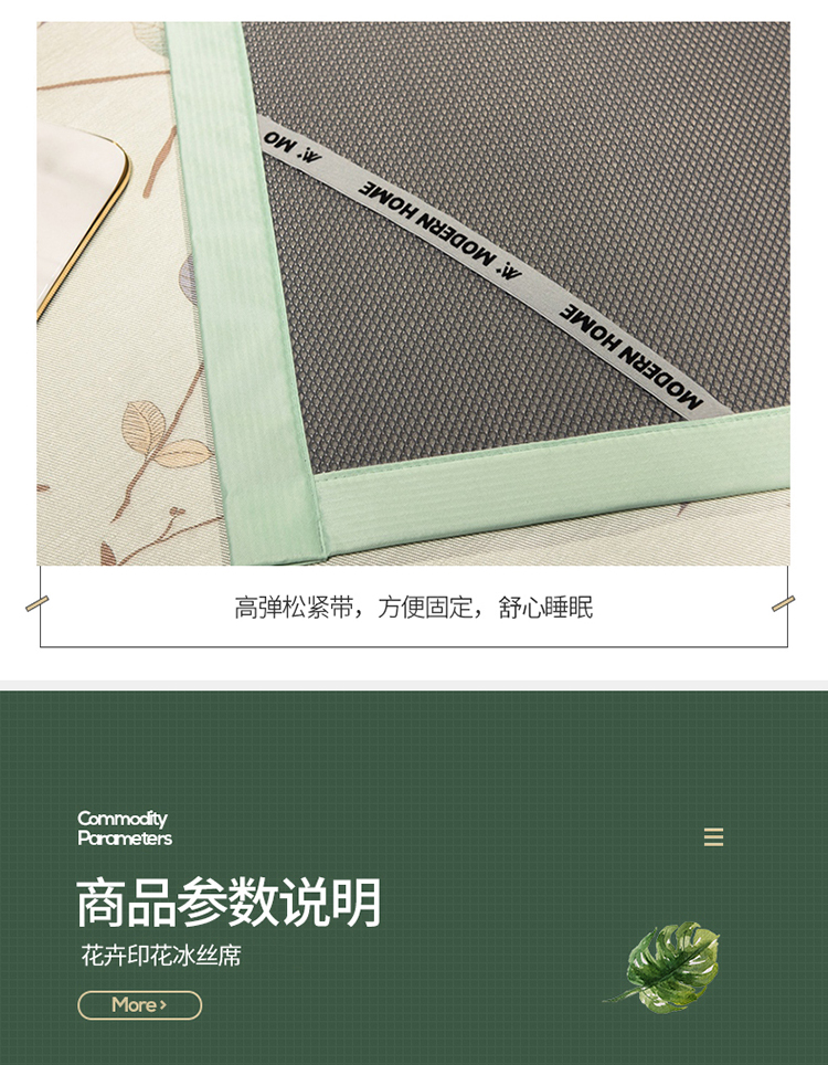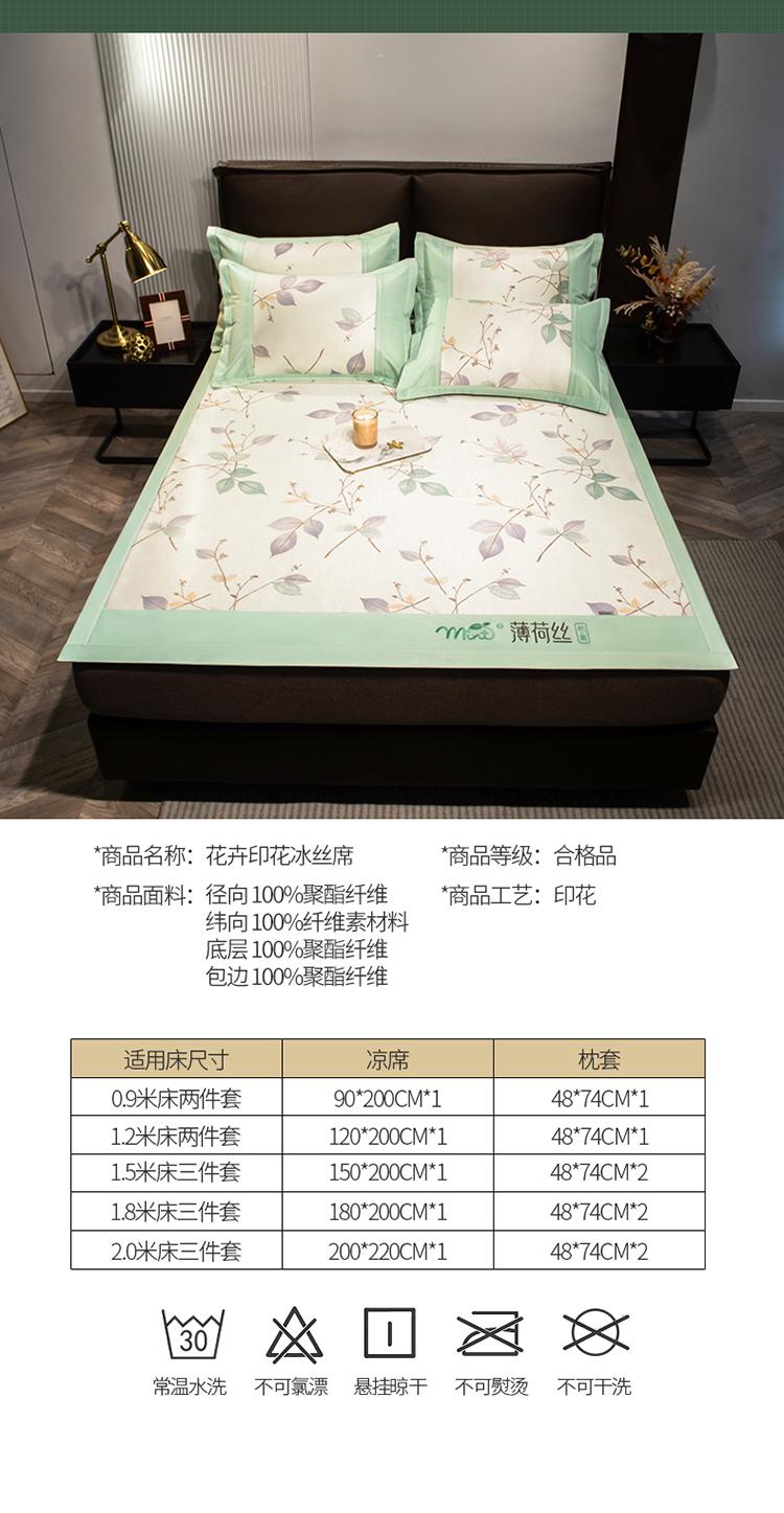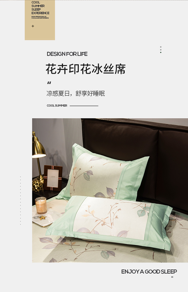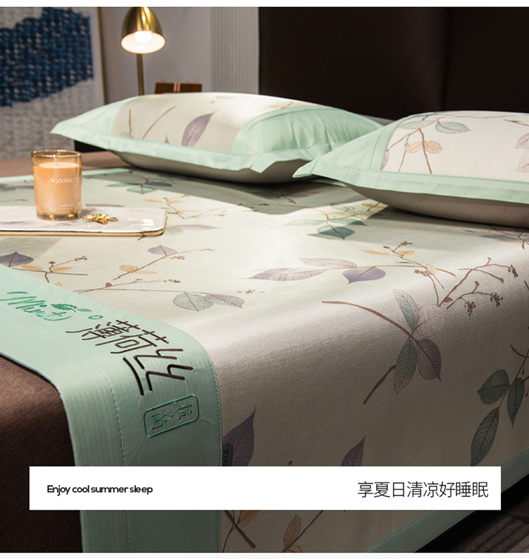 商品名称:全季家居2023年新款A类抗菌数码印花花卉系列冰丝席 清雅绿