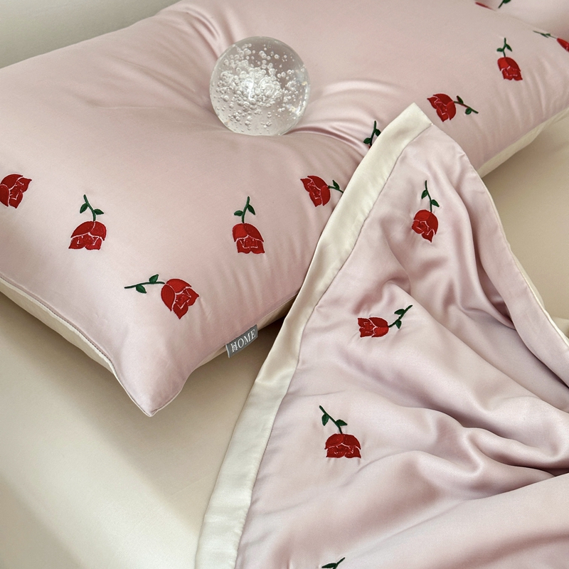 时亿 2023新款60支兰精天丝夏被四件套-佳人有约 茜茜粉