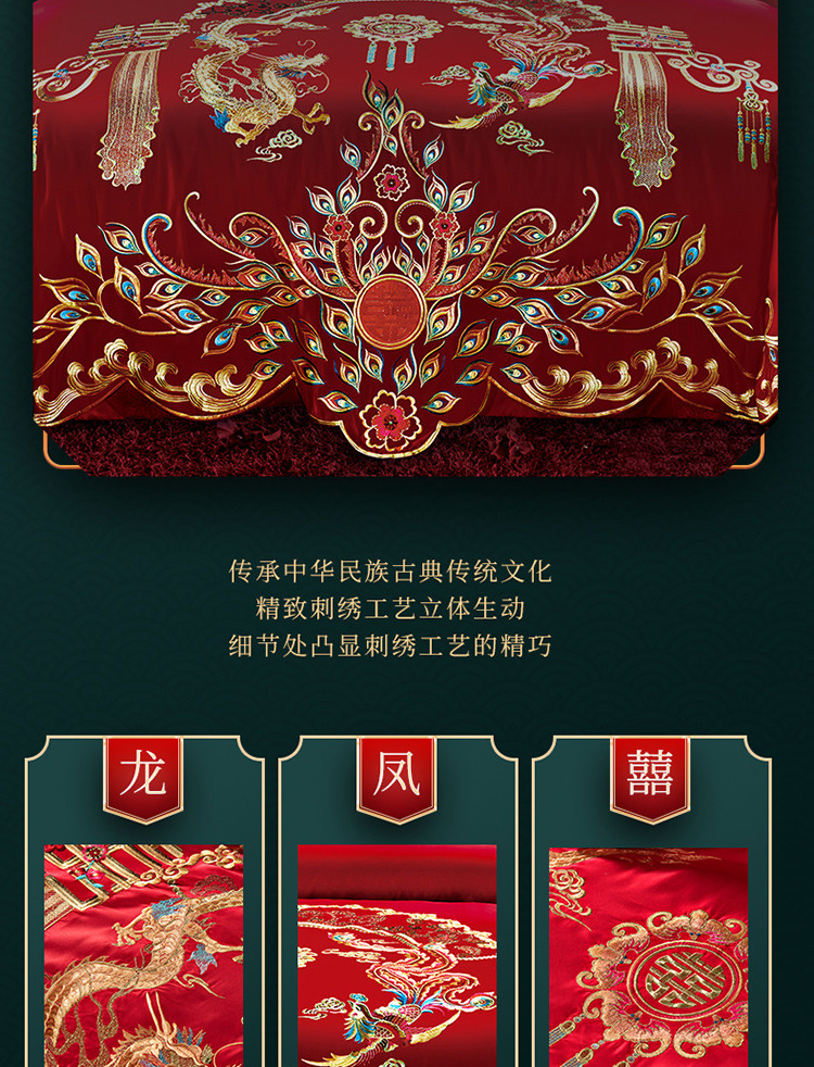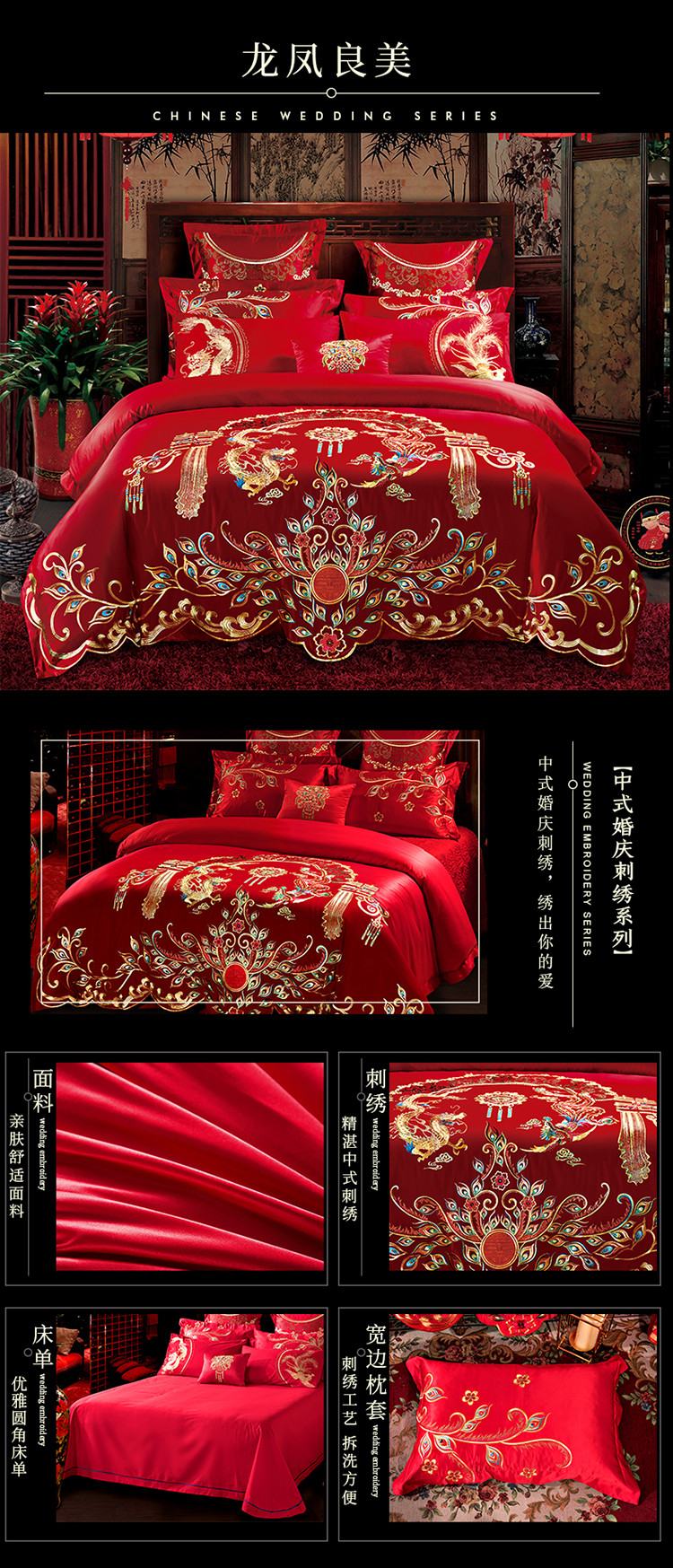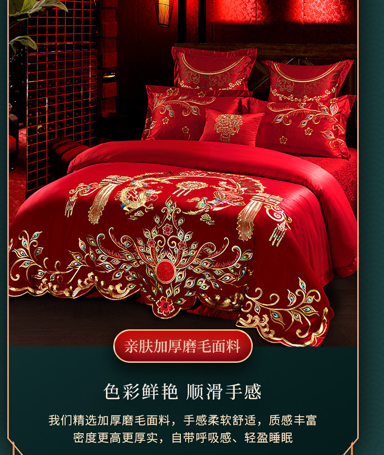 当前位置: 91家纺网 > 商品网购 > 床品套件 > 四件套 > 婚庆四件套 > 2025新款亲肤棉绣花刺绣婚庆四件套 龙凤良美