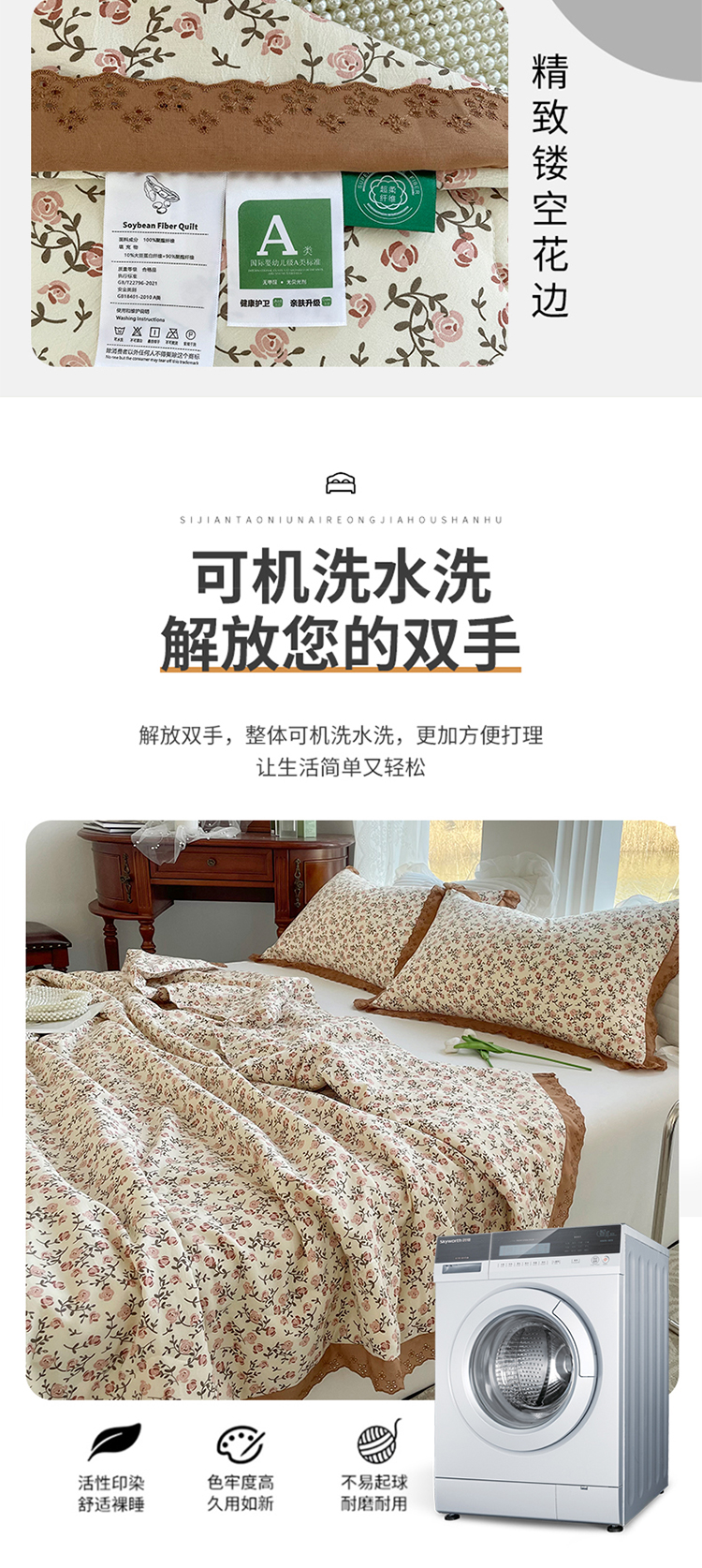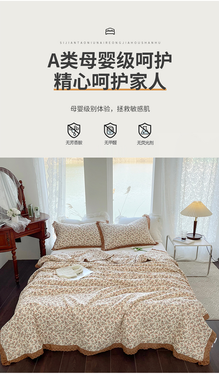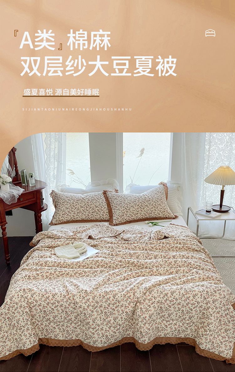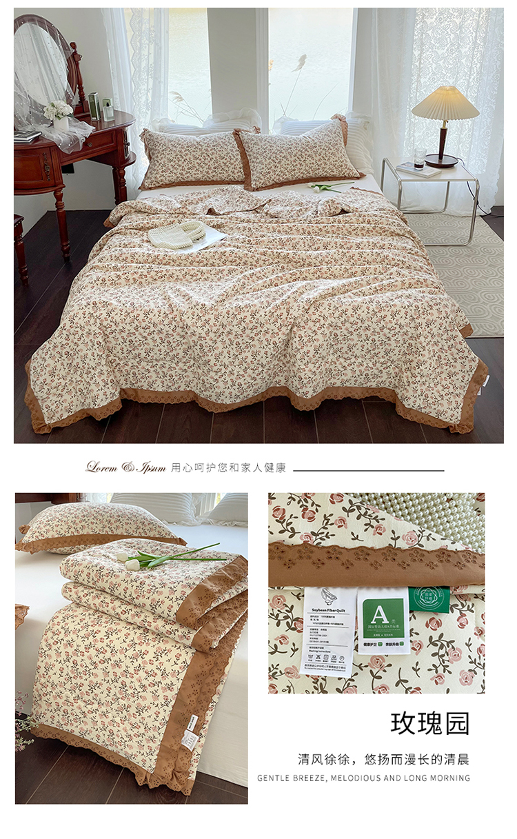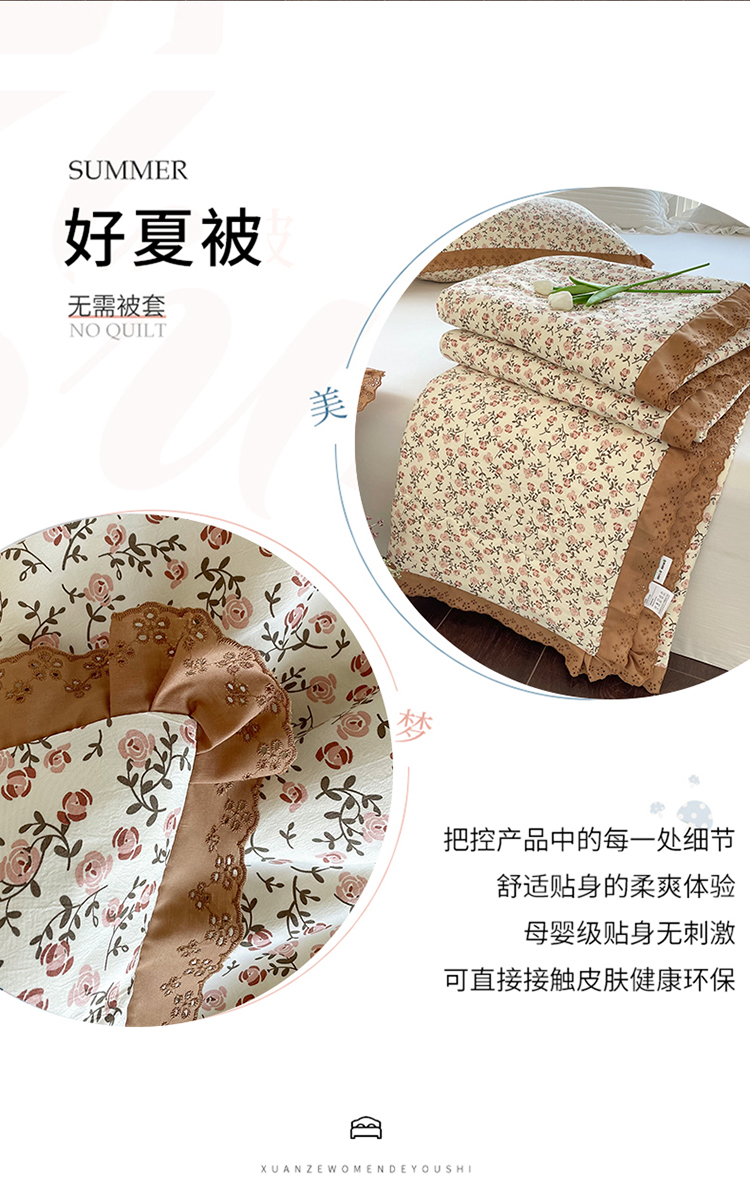 商品名称:仟网汇 2023新款水洗棉麻夏被 玫瑰园