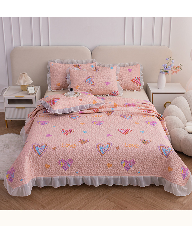 梓依家纺 2025新款牛奶绒花边单床盖三件套四件套 爱心点点,爱心点点