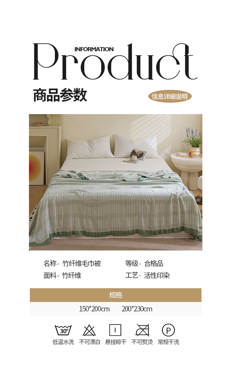 商品名称:雯雨家纺 2023新款竹纤维毛巾被 百灵鸟-绿色