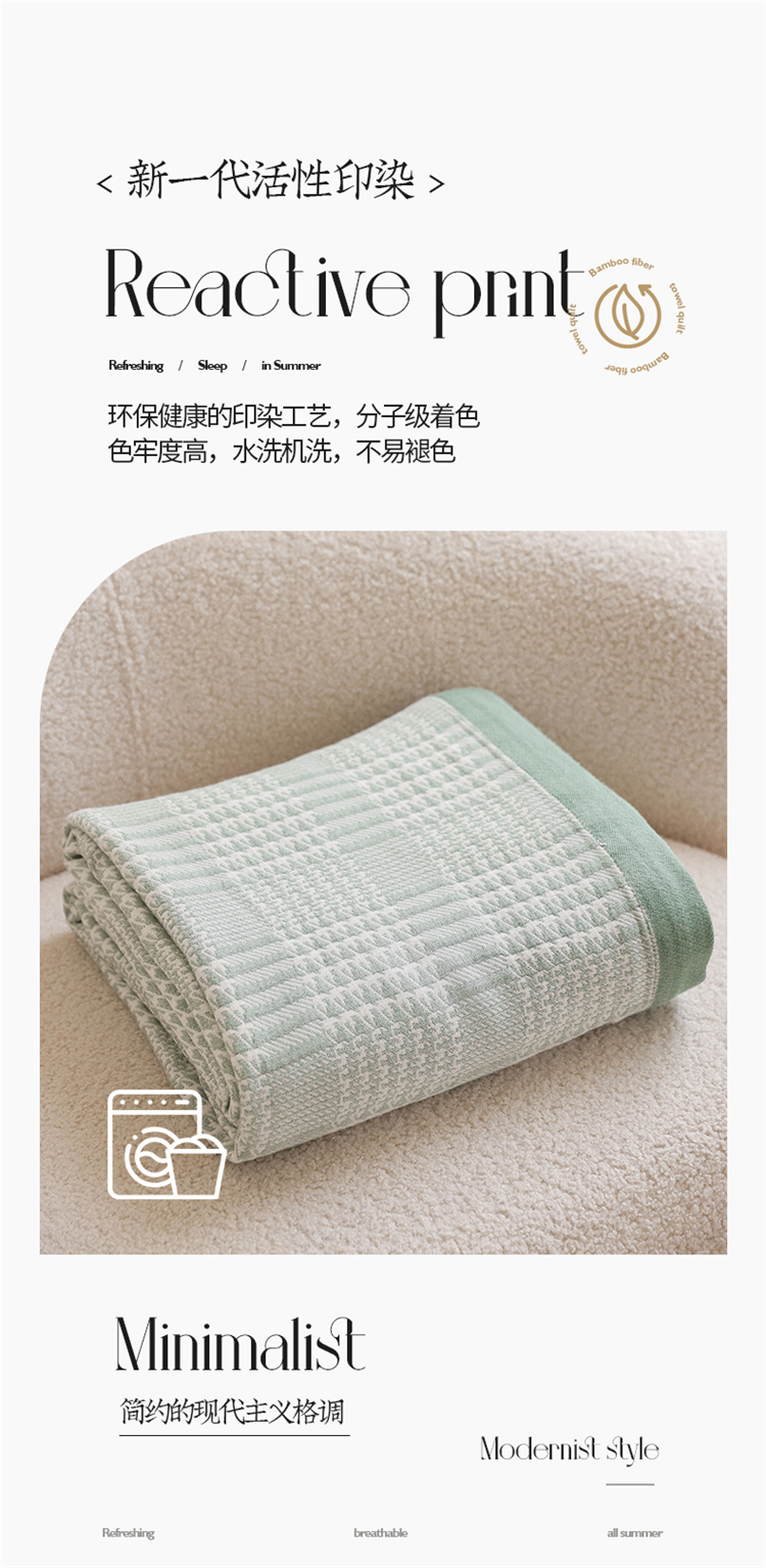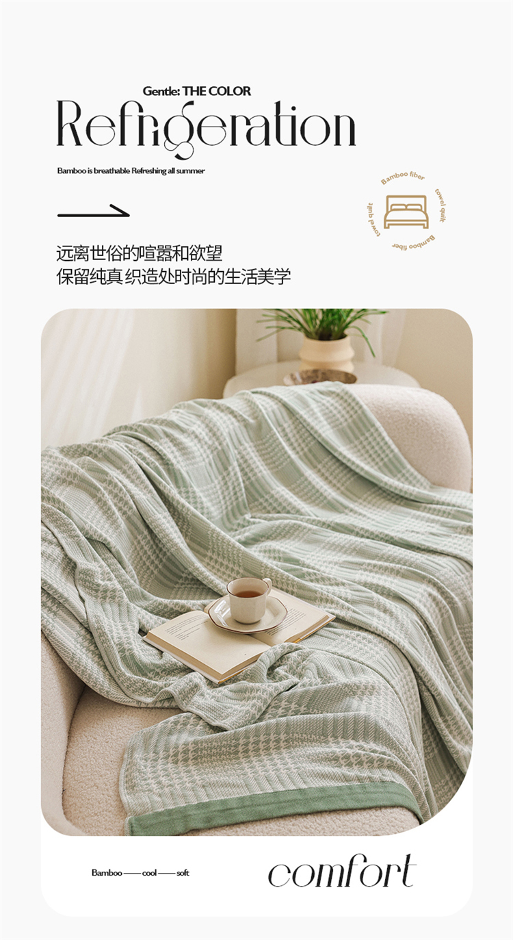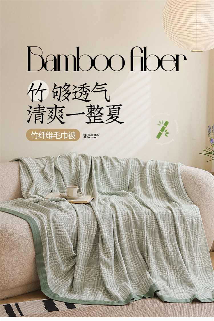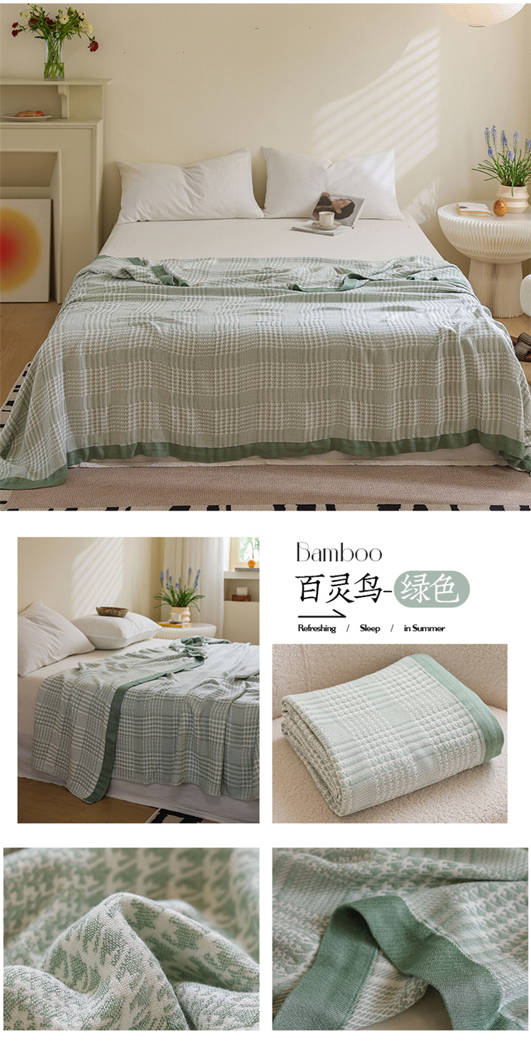 雯雨家纺 2023新款竹纤维毛巾被 百灵鸟-绿色