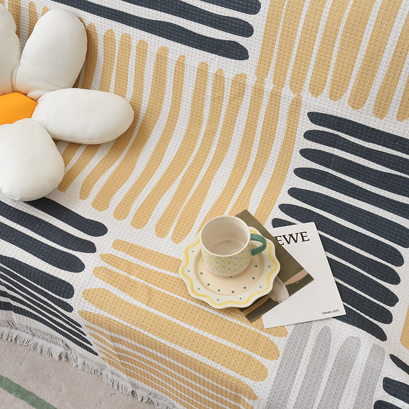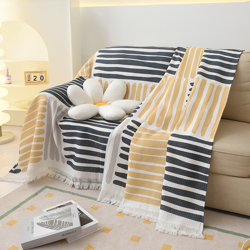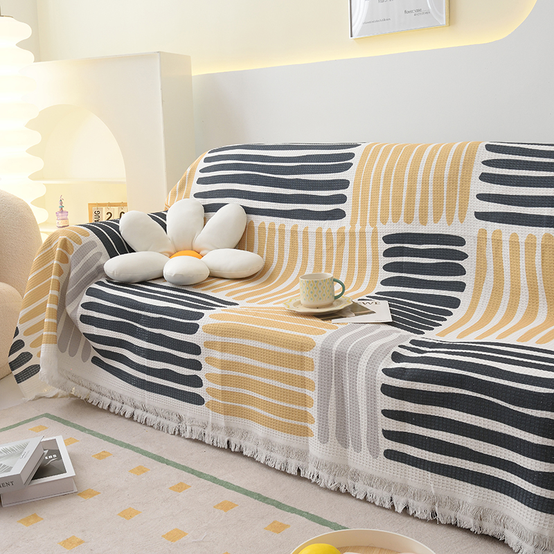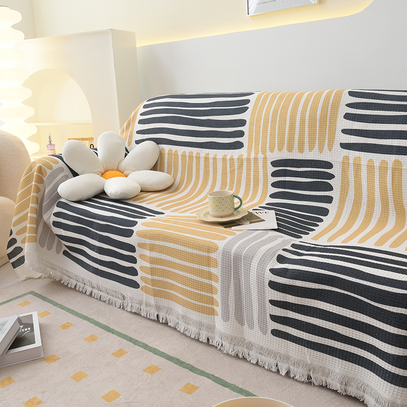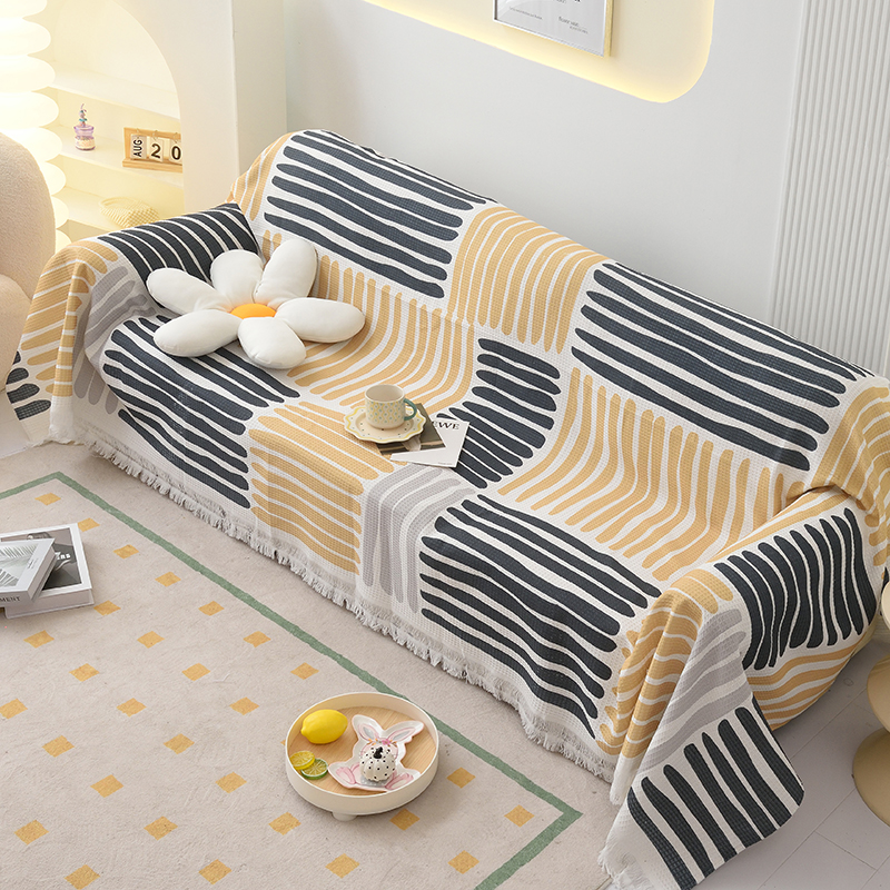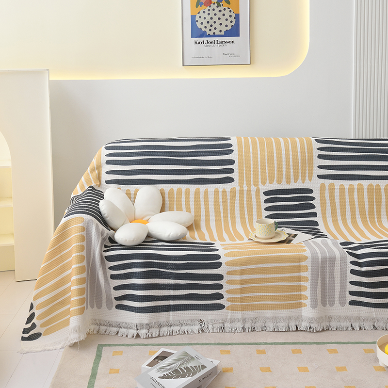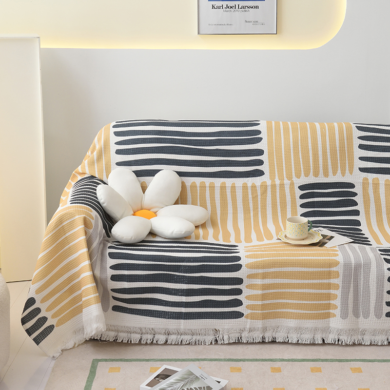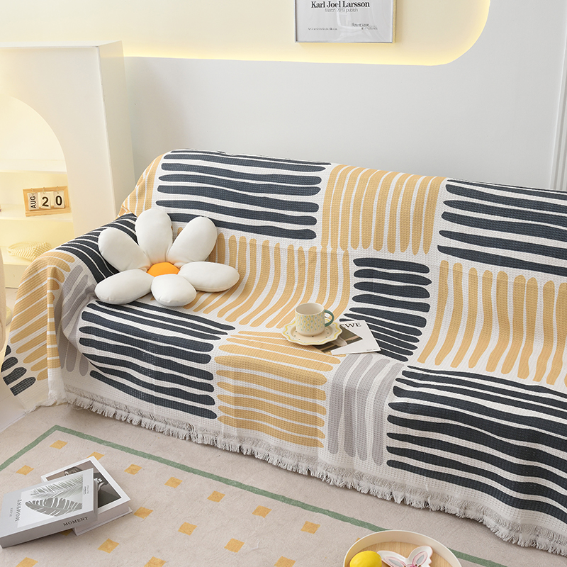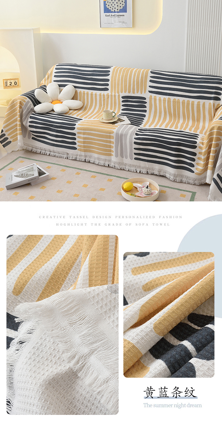 当前位置: 91家纺网 > 商品网购 > 居家布艺 > 坐垫/椅垫/沙发垫 > 沙发垫 > 启博家纺 2023爆款针织棉线沙发巾 黄蓝条纹