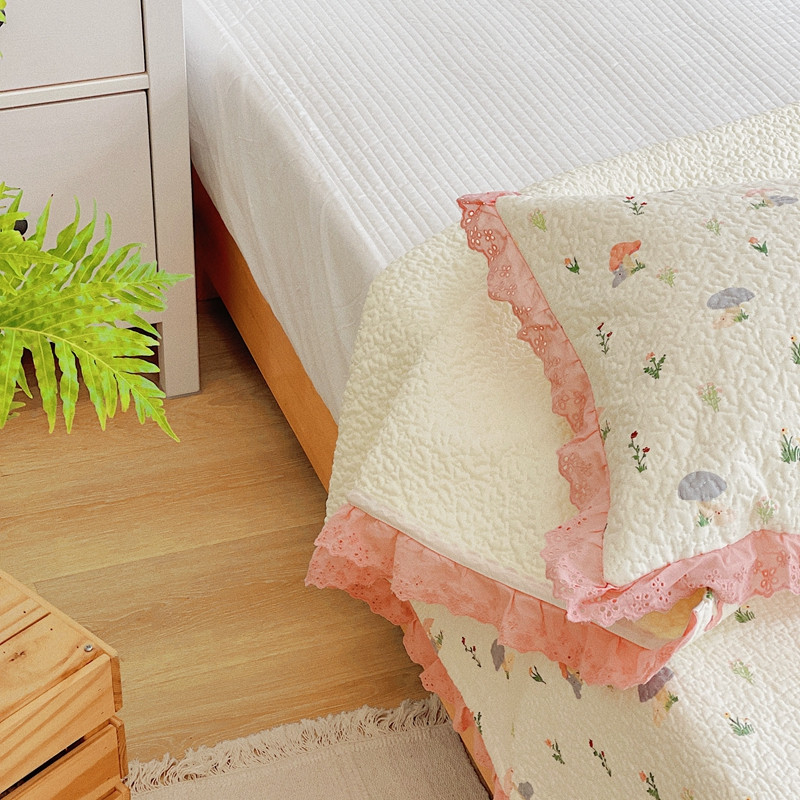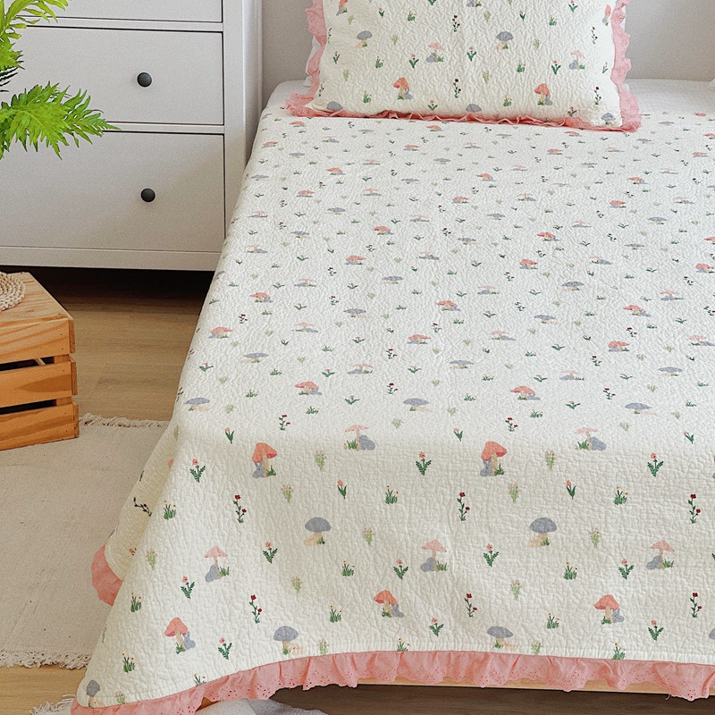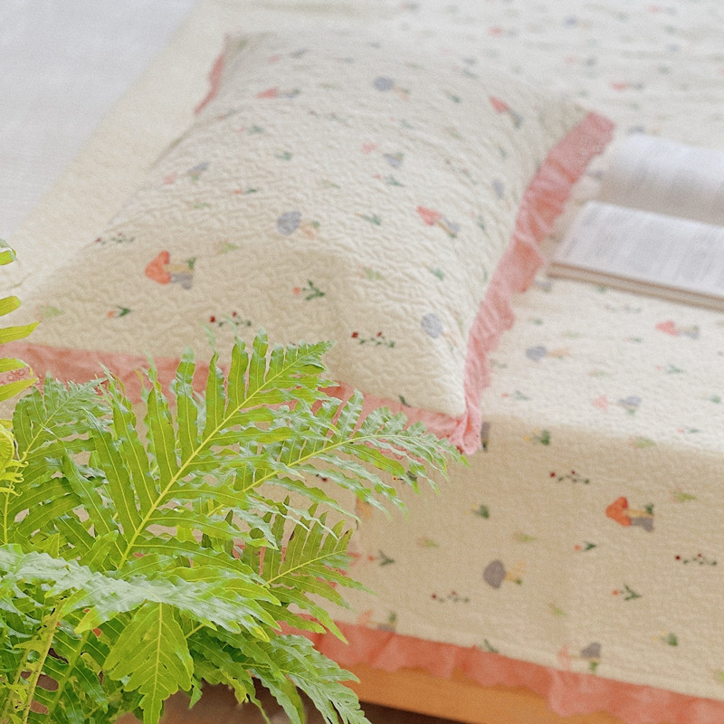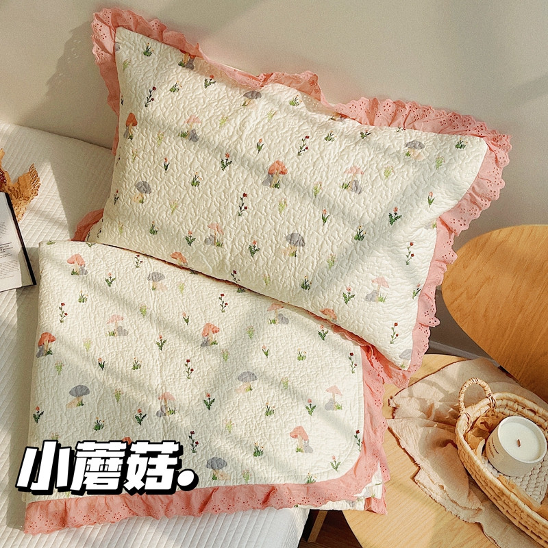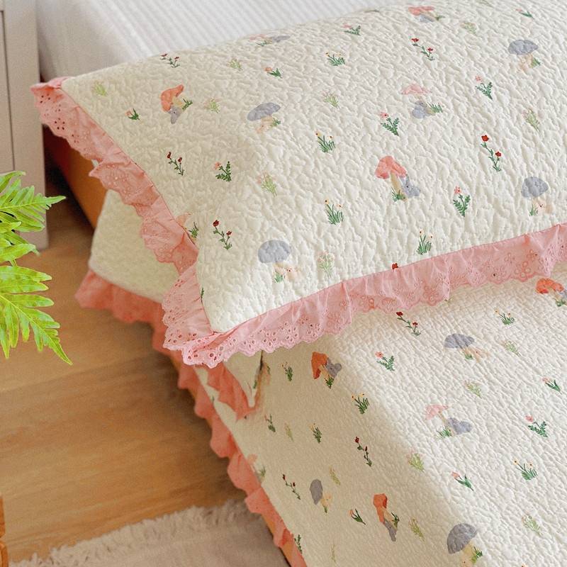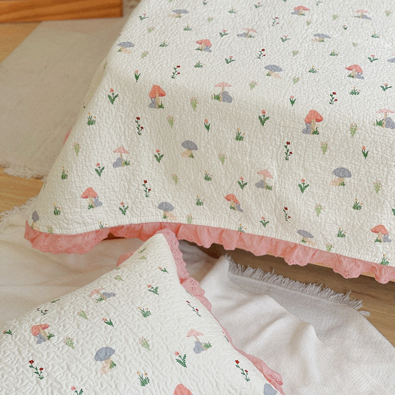 有货 2023新款全棉棉花酵素纱洗床盖三件套 小蘑菇
