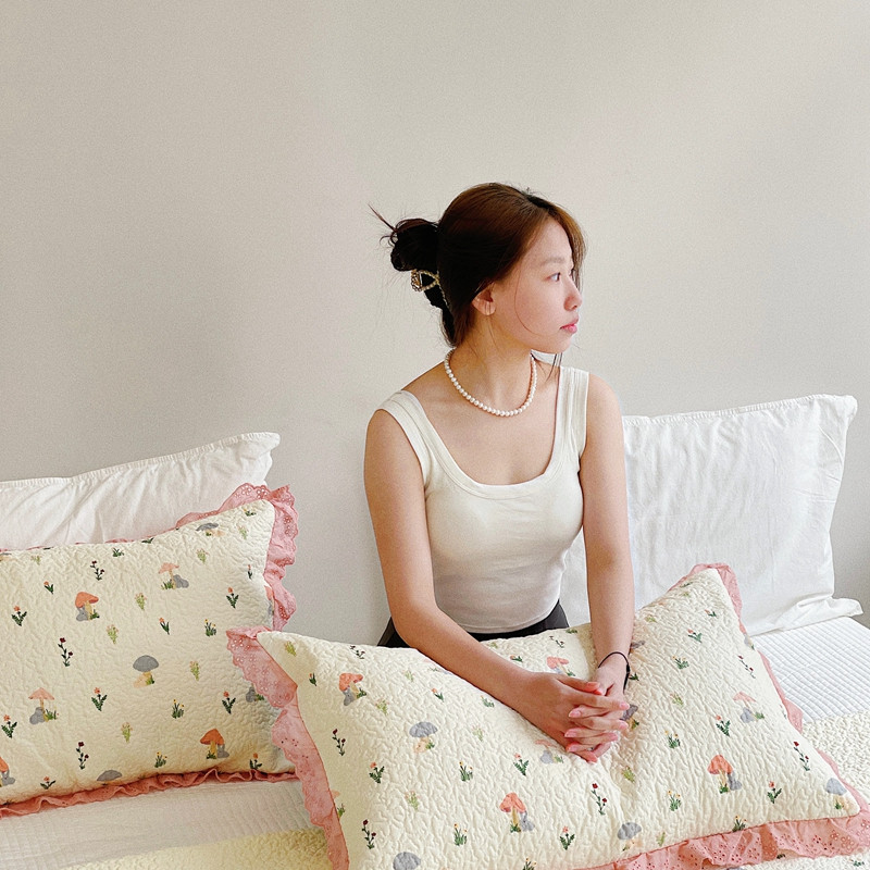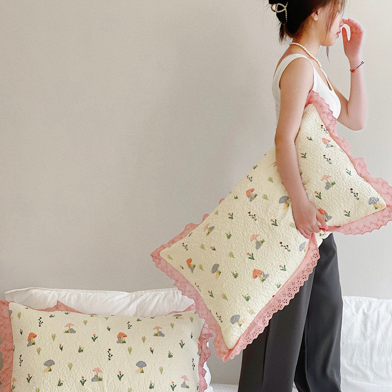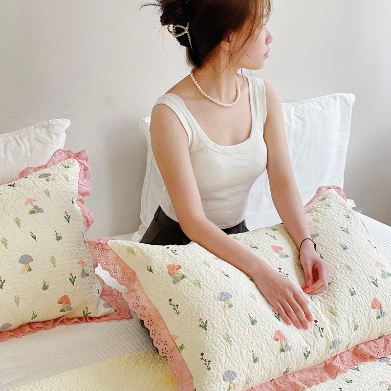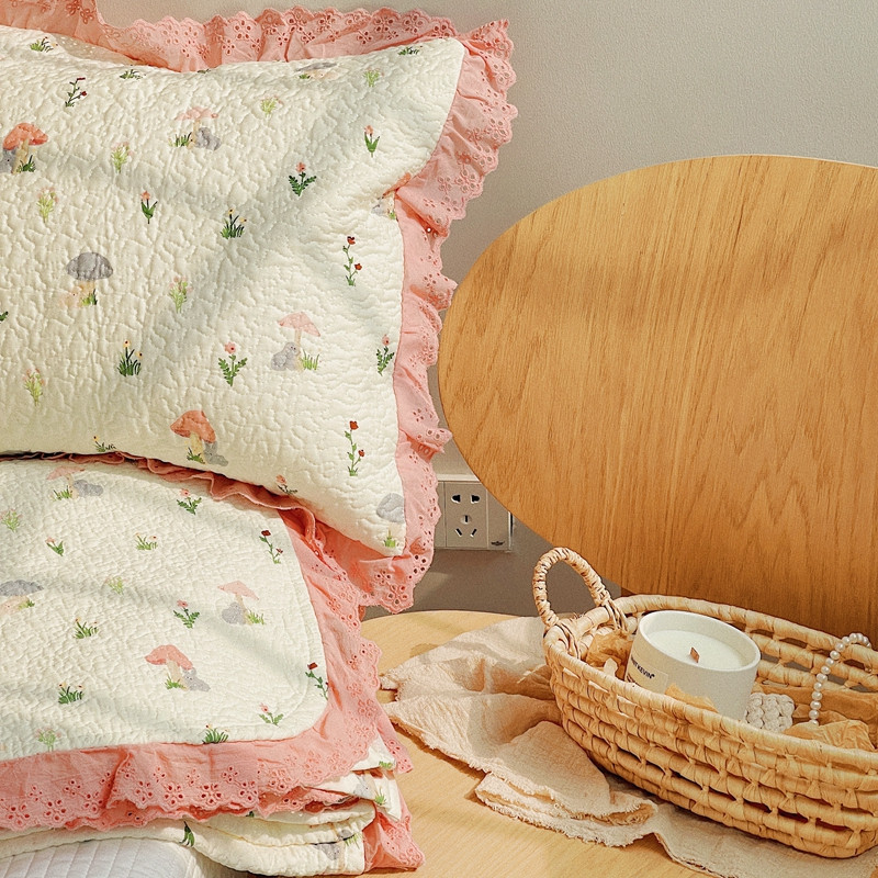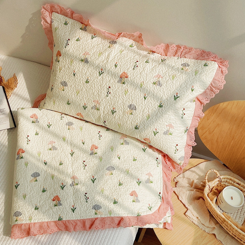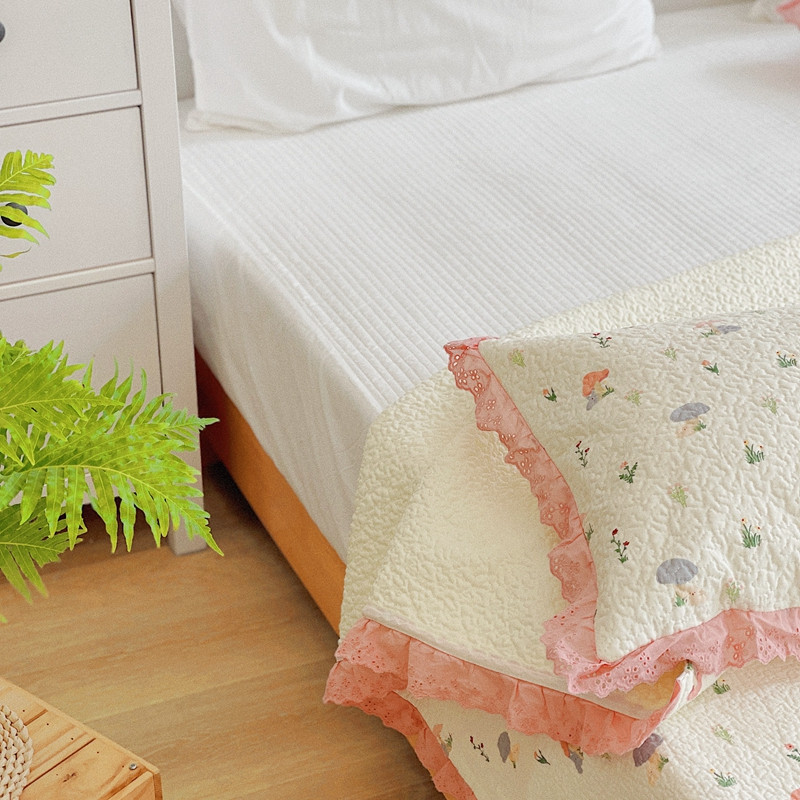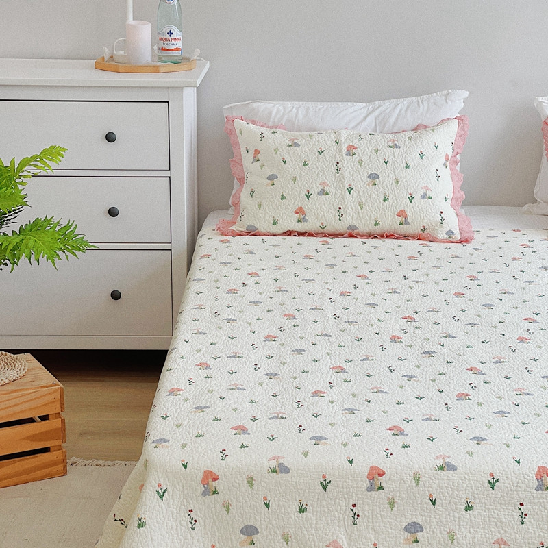 有货 2023新款全棉棉花酵素纱洗床盖三件套 小蘑菇