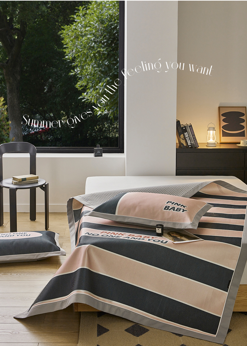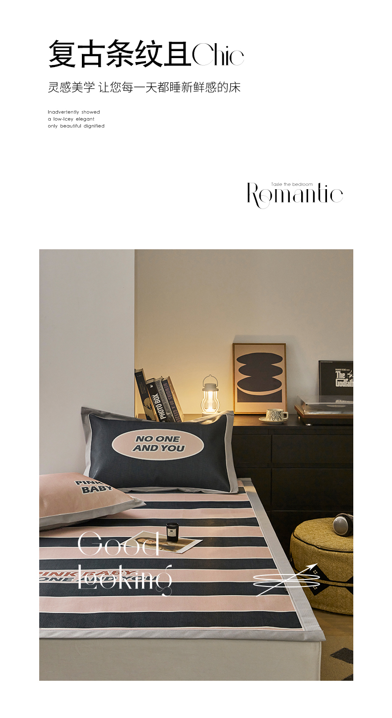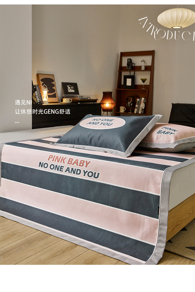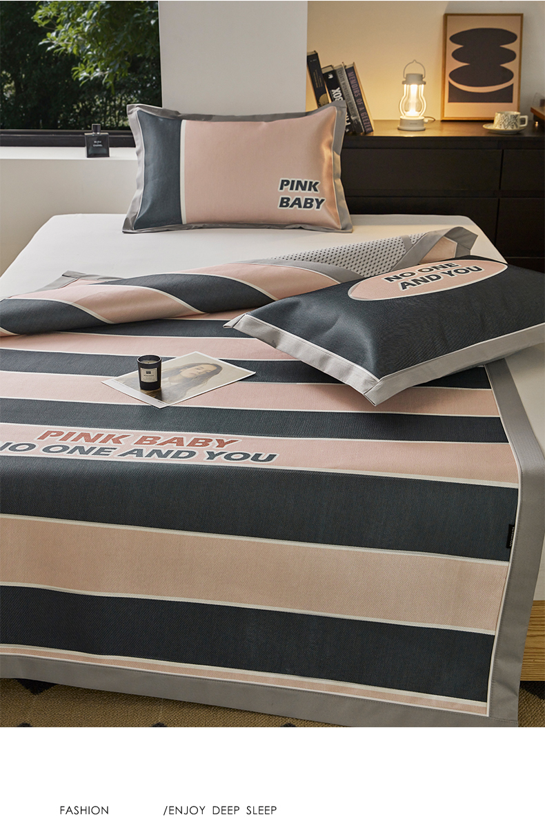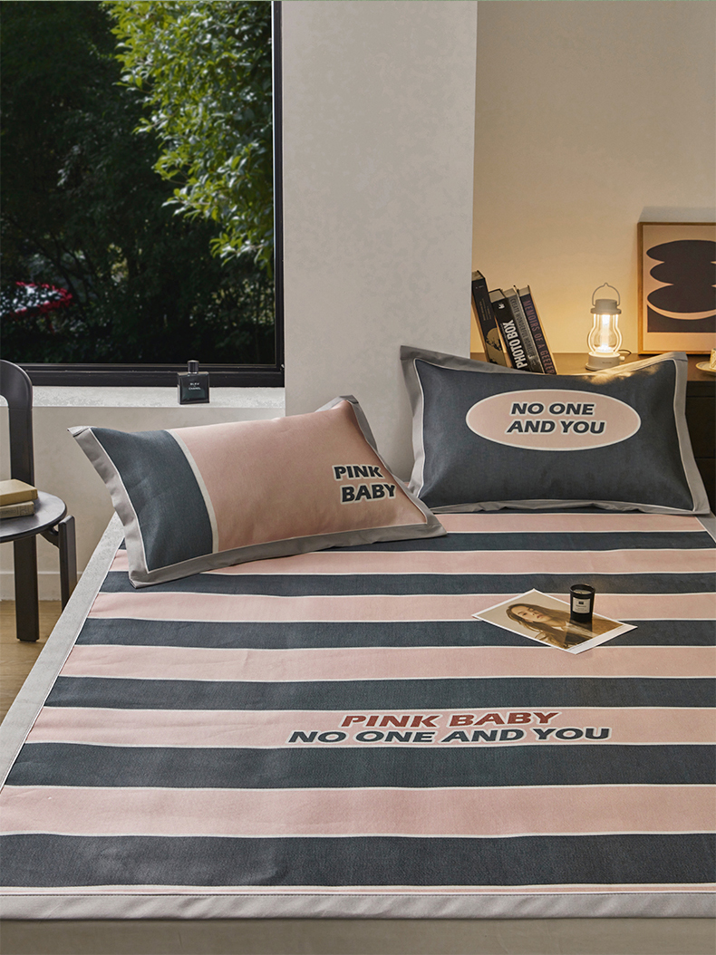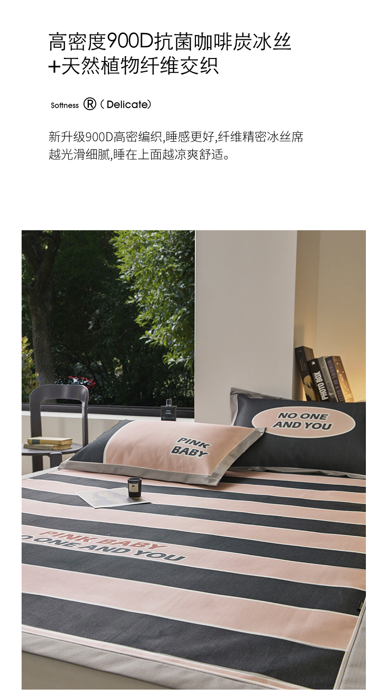 圆岛家纺 2023夏季A类复古条纹系列高档900D数码印花冰丝凉席 甜酷粉黑