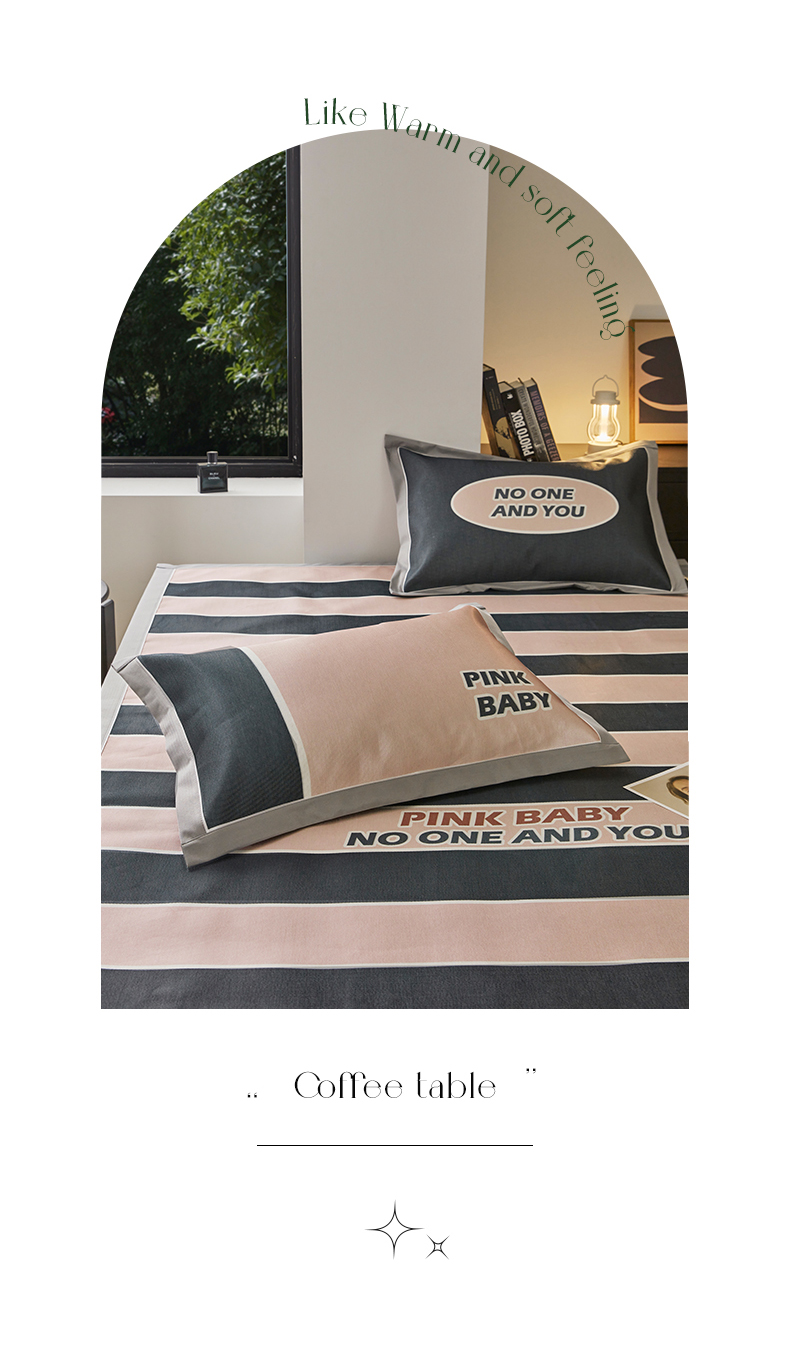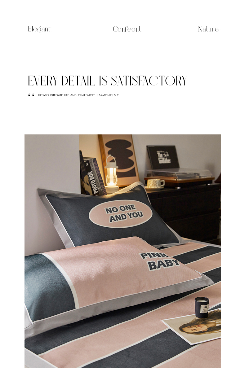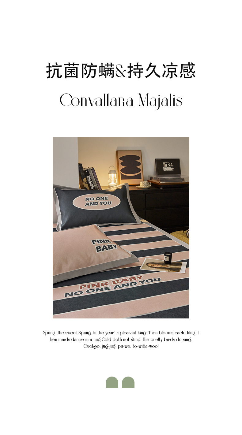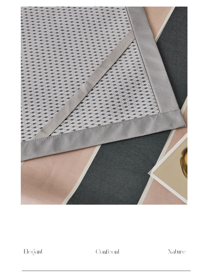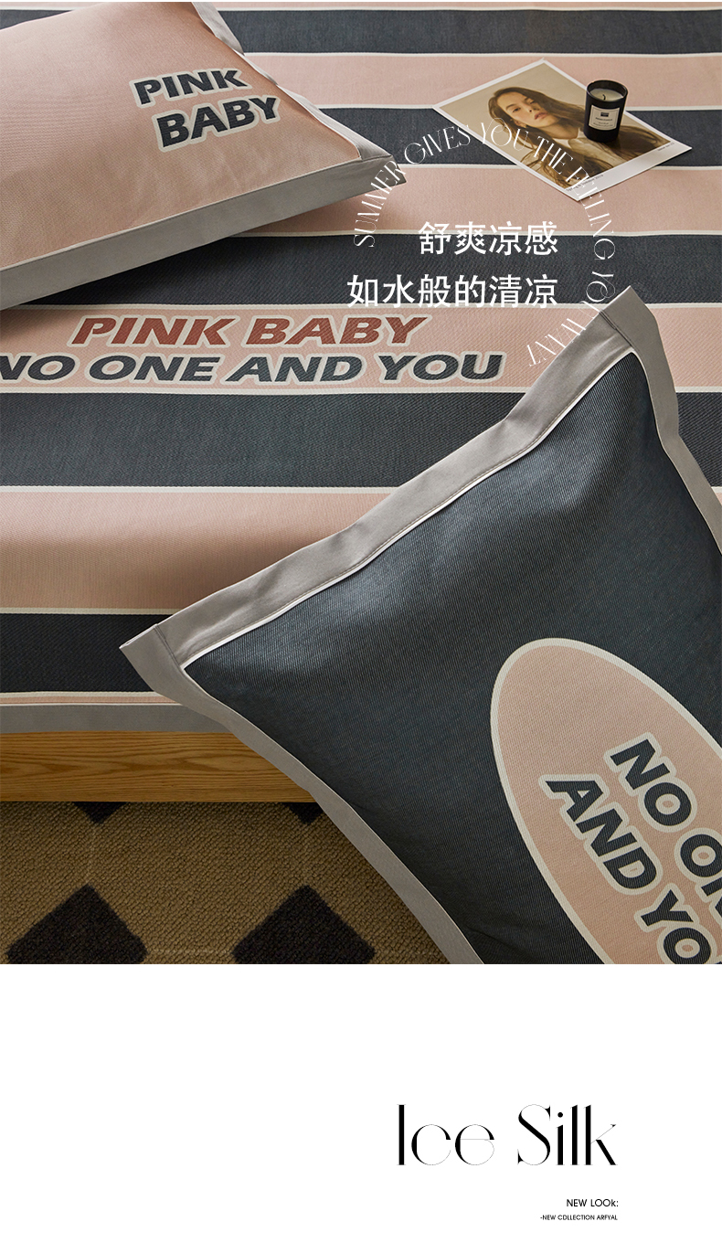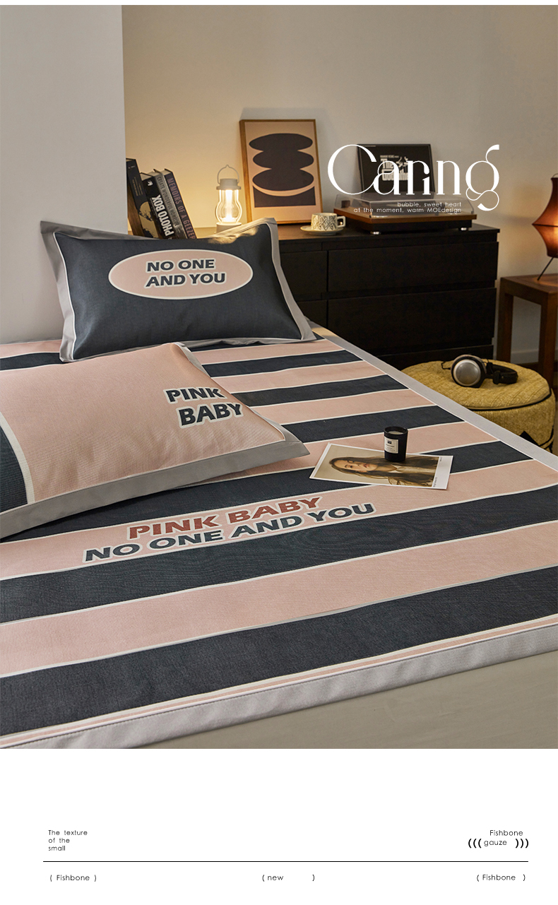 圆岛家纺 2023夏季A类复古条纹系列高档900D数码印花冰丝凉席 甜酷粉黑