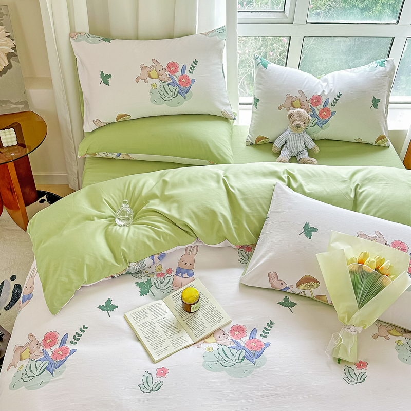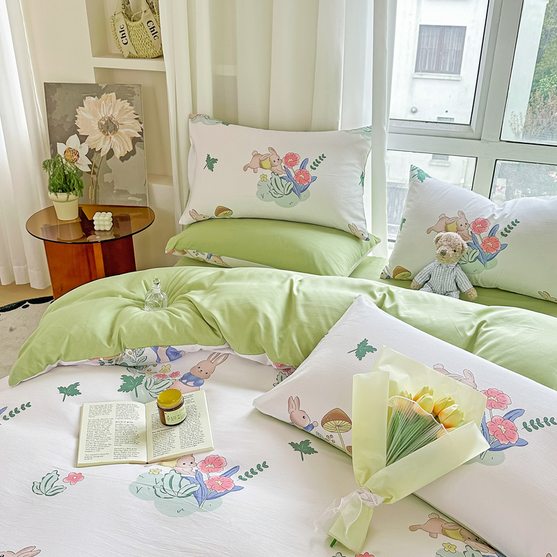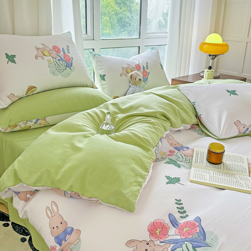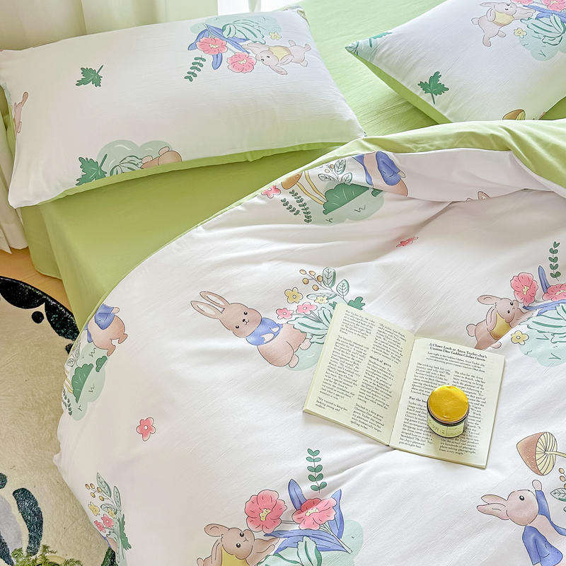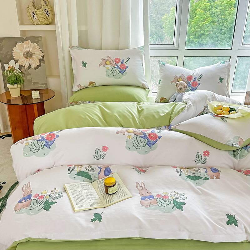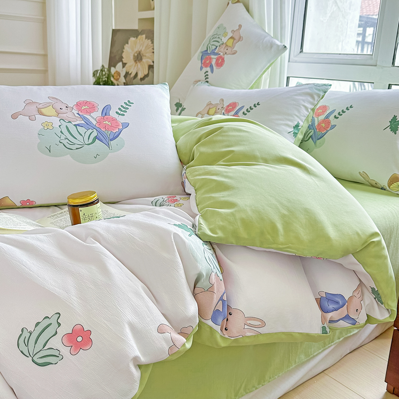 美莱 2023直播爆款水洗棉麻四件套小清新套件可谈价 彼得兔
