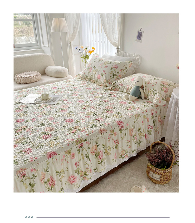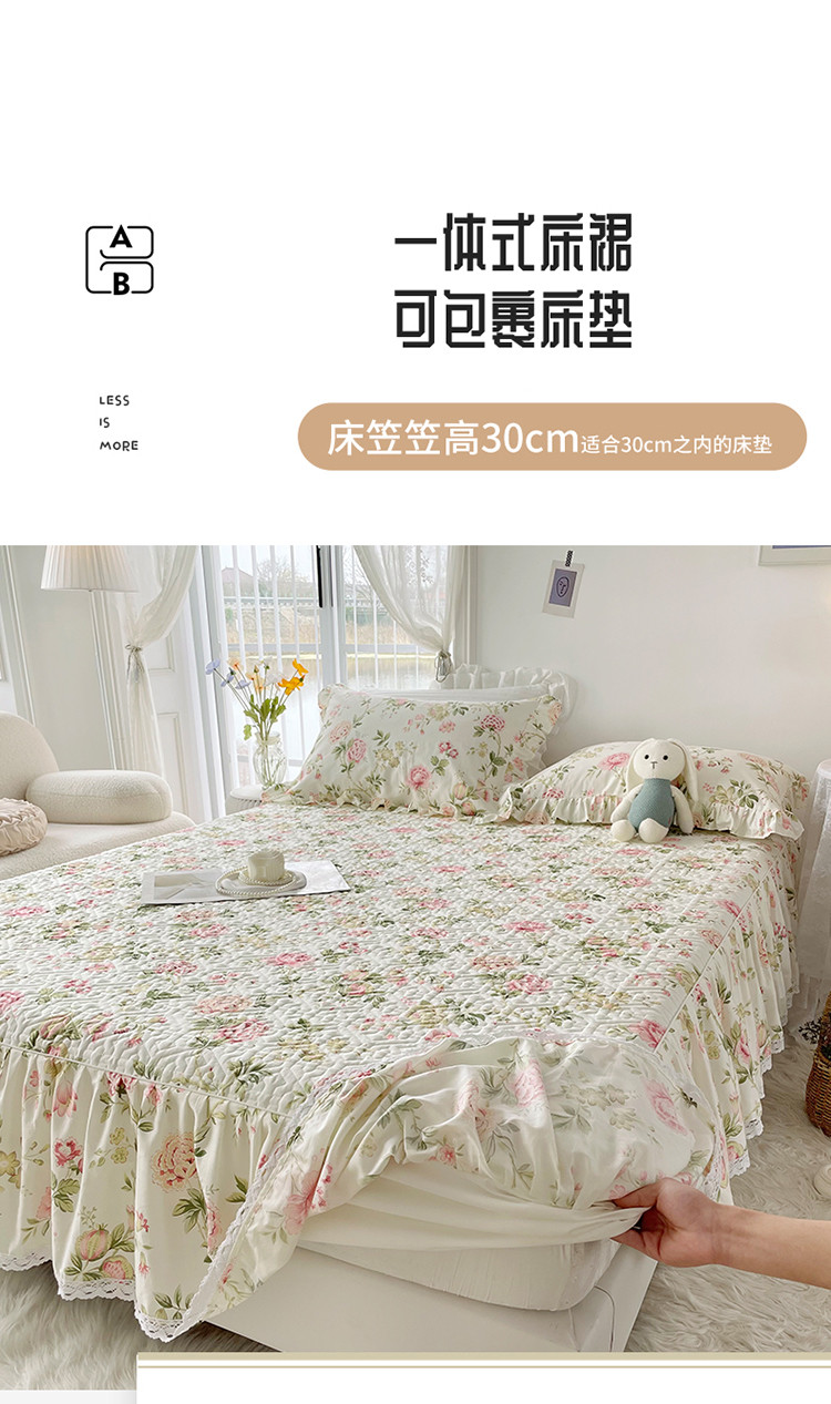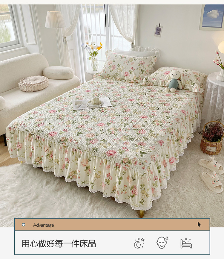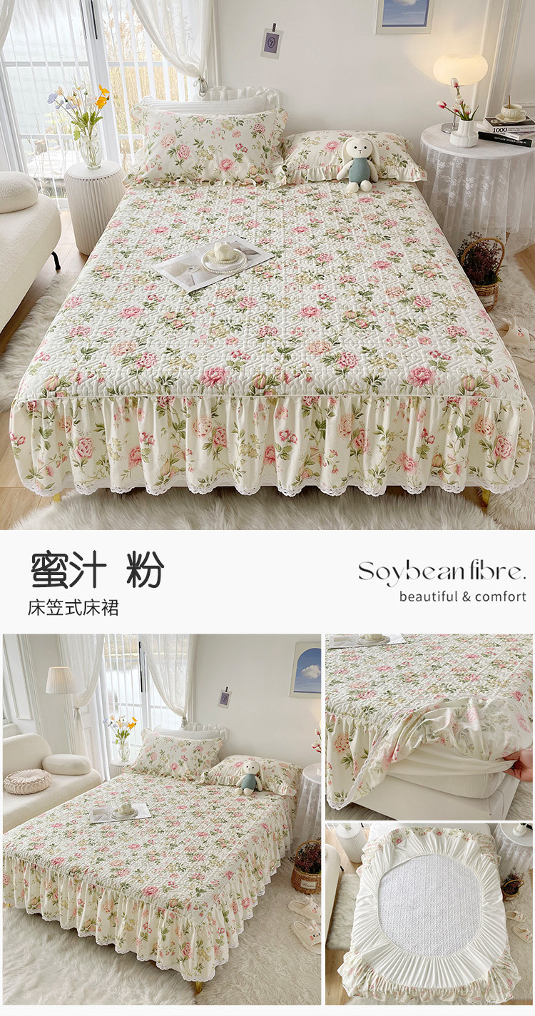 商品名称:忘忧草 2023新款13372全棉夹棉床笠式床裙纯棉 蜜汁-粉