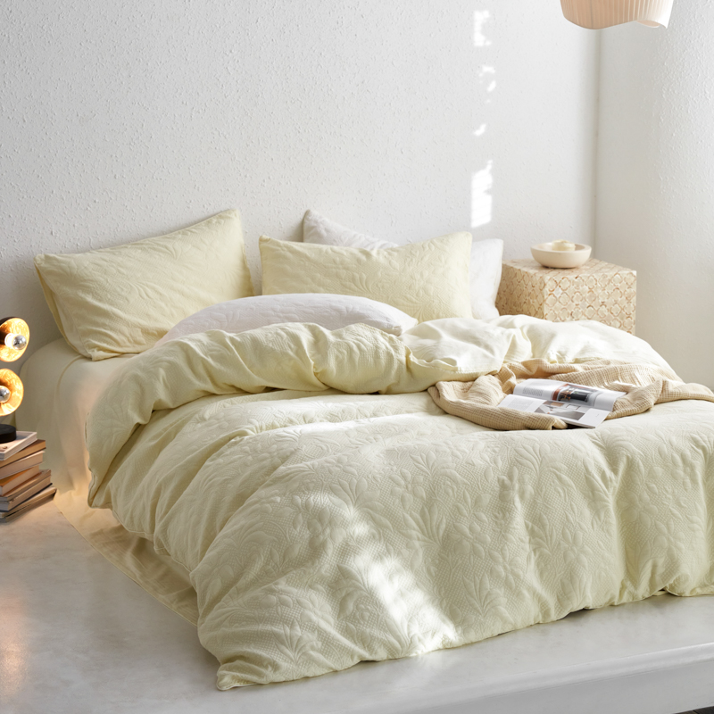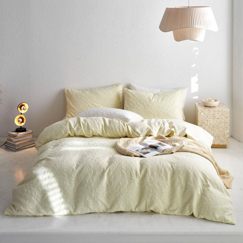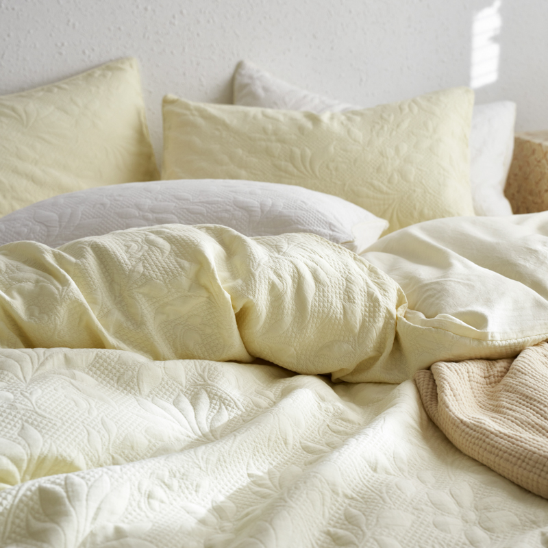 商品名称:简家居 2023新款AB版全棉浮雕提花四件套-沐春 鹅黄