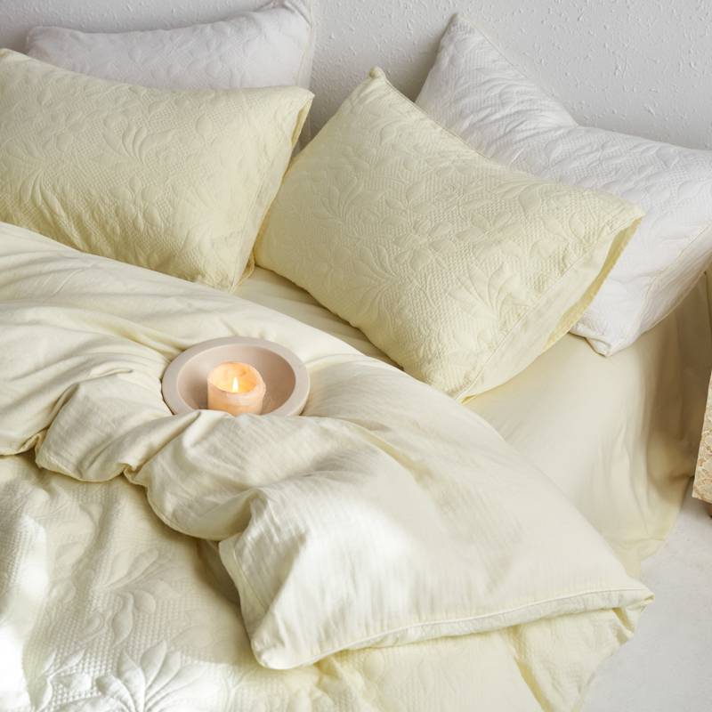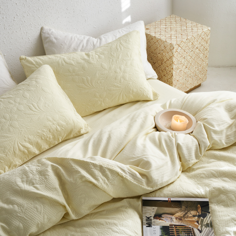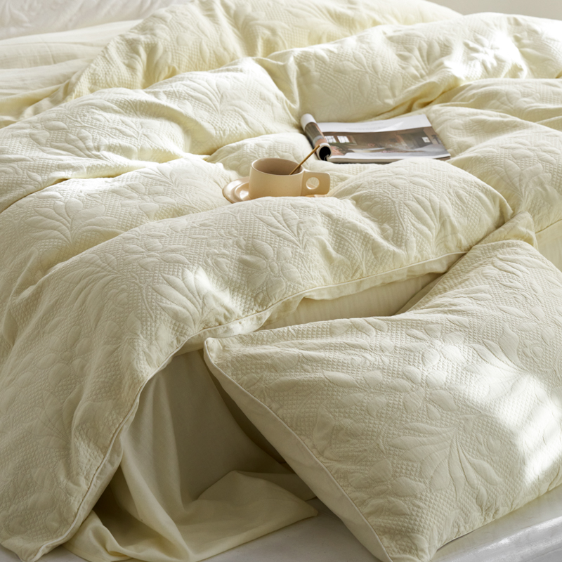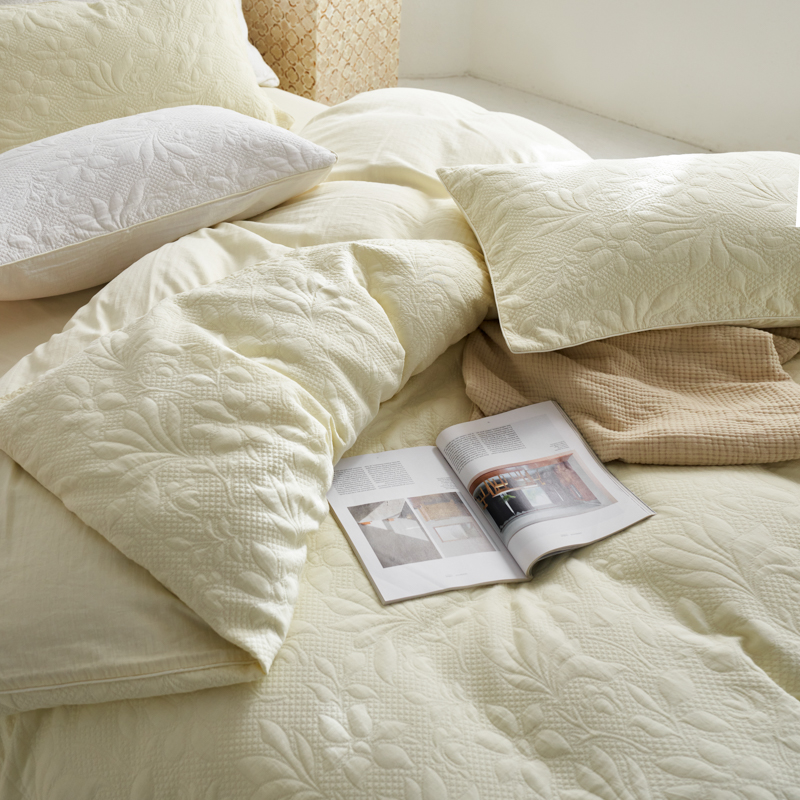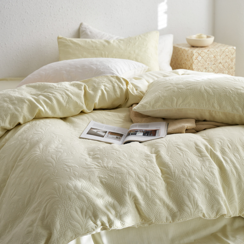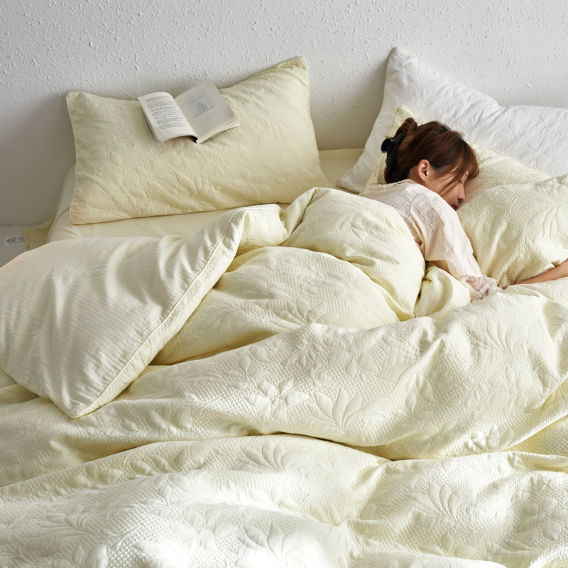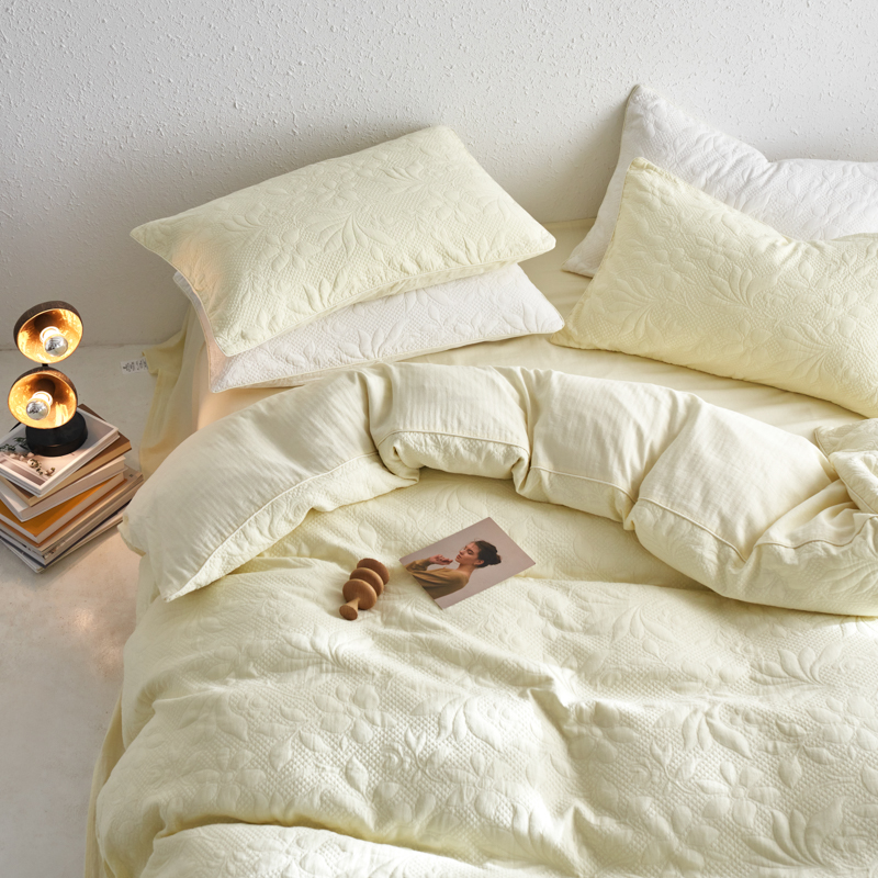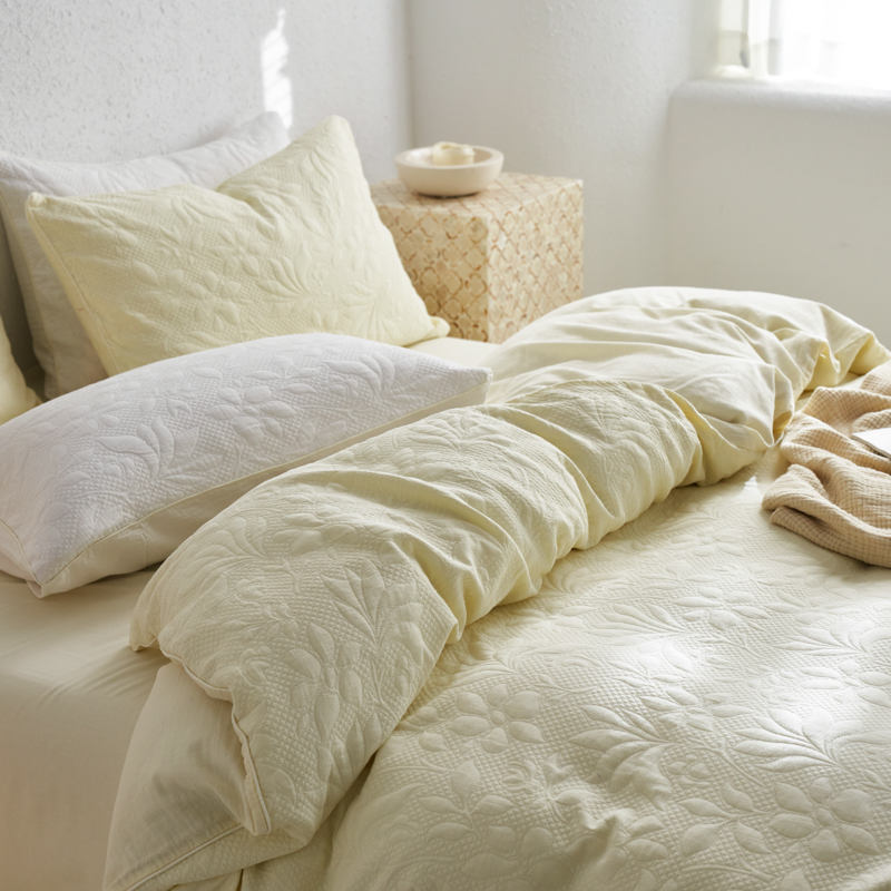 简家居 2023新款AB版全棉浮雕提花四件套-沐春 鹅黄