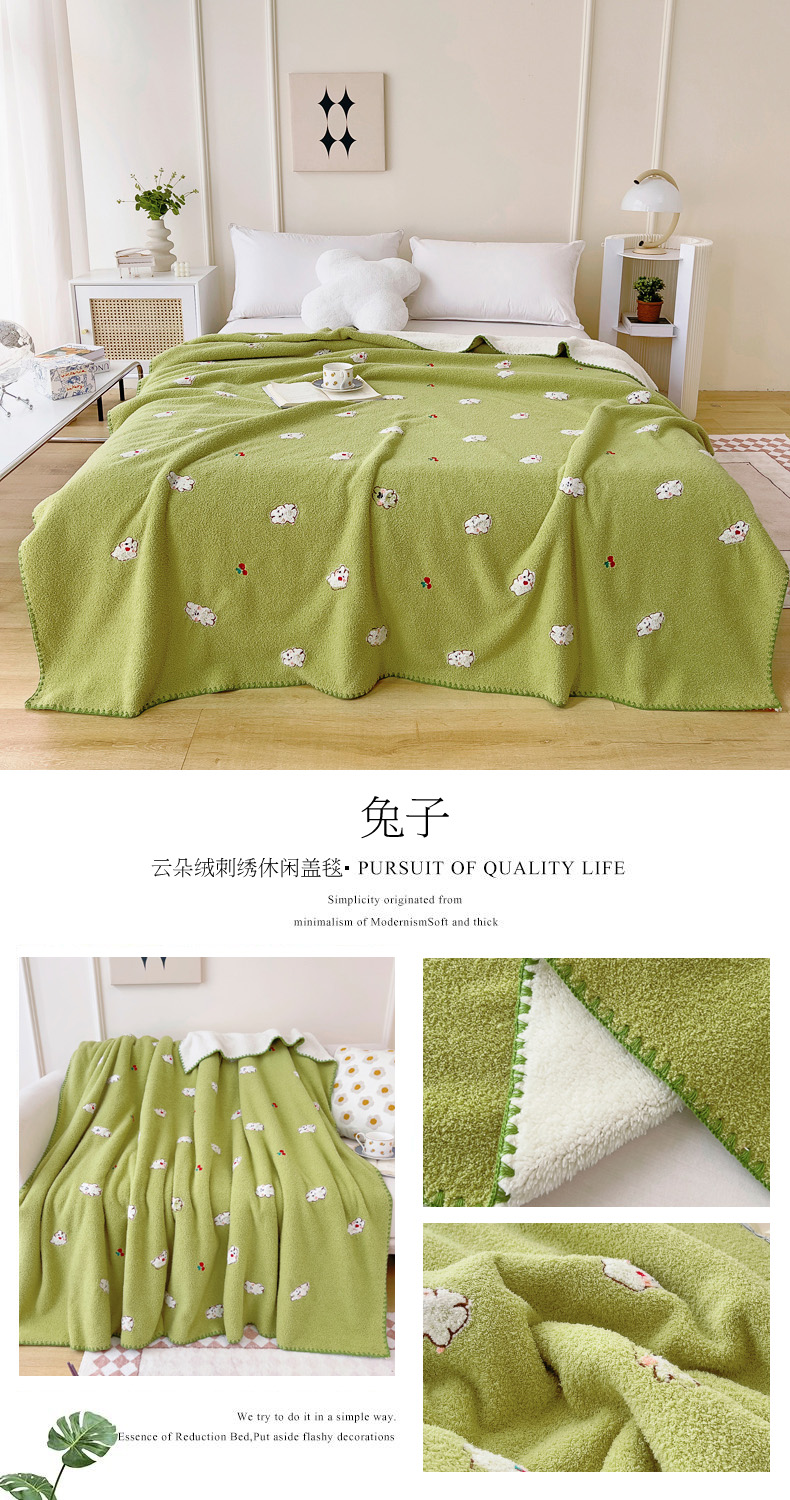 商品名称:恋佳2023新款云朵绒绣花毯毛毯 兔子