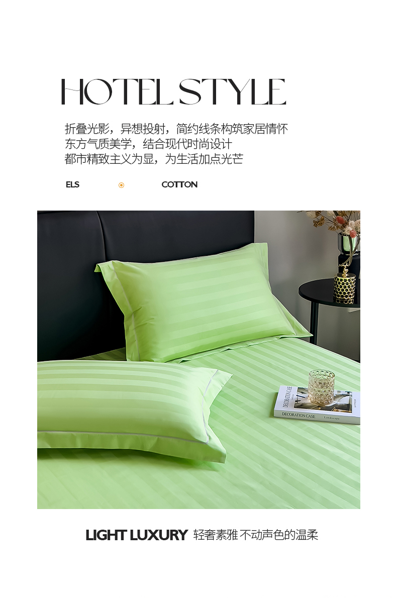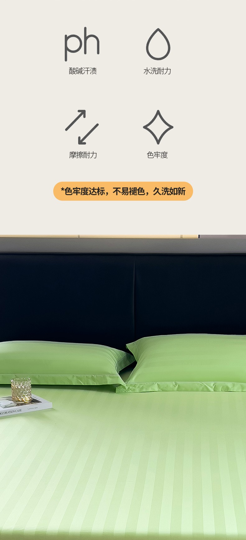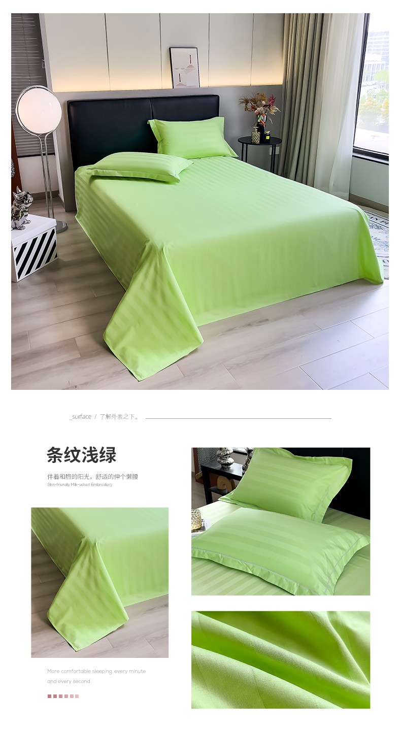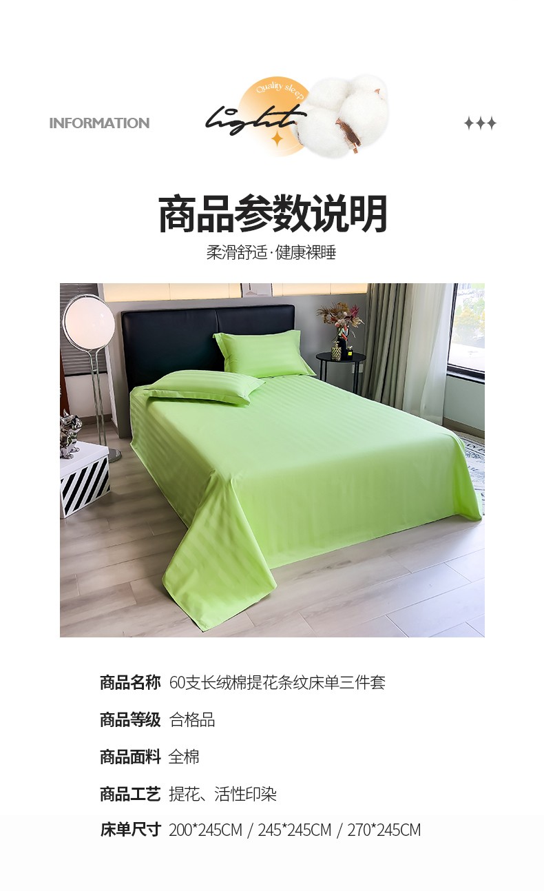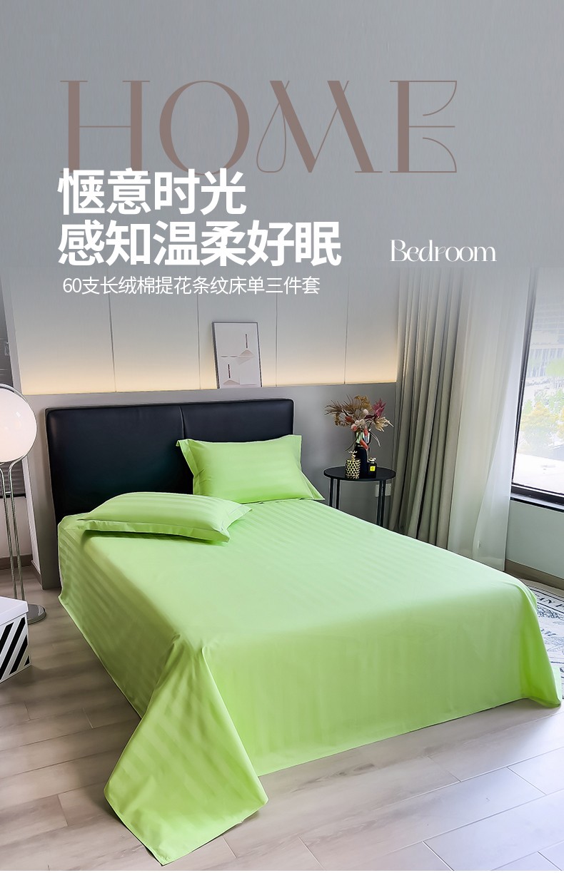 商品名称:慕尚 2025新款60支长绒棉提花条纹系列单品床单 条纹浅绿