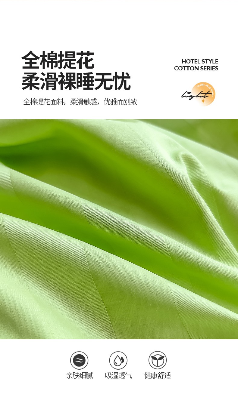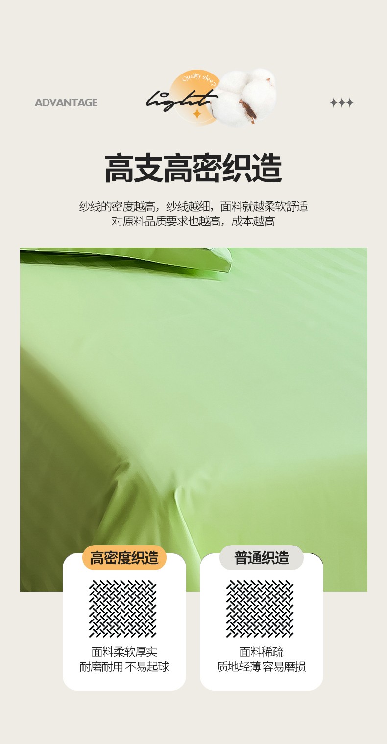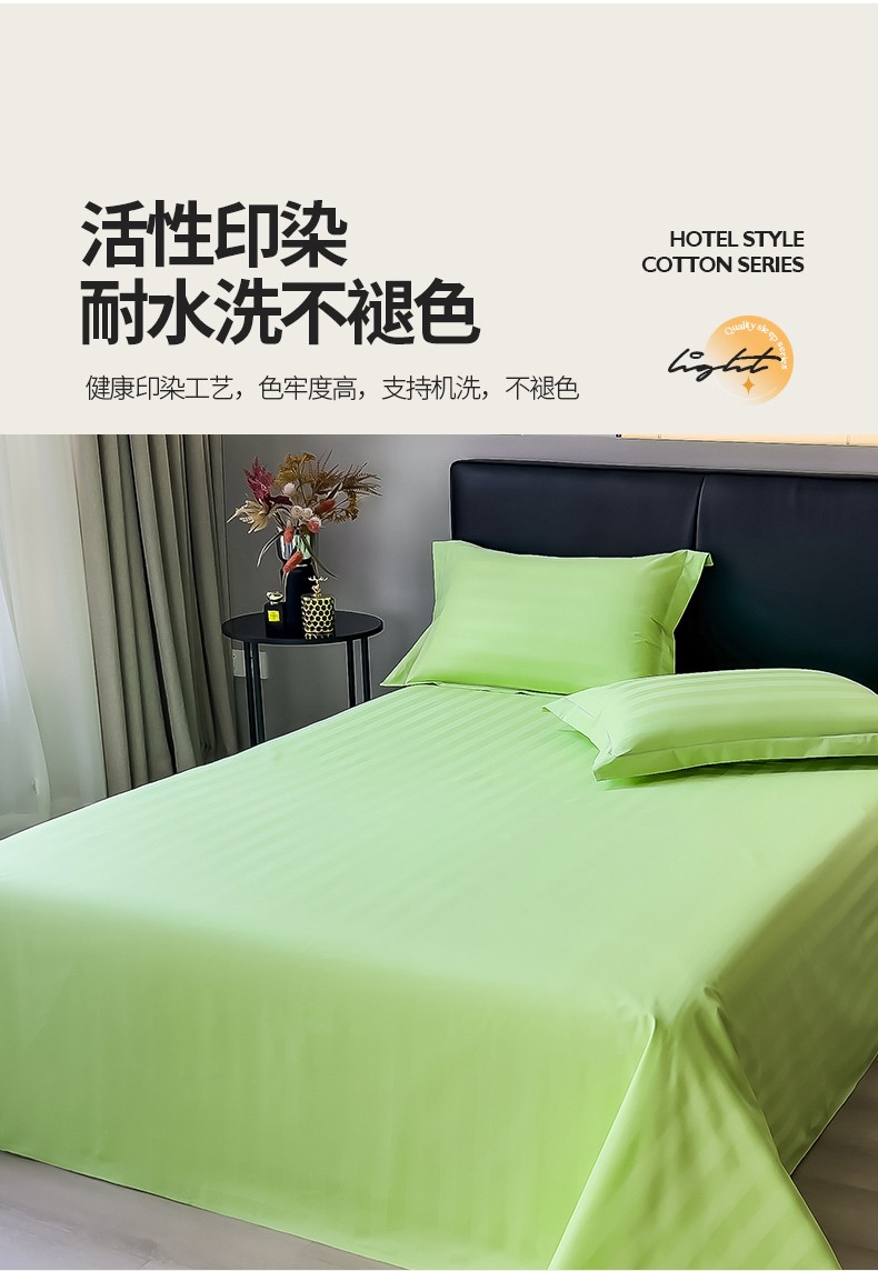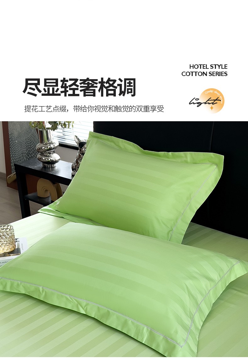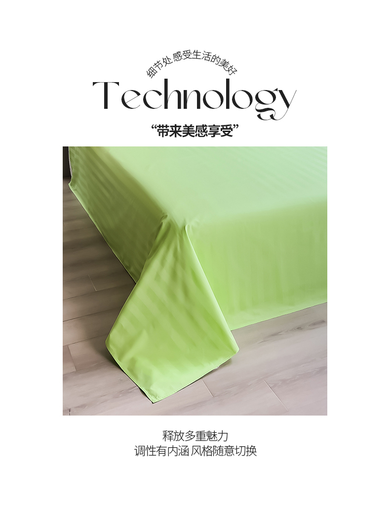 商品名称:慕尚 2025新款60支长绒棉提花条纹系列单品床单 条纹浅绿