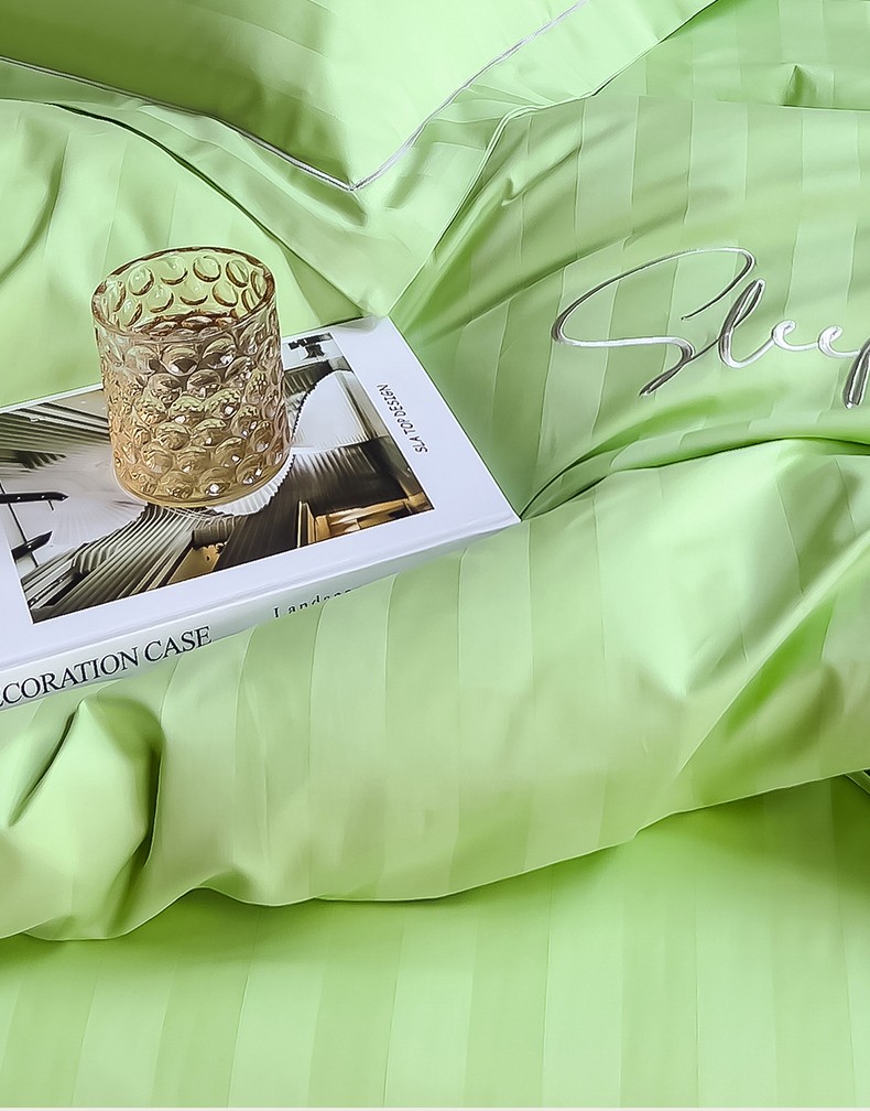 慕尚 2025新款60支长绒棉提花条纹系列单品床单 条纹浅绿