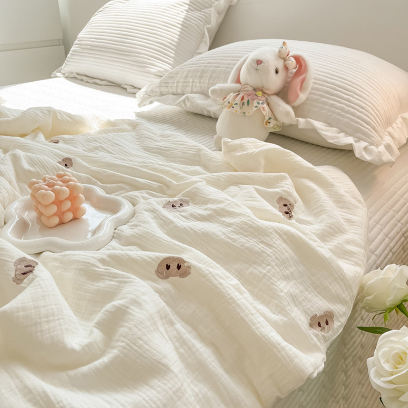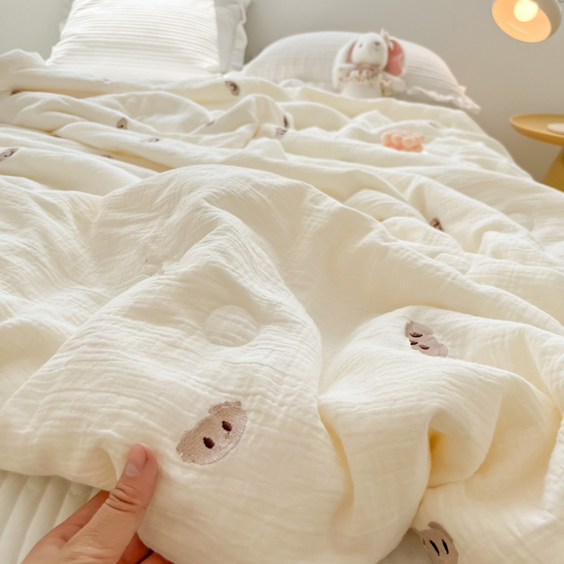 盼季2023新款双层纱小清新超软糯夏被夏凉被夏季空调被薄被子被芯 ins-小熊