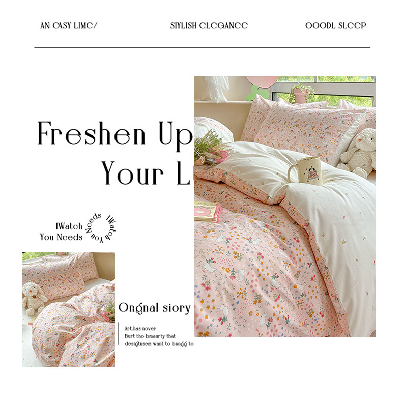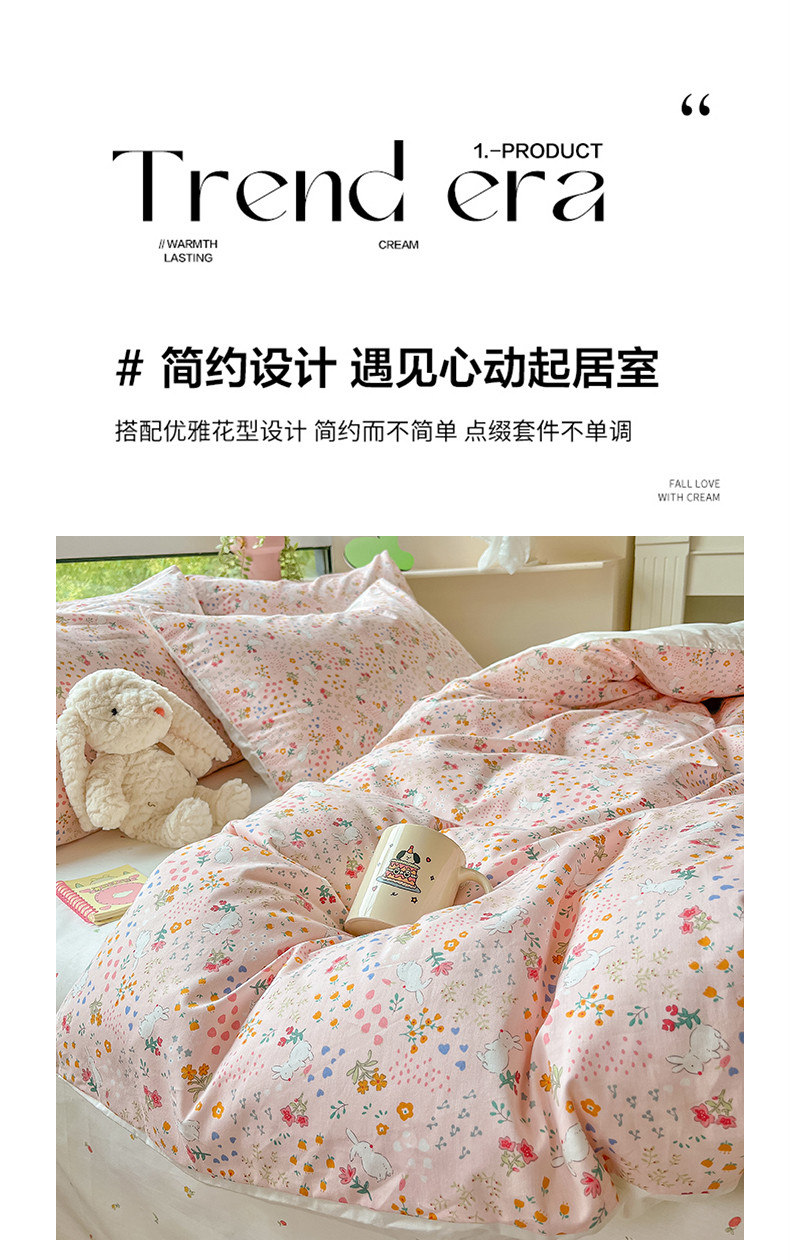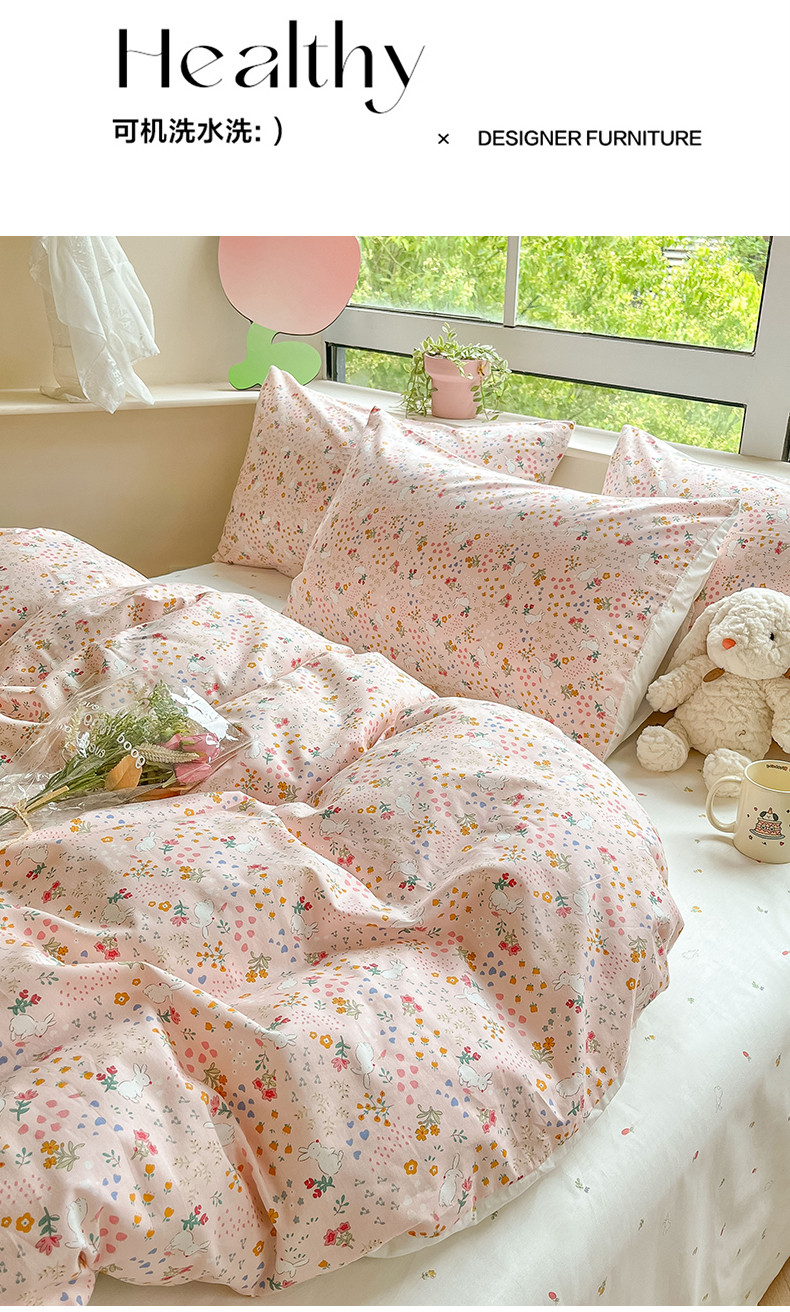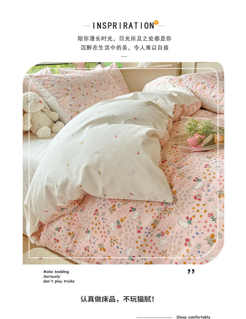 柠馨 2023新款13376可爱系列全棉印花四件套 飞扬兔