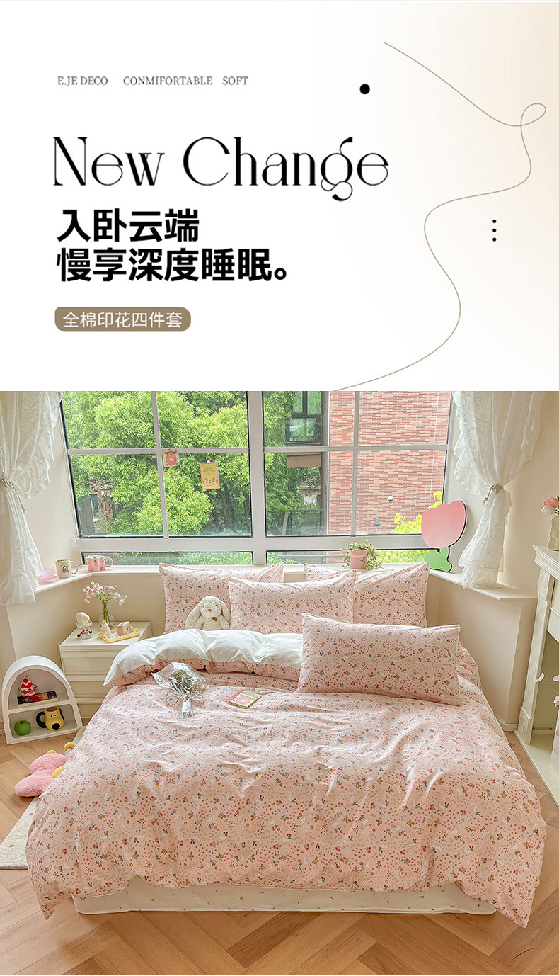 (总)柠馨 2025新款全棉纯棉印花花边床盖四件套-随心配系列,浅薇,点点,复苏,可爱森林,编织生活-绿,绮幻,素颜幽兰,馥郁,枝枝桃桃,半夏,风吟,花笺,梦影,山觅,山奈,星觅,烟雨,叶澜,云漫