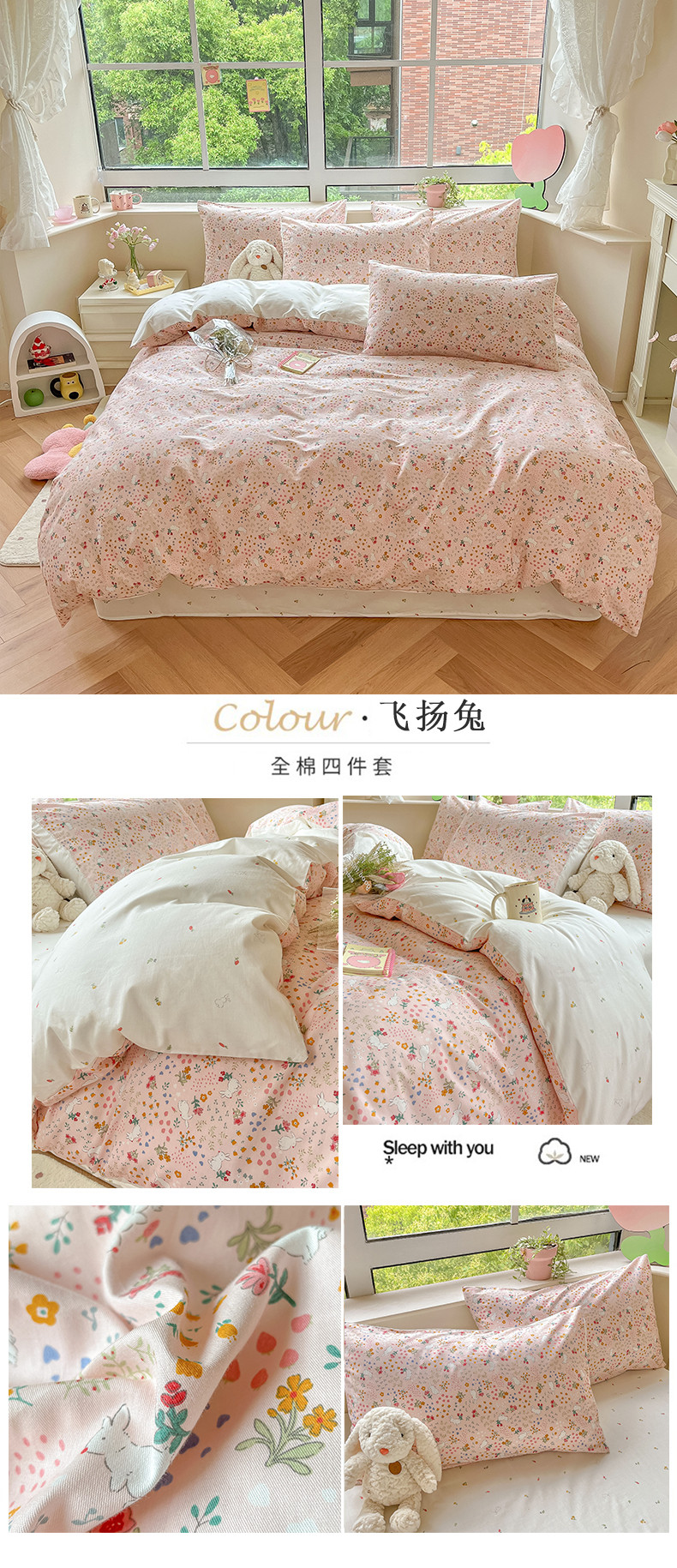 商品名称:柠馨 2023新款13376可爱系列全棉印花四件套 飞扬兔