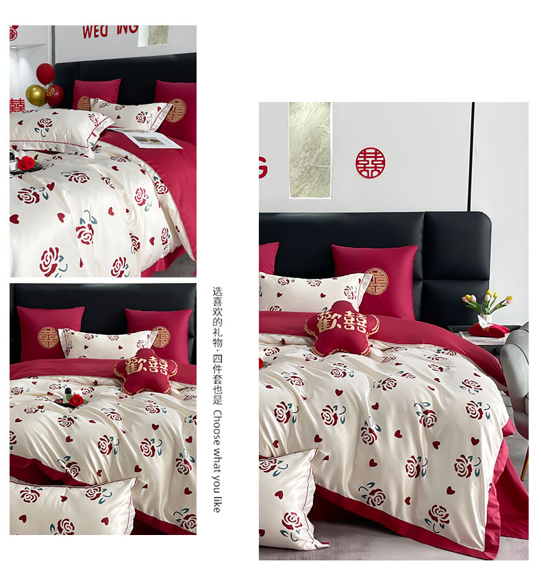 (总)甜咪咪婚庆 2025新款50支长绒棉全棉婚庆床单床盖四件套多件套刺绣工艺,洛可可,爱恋小熊,爱意久久,多子多福,花田喜事,节节高升,克拉恋人,浪漫情怀,怦然心动红,怦然心动玉,甜心玫瑰,温莎公主,伊甸园,醉红妆