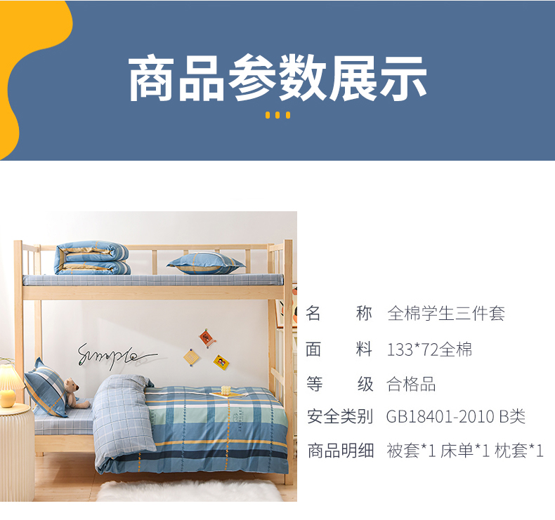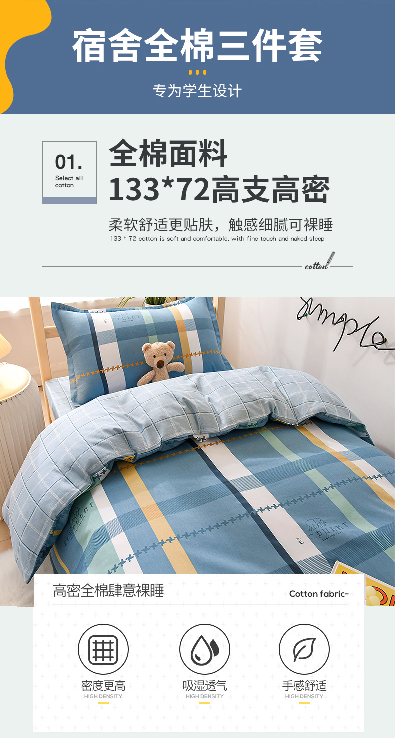 商品名称:(总)鑫宇 2025新款全棉13372学生宿舍印花三件套上下铺六件套