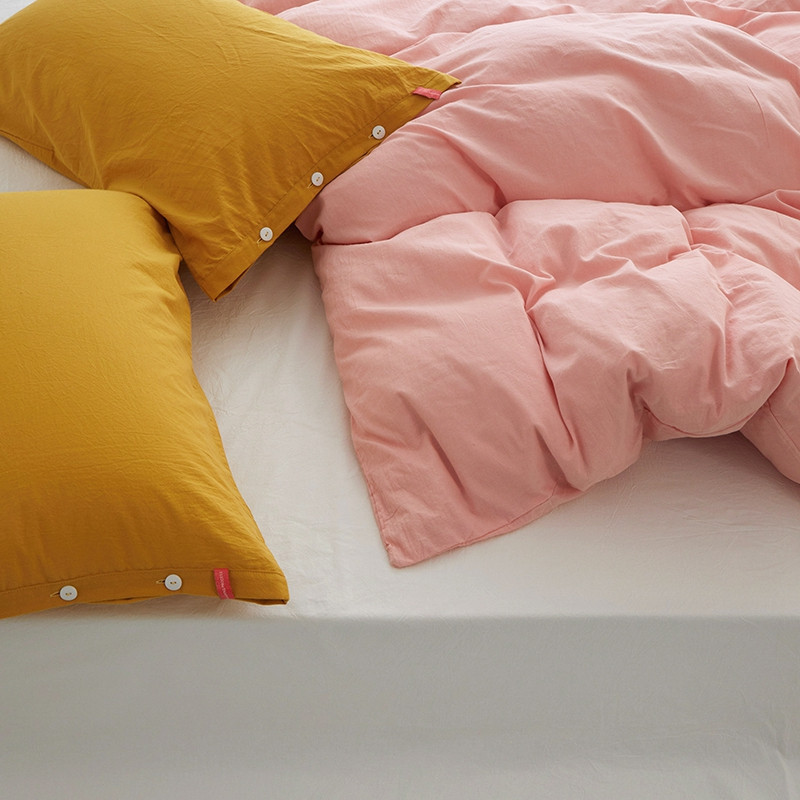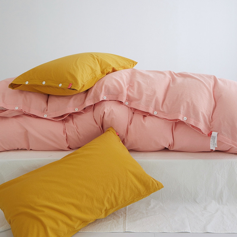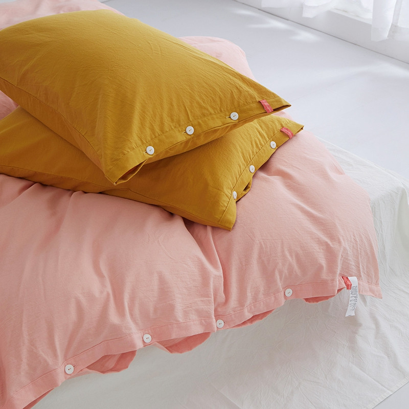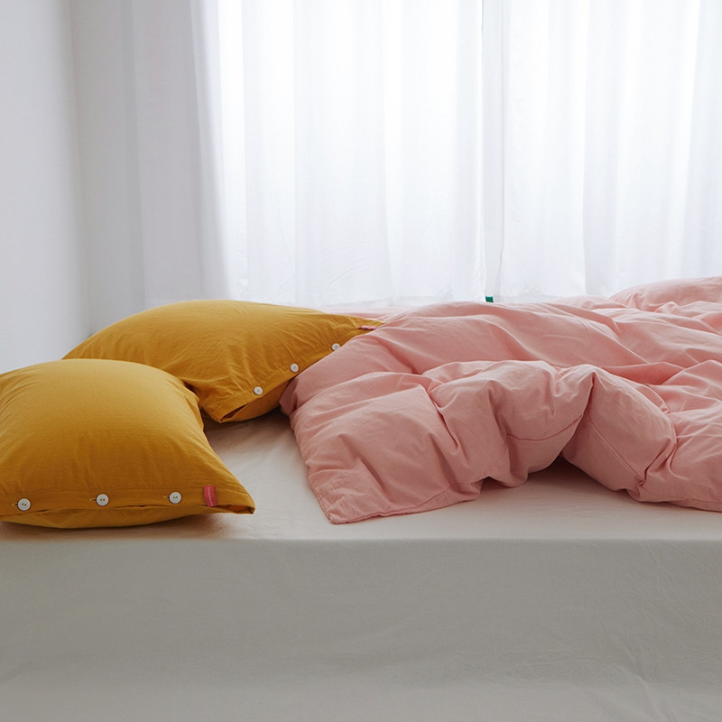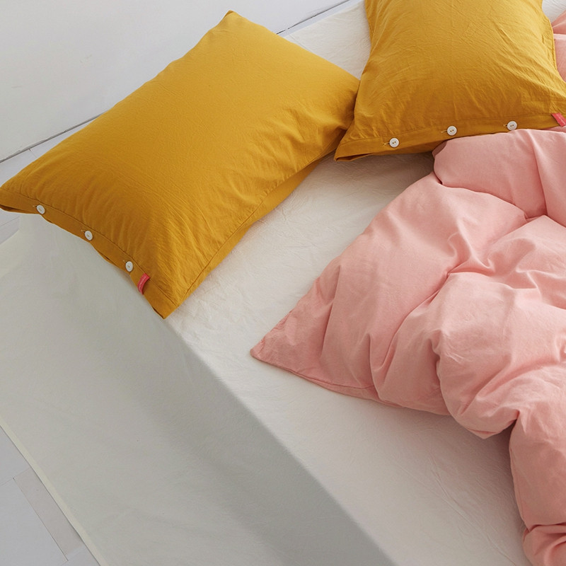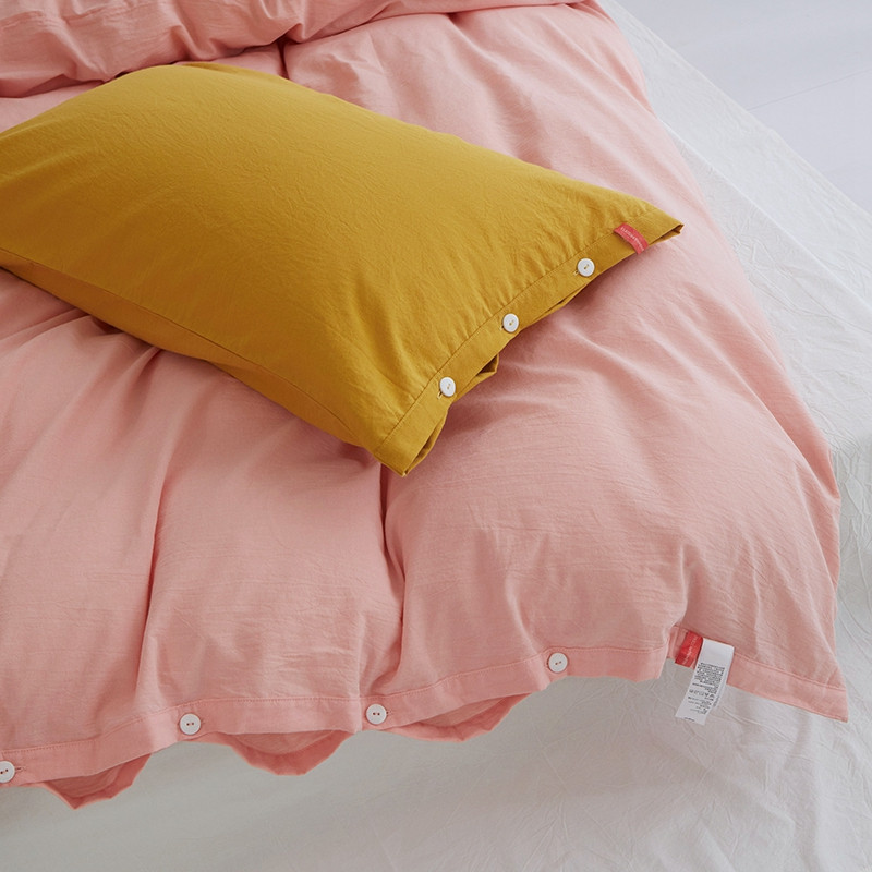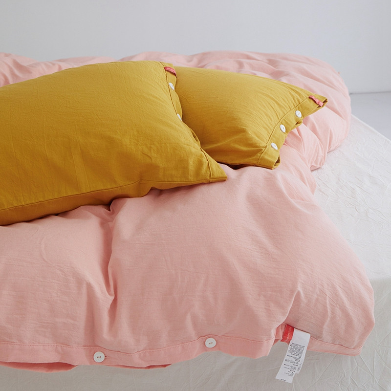 当前位置: 91家纺网 > 商品网购 > 床品套件 > 四件套 > 水洗棉四件套 > 安莱生活水洗棉全棉色经色纬高支高密纽扣款工艺混搭拼色四件套(系列二) 嫩粉+盐白(姜黄姜黄)