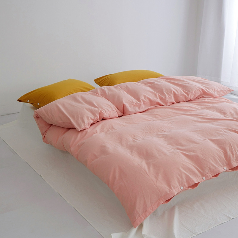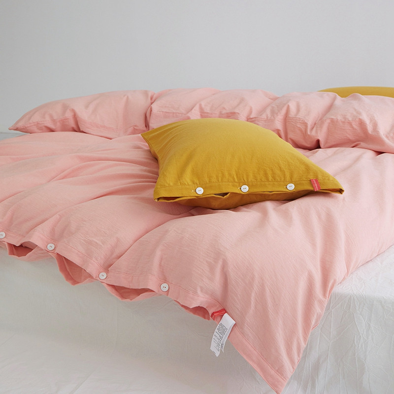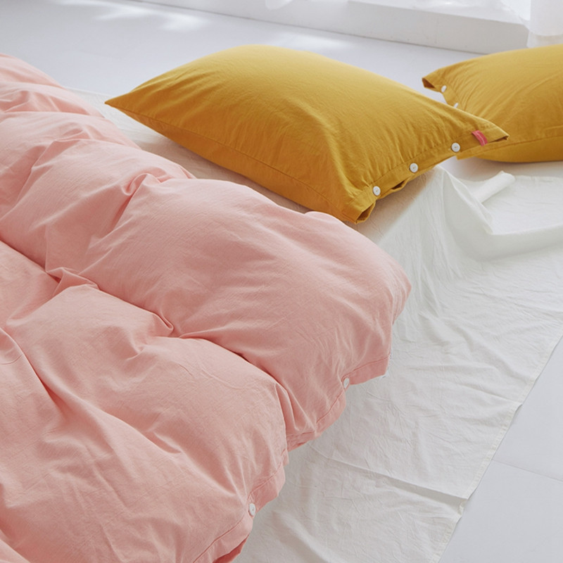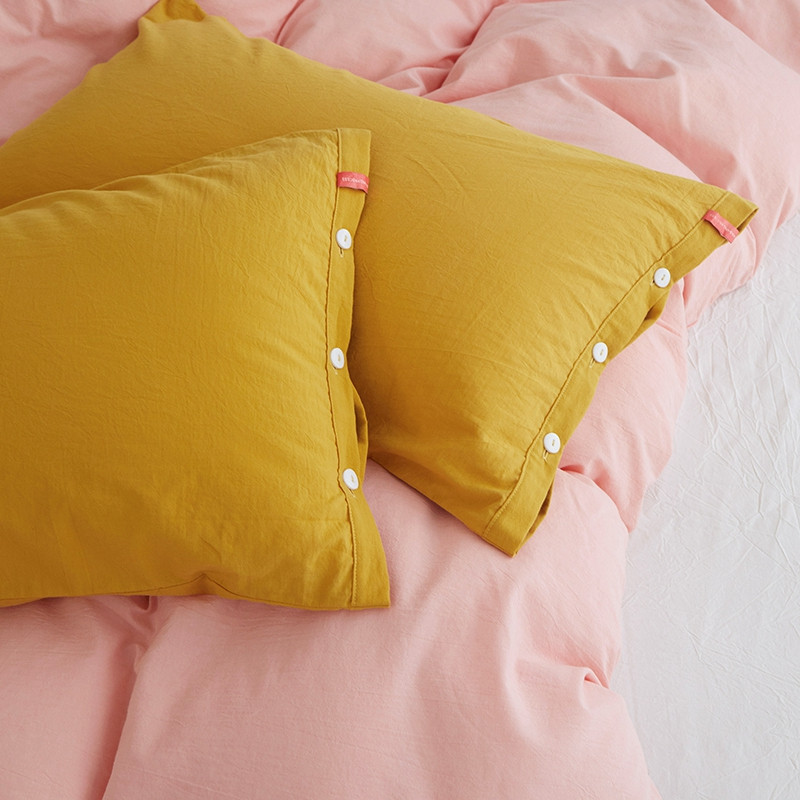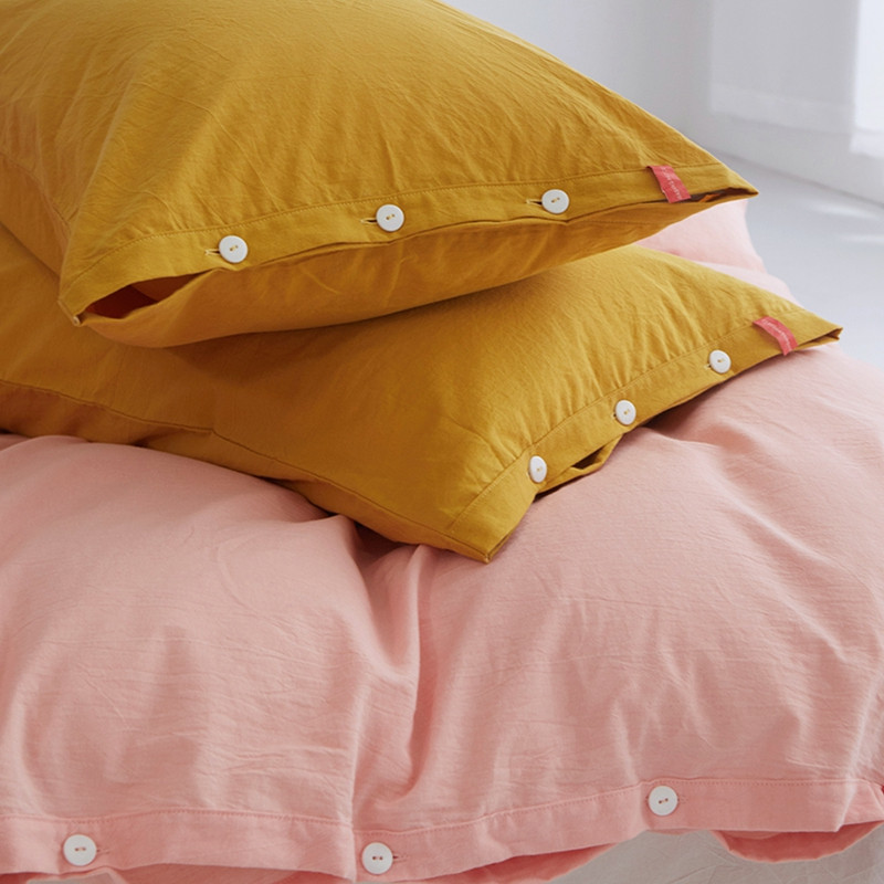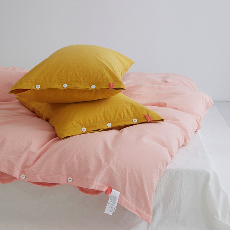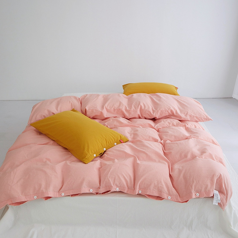 当前位置: 91家纺网 > 商品网购 > 床品套件 > 四件套 > 水洗棉四件套 > 安莱生活水洗棉全棉色经色纬高支高密纽扣款工艺混搭拼色四件套(系列二) 嫩粉+盐白(姜黄姜黄)