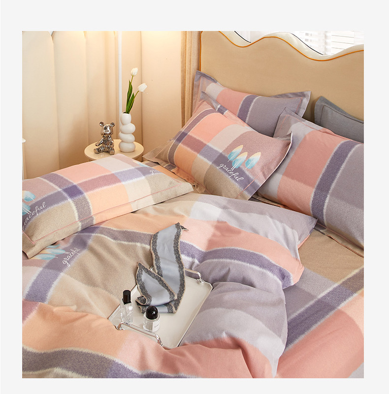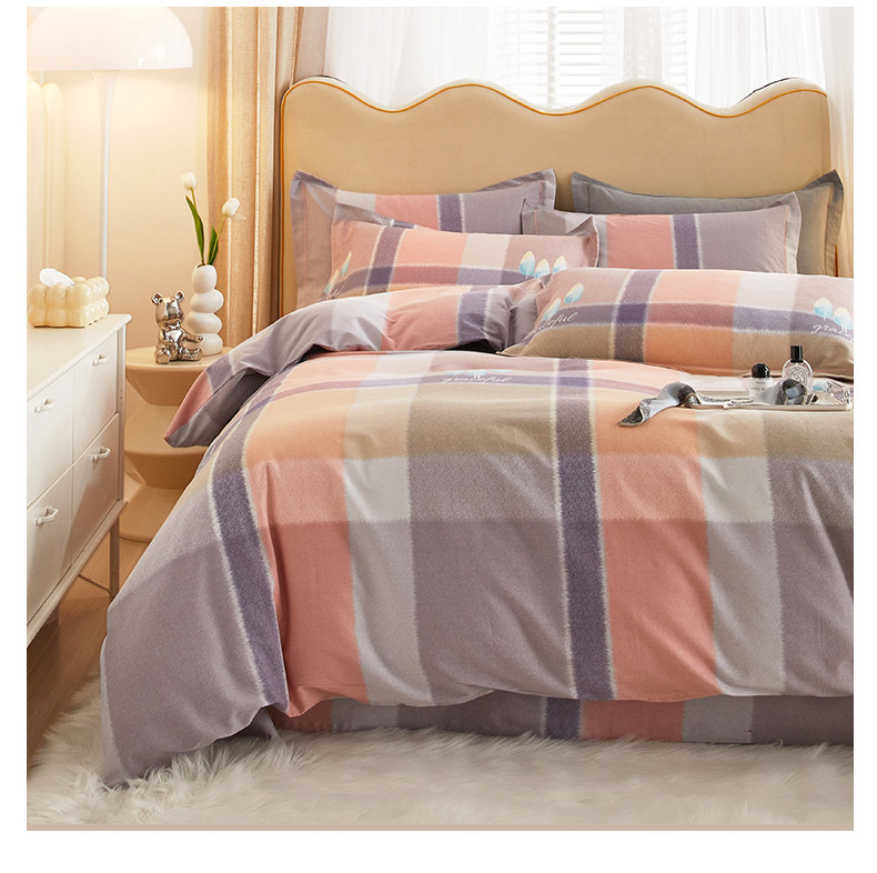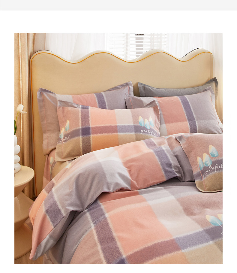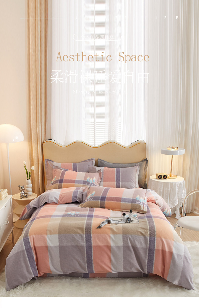 金纱玉纺家纺 2023新款纯棉加厚AB版四件套 格莱美-粉