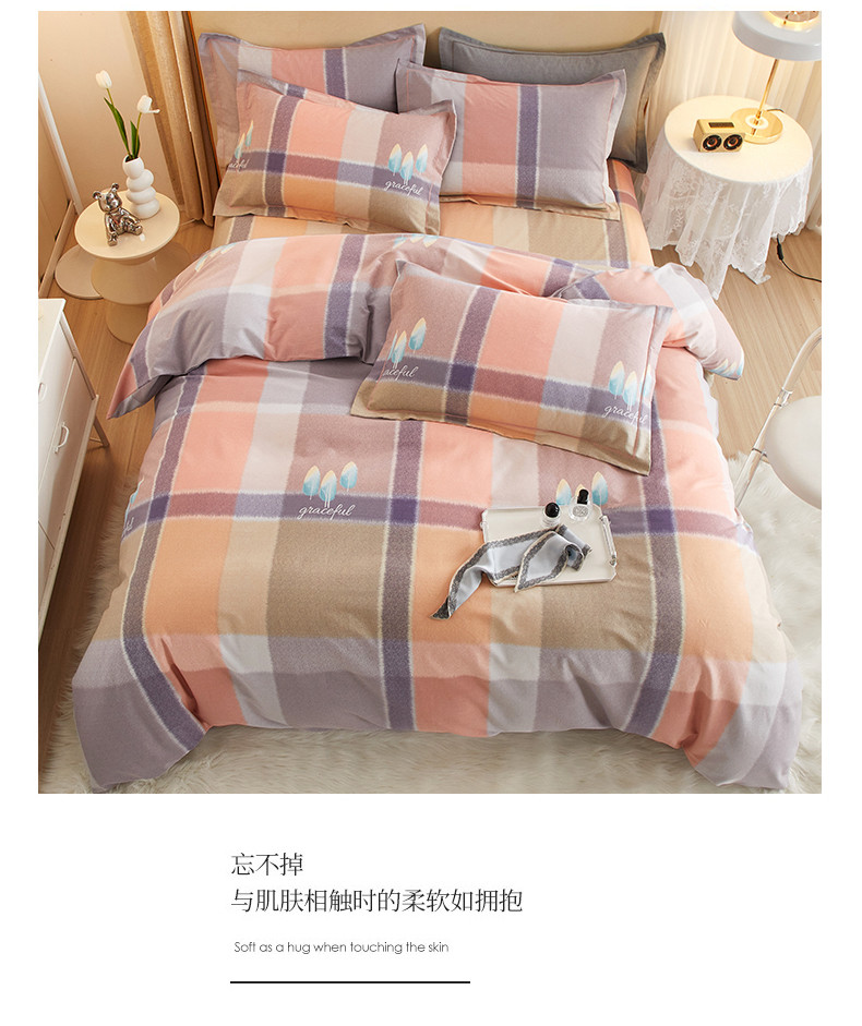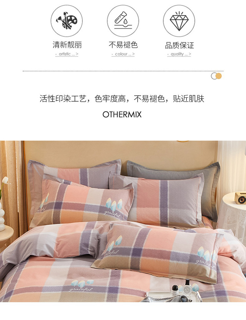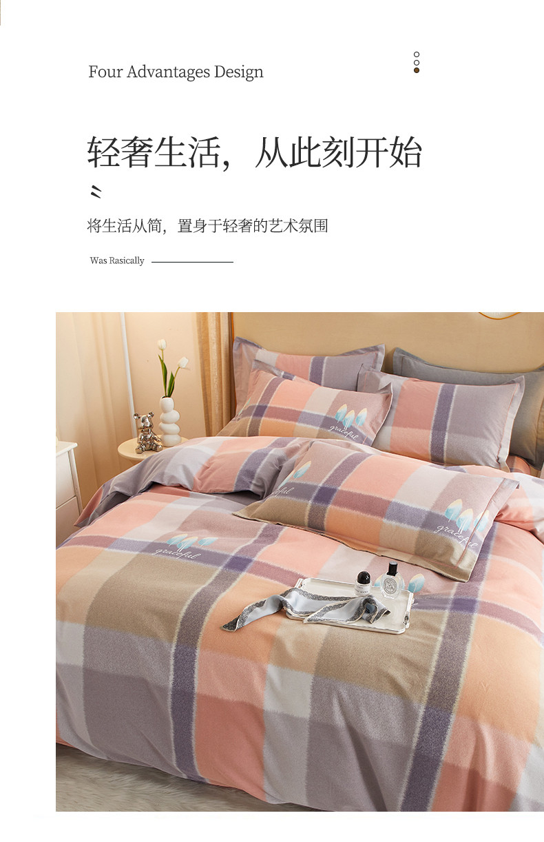 商品名称:金纱玉纺家纺 2023新款纯棉加厚AB版四件套 格莱美-粉