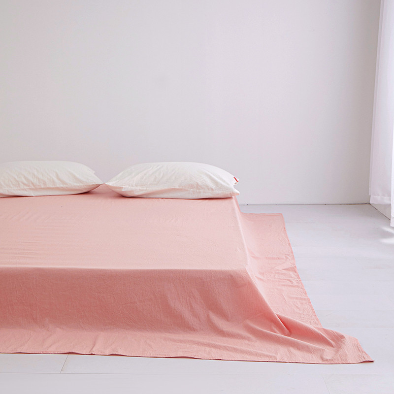 安莱生活 2023新款水洗棉全棉色织高支高密纽扣款工艺单品床单 嫩粉