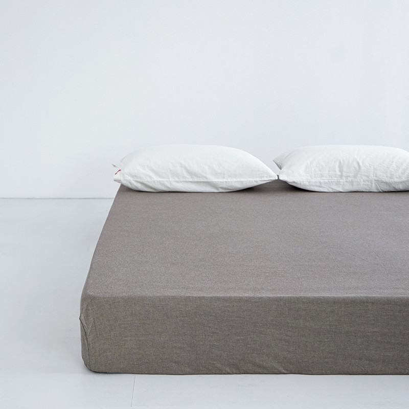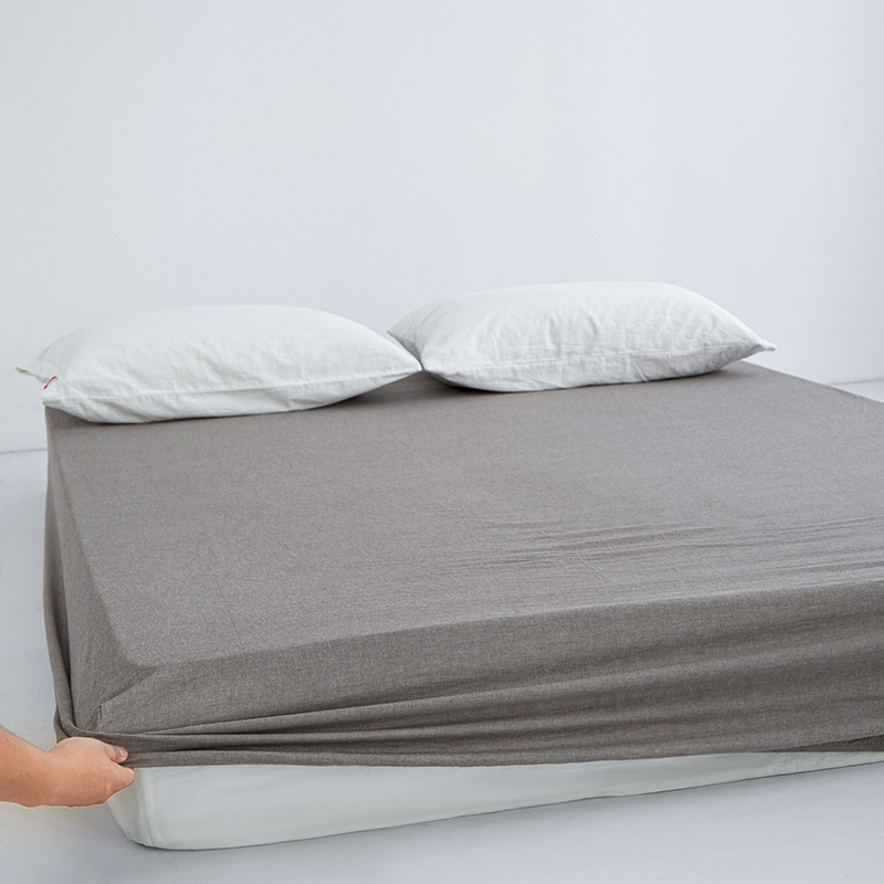 安莱生活 2023新款水洗棉全棉色织高支高密纽扣款工艺单品床笠 浅咖