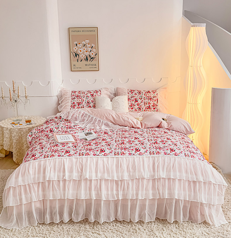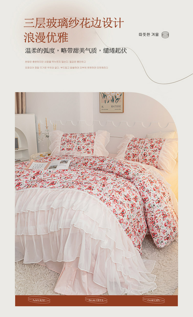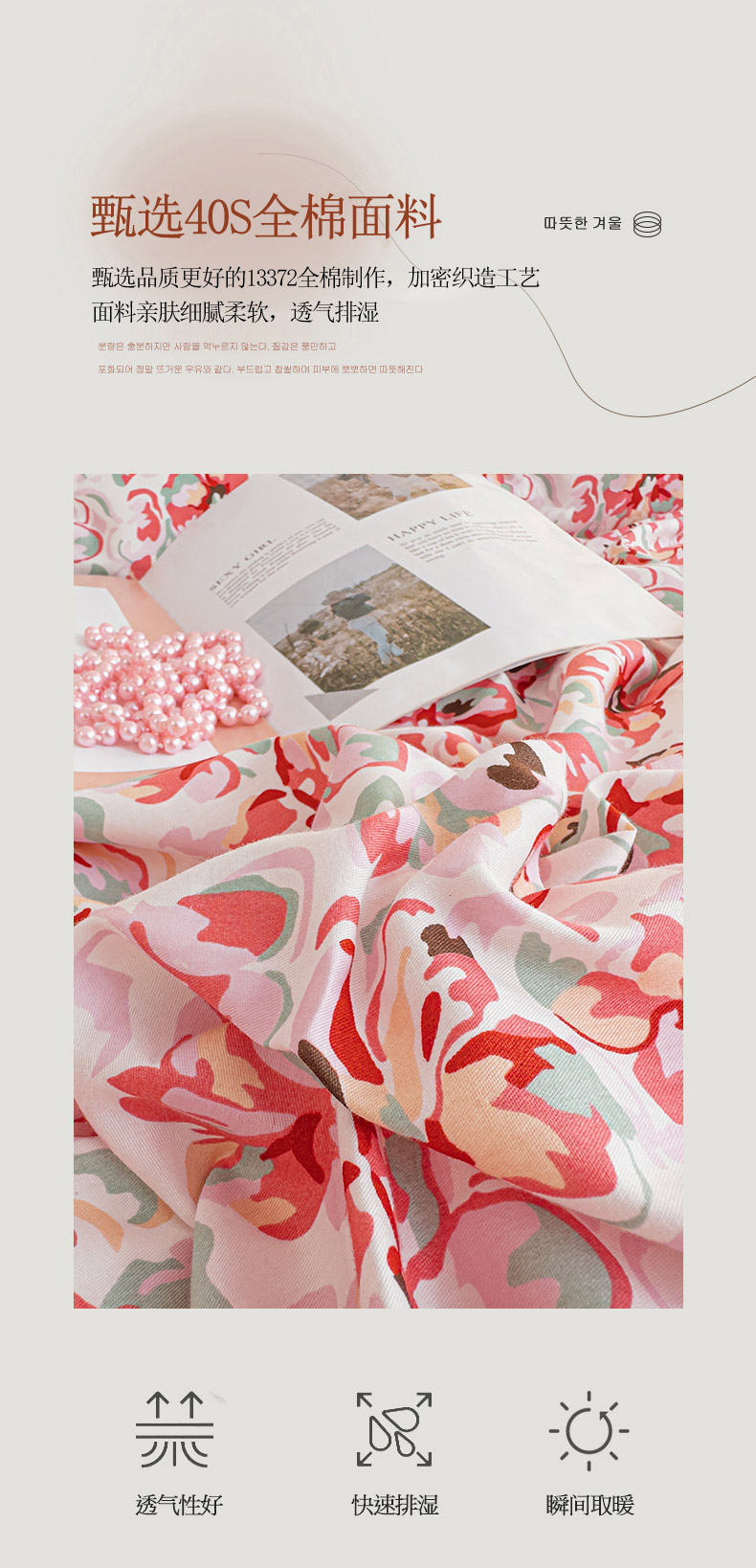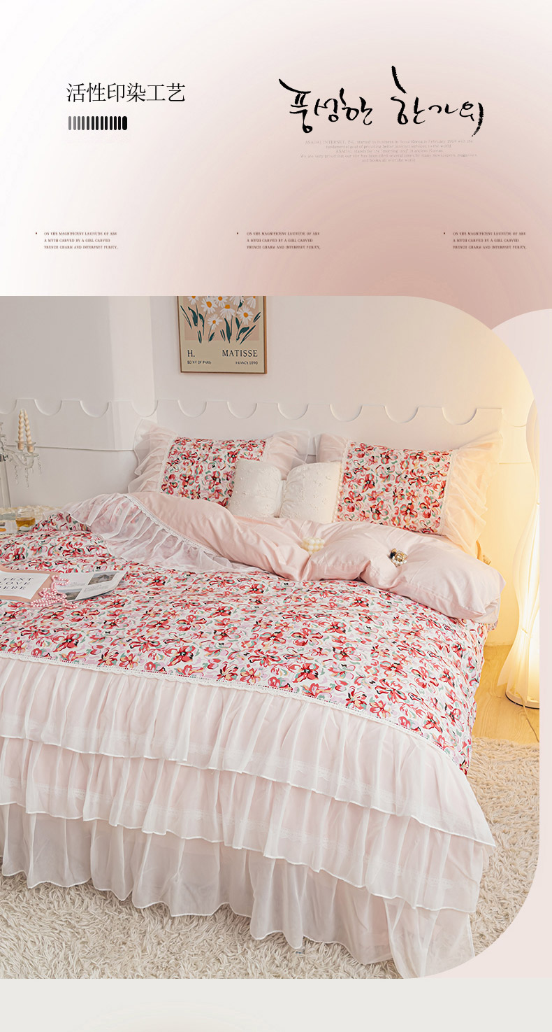 潮邦创意家居 新款13372全棉法式工艺款四件套学生三件套 浅曦