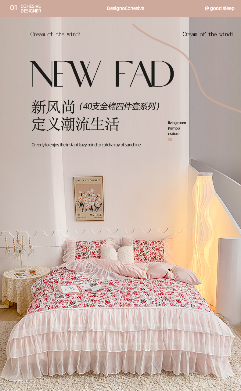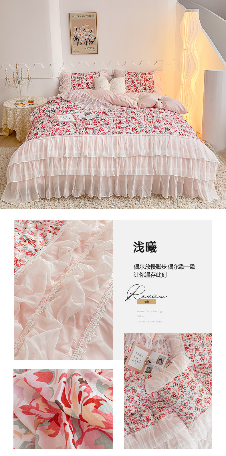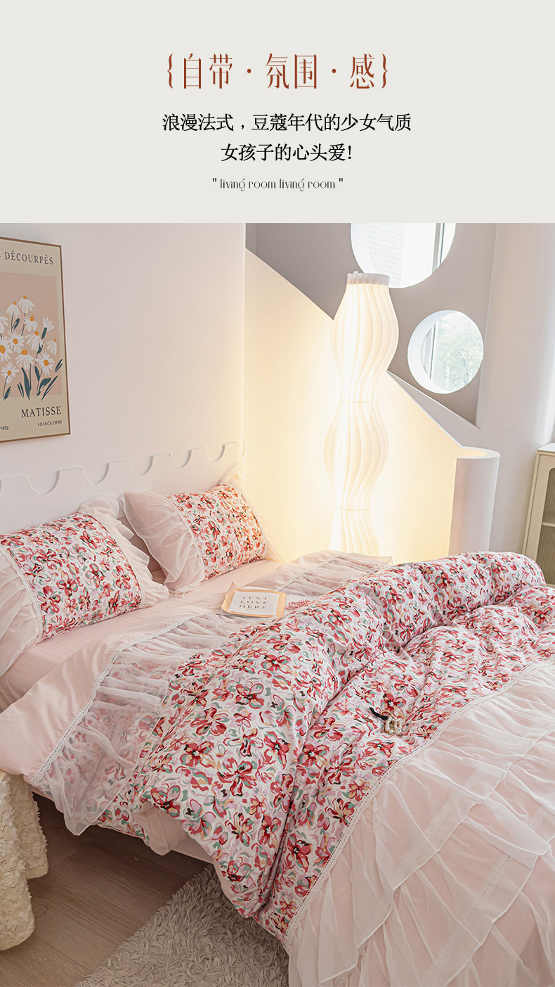 商品名称:潮邦创意家居 新款13372全棉法式工艺款四件套学生三件套 浅曦