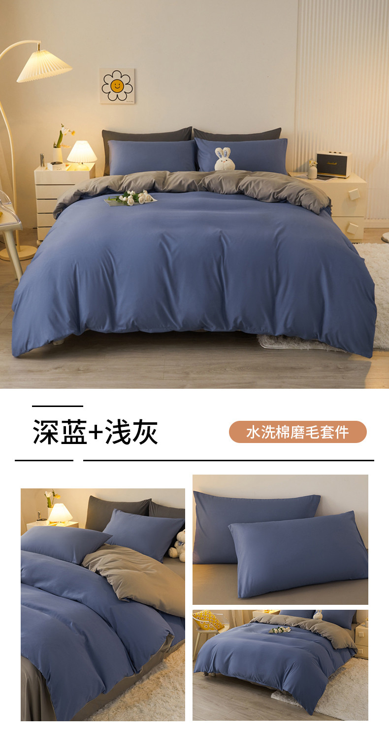 当前位置: 91家纺网 > 商品网购 > 床品套件 > 四件套 > 水洗棉四件套 > 邵依 2025新款水洗棉磨毛非全棉纯棉纯色素色四件套 深蓝+浅灰