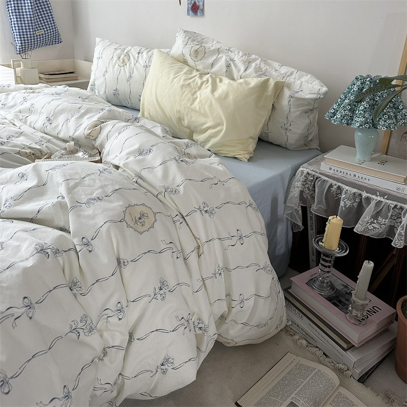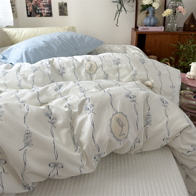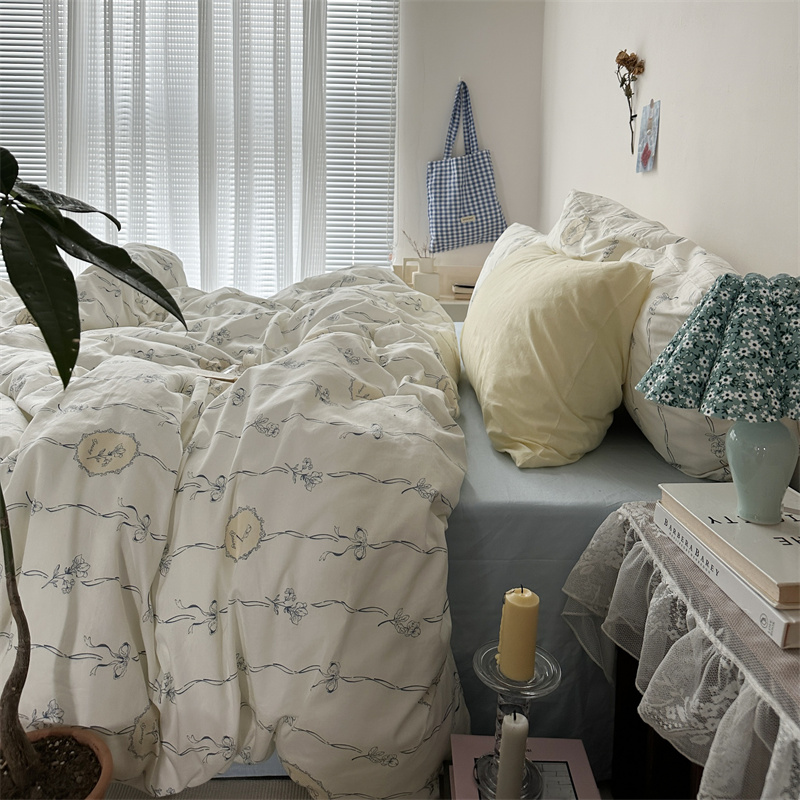 (总)恋恋三季 2025新款A类皱皱纱色织四件套-蓝白情书,蓝白情书