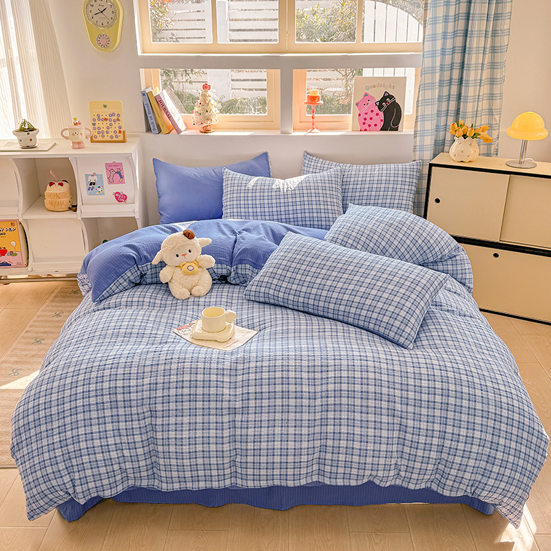 壹号库 2025新款A类提花有氧彩竺绵四件套 无印兰格,无印兰格